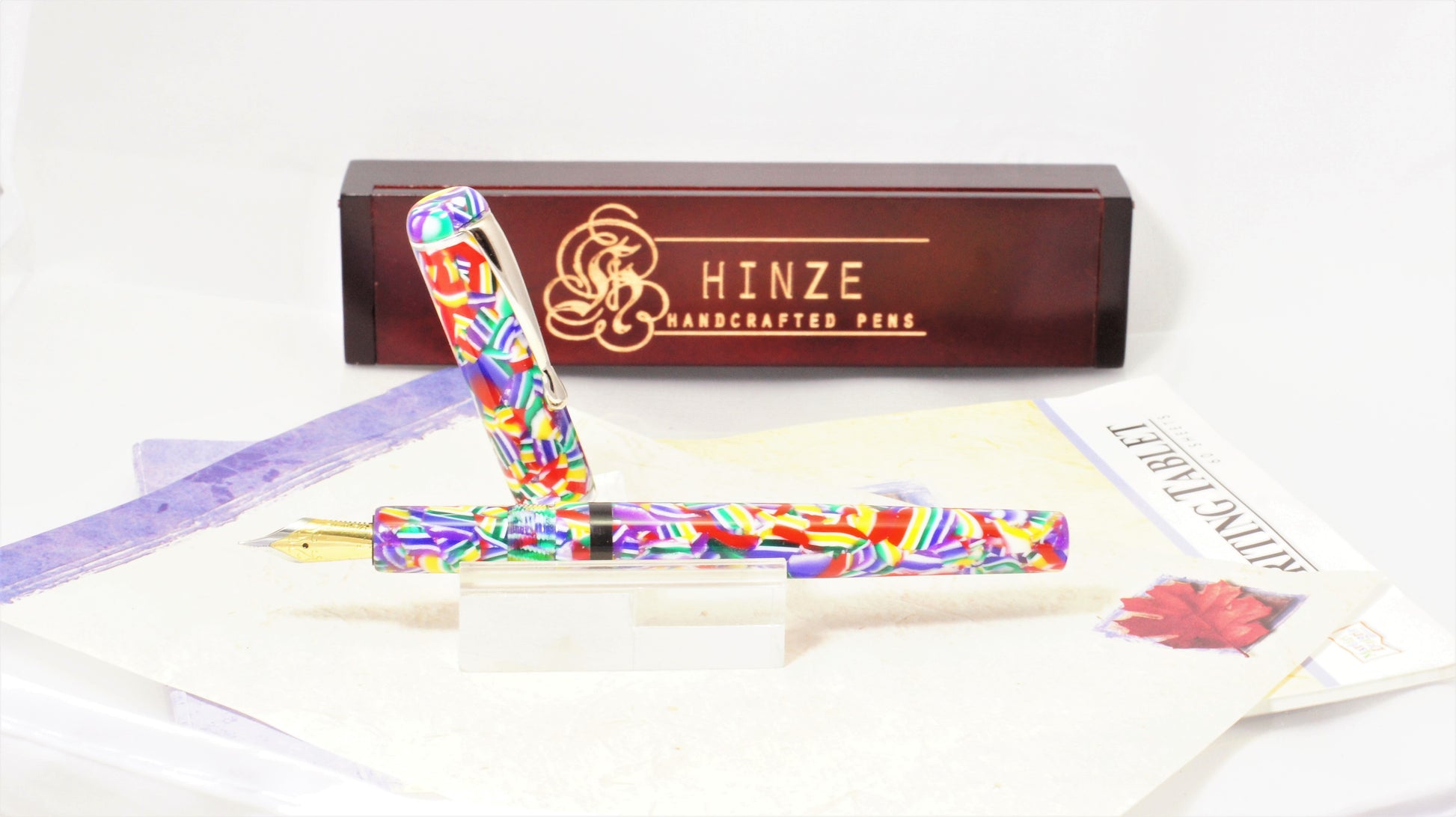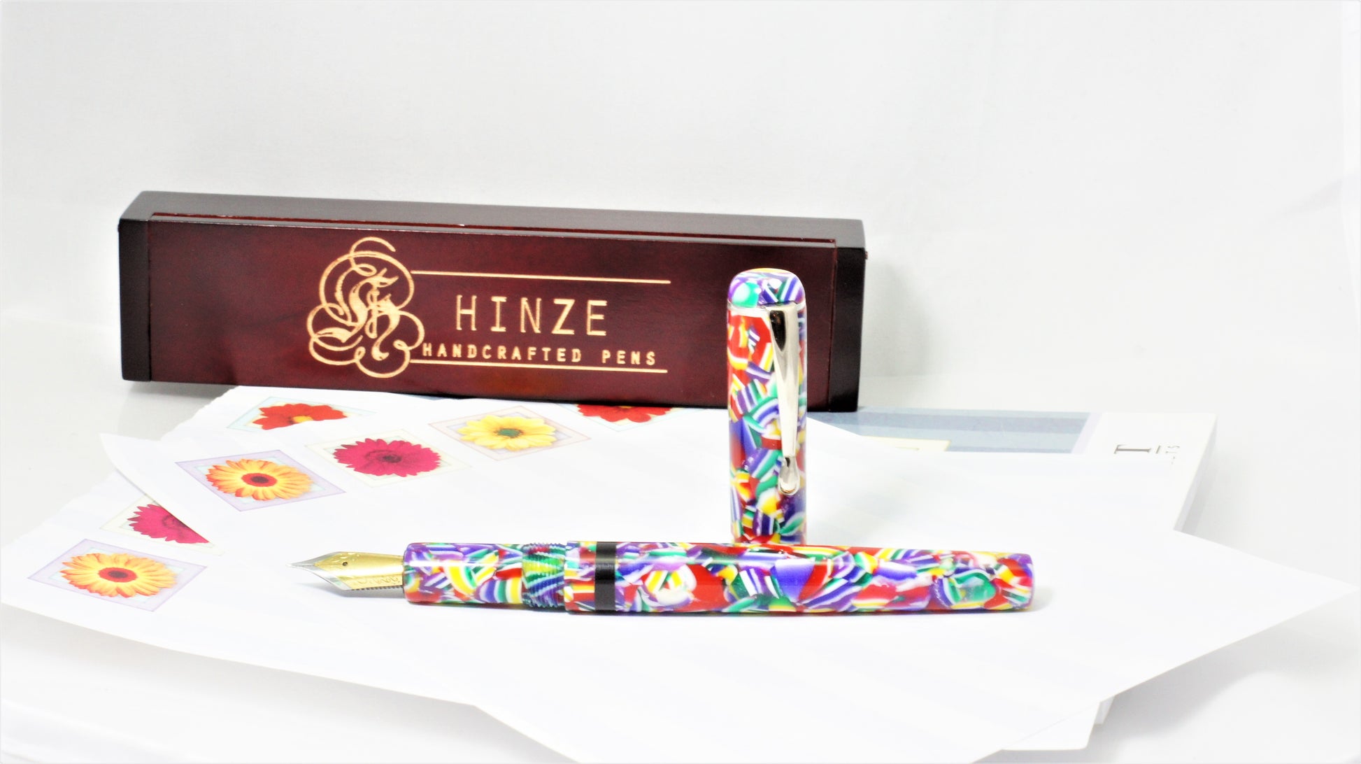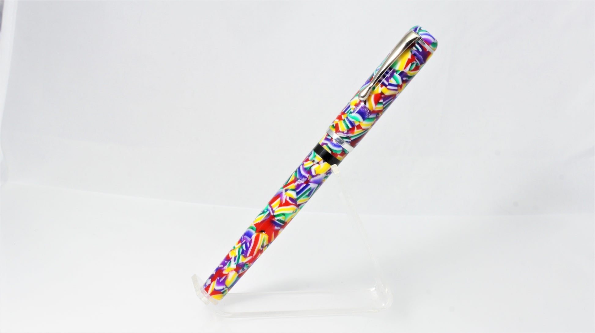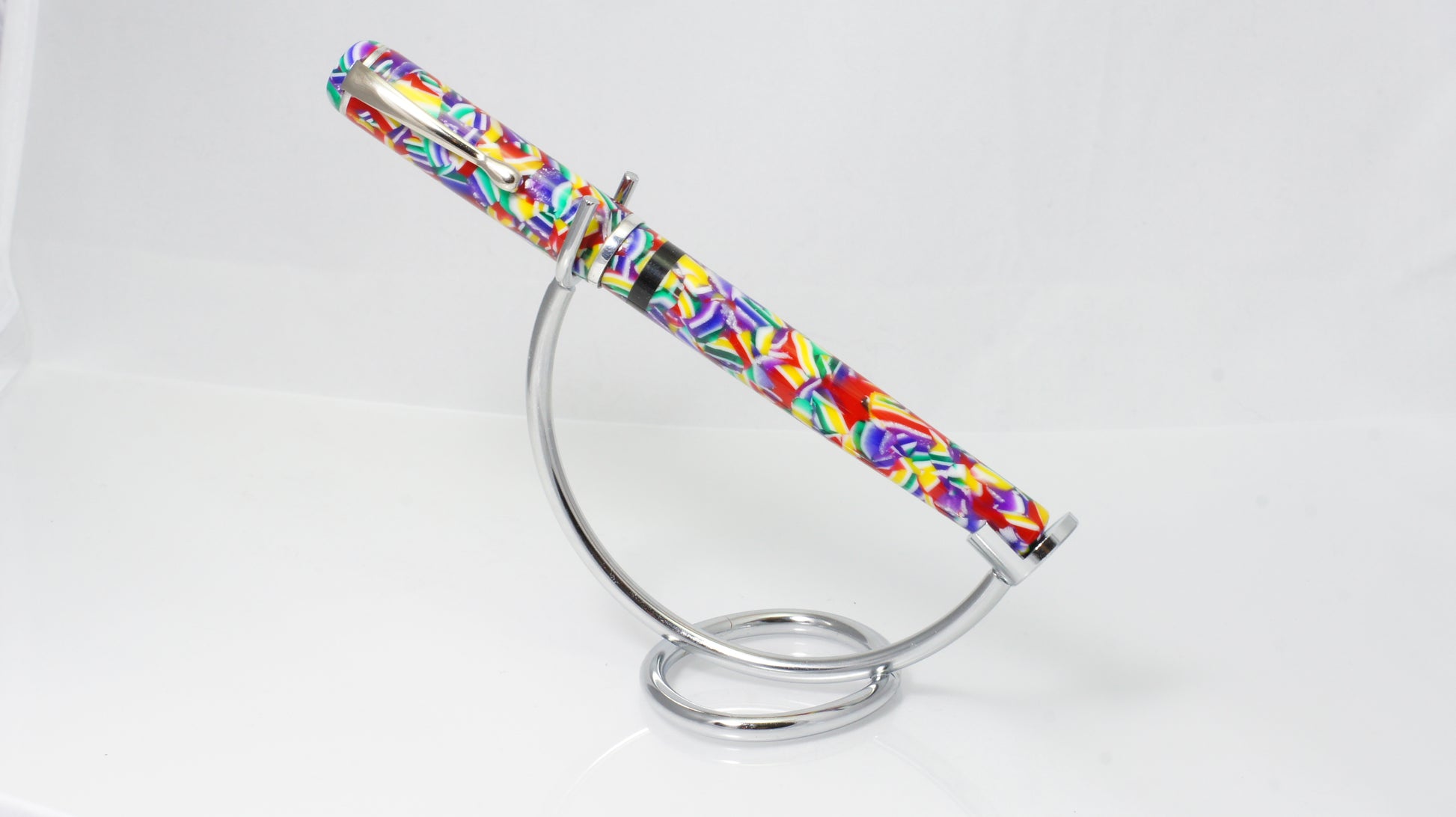This is just a cool looking pen. The body is very BOLD, sporting reds, blues, yellows, greens, white, and black. This is a long slender pen, easy to hold posted or not. Its longer straight section makes it comfortable for both petite and extra large fingers. This pen makes a statement...
