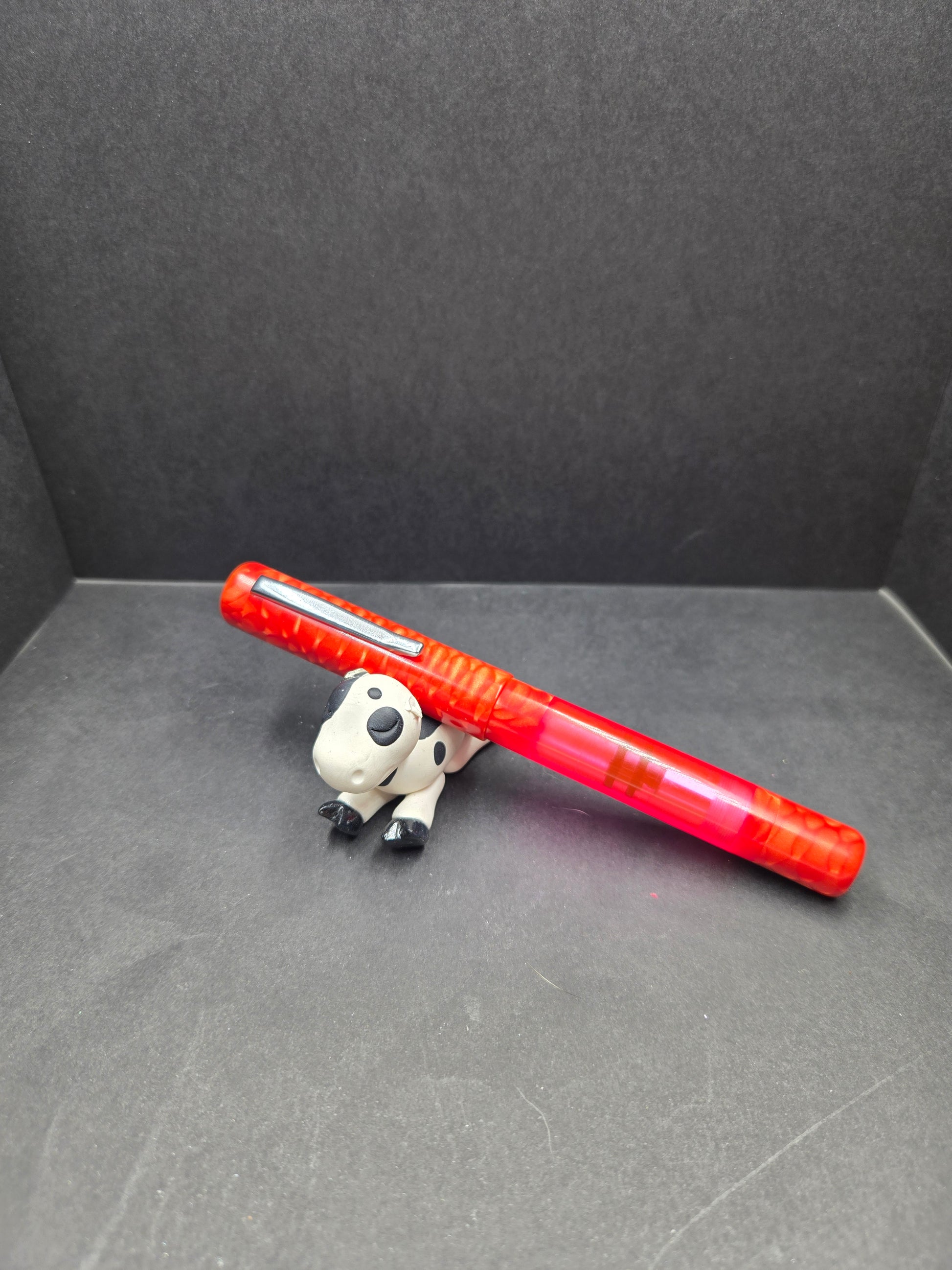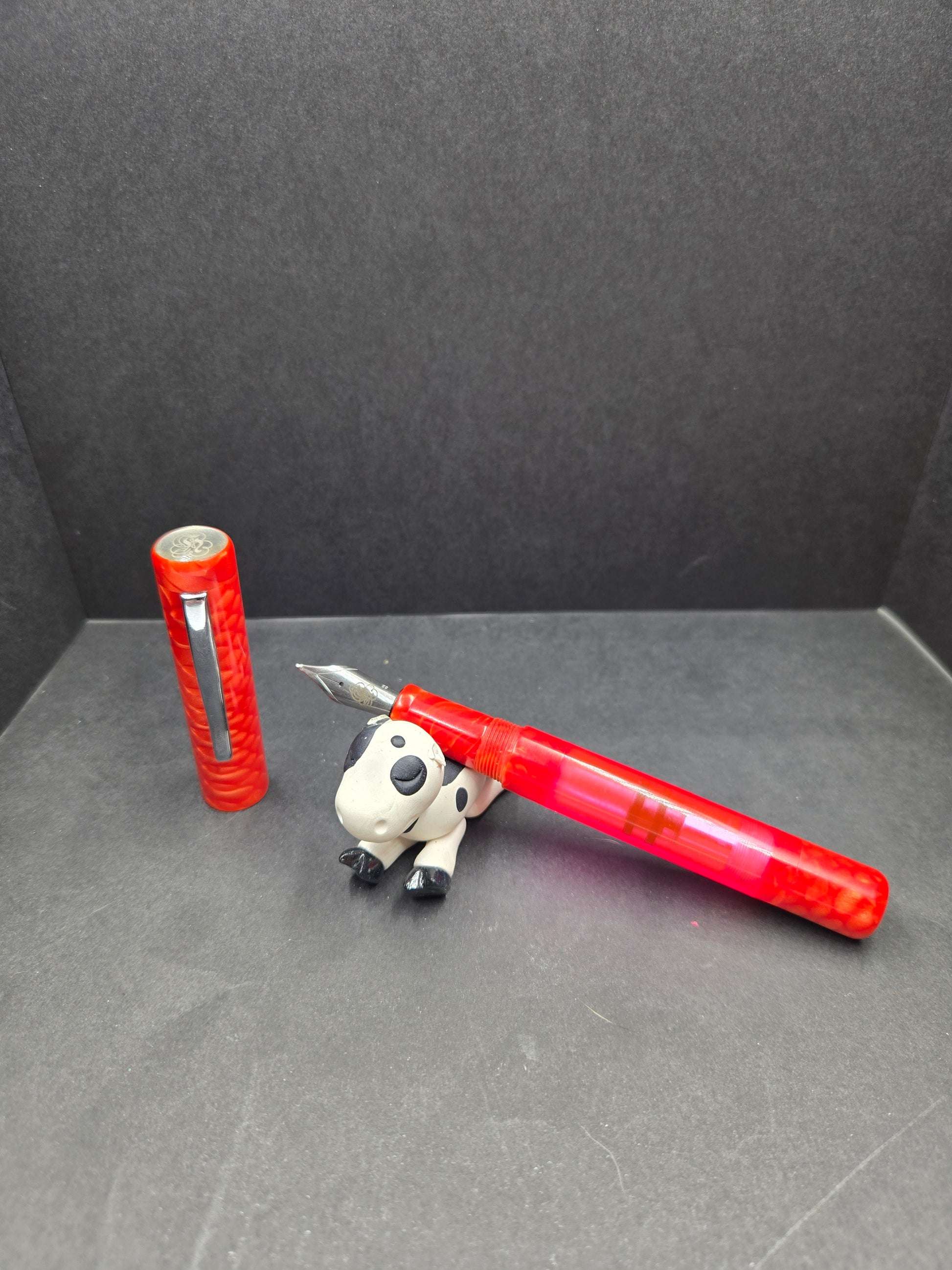 Unleash your creativity with the A24 Juma Magma Dragon Kolbenfüller, a fountain pen that’s as vibrant and bold as your imagination. Featuring a smooth piston filling system, it makes refilling ink effortless and mess-free. The dazzling juma material, paired with a large neon red ink window, ensures your pen stands out on any desk. Whether you're scribbling quick notes or signing your next big deal, this pen adds a playful splash of color and personality to every word. Perfect for those who dare to be different, the Magma Dragon is your spirited partner in writing adventures!