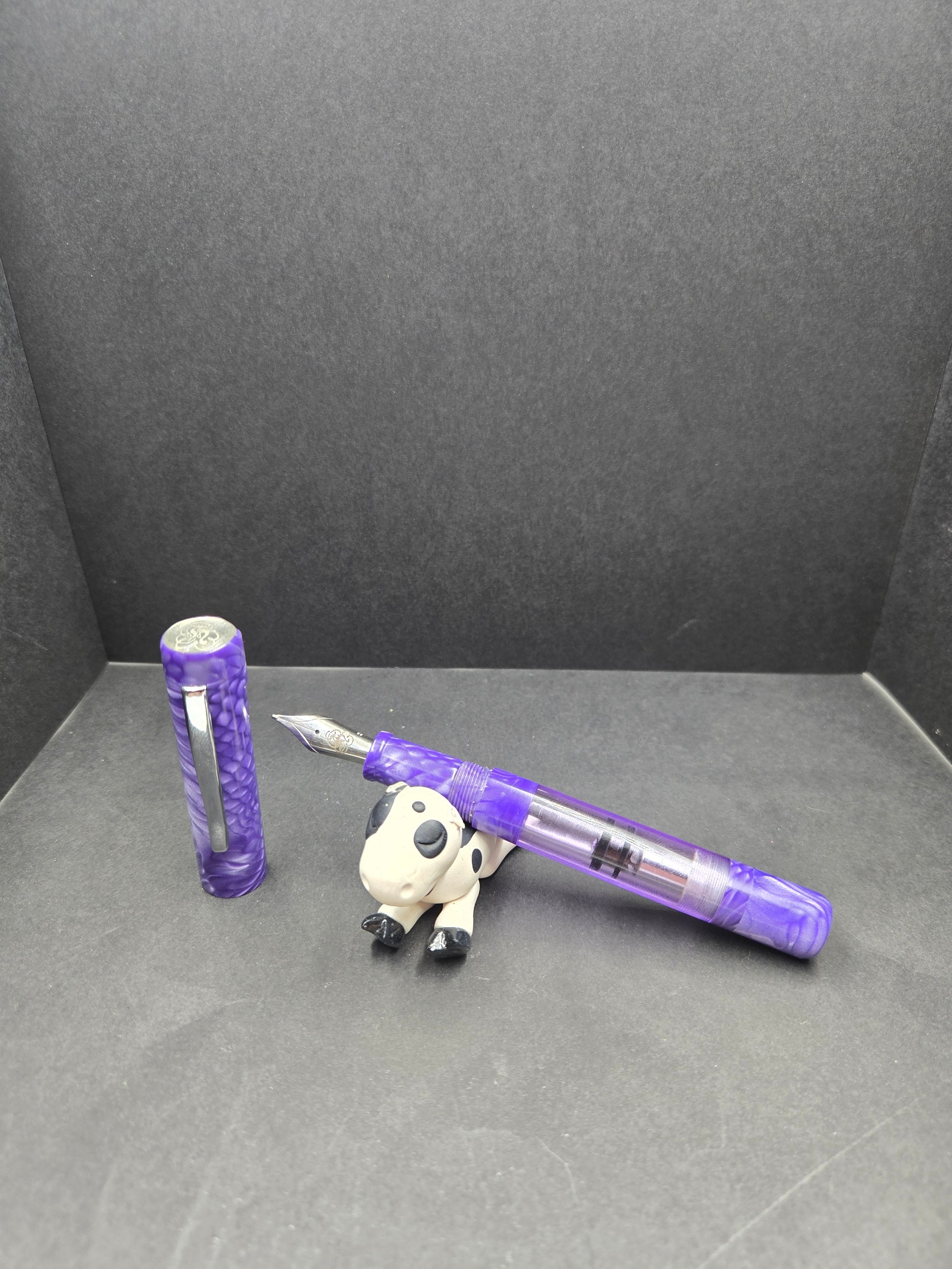 Unleash your creativity with the A24 Juma Purple Dragon Kolbenfüller, a fountain pen that’s as vibrant and bold as your imagination. Featuring a smooth piston filling system, it makes refilling ink effortless and mess-free. The dazzling juma material, paired with a large purple ink window, ensures your pen stands out on any desk. Whether you're scribbling quick notes or signing your next big deal, this pen adds a playful splash of color and personality to every word. Perfect for those who dare to be different, the Purple Dragon is your spirited partner in writing adventures!