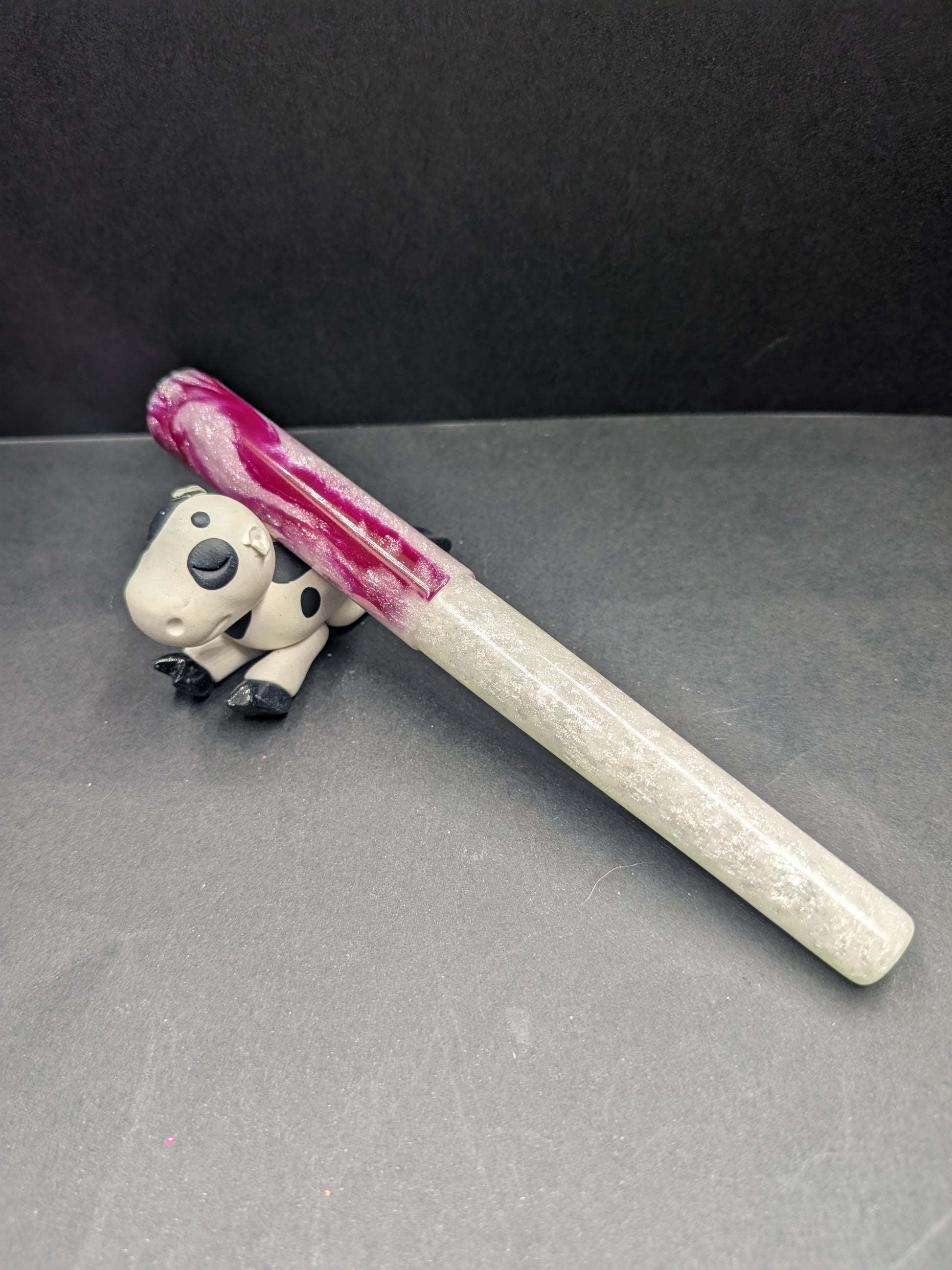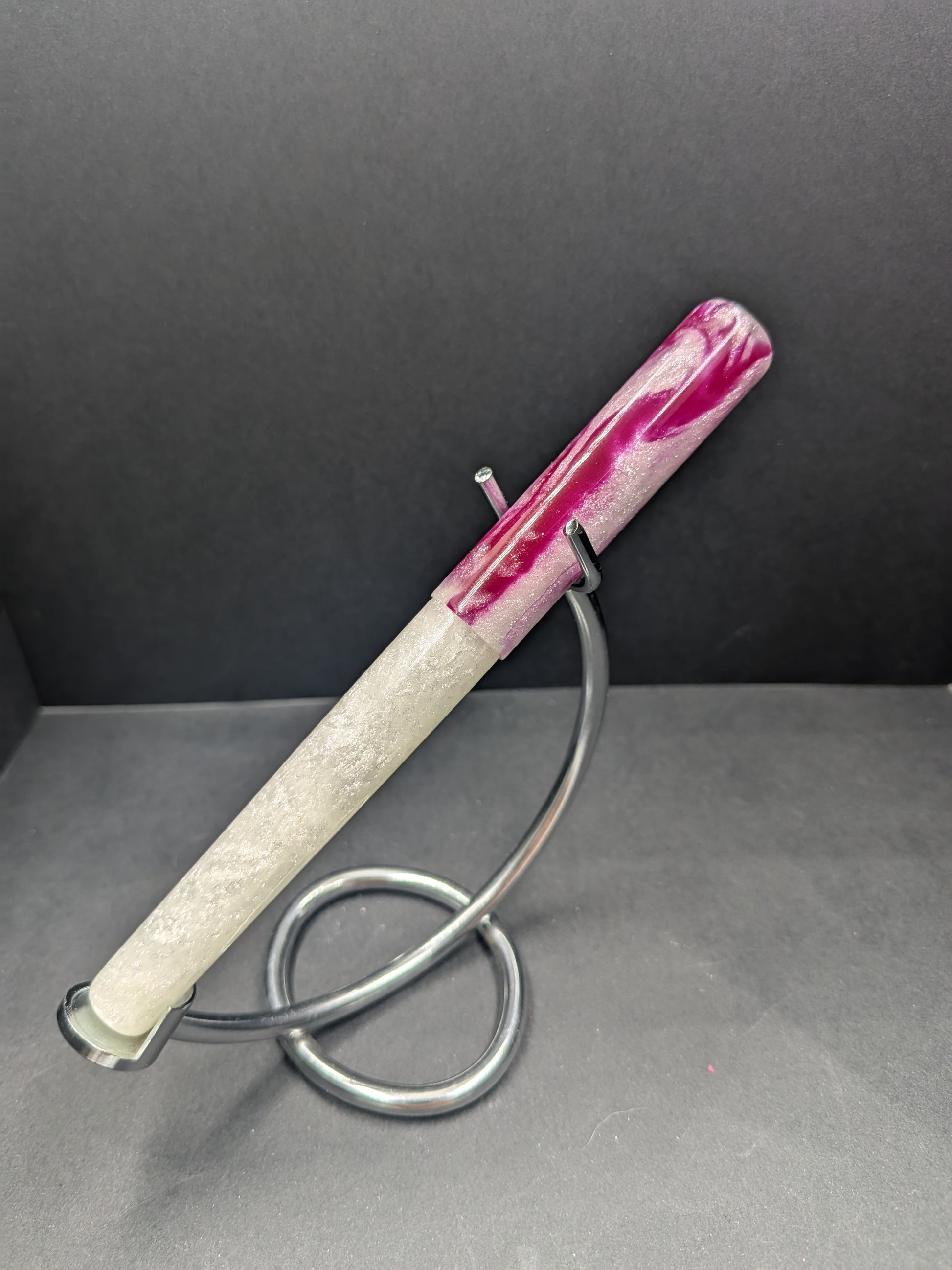 Crafted from dazzling Starry Night resin, this Raspberry Cheesecake pen is a feast for the eyes and a joy to hold. Its stunning swirls of color mimic the rich, creamy layers of your favorite dessert, making every glance a sweet escape. Designed for comfort and balance, it glides effortlessly across the page, turning writing into a delightful experience. The sleek, no-clip design adds a smooth, modern touch that slips easily into your hand or pocket. Brighten your day and your desk with this playful, deliciously inspired pen!