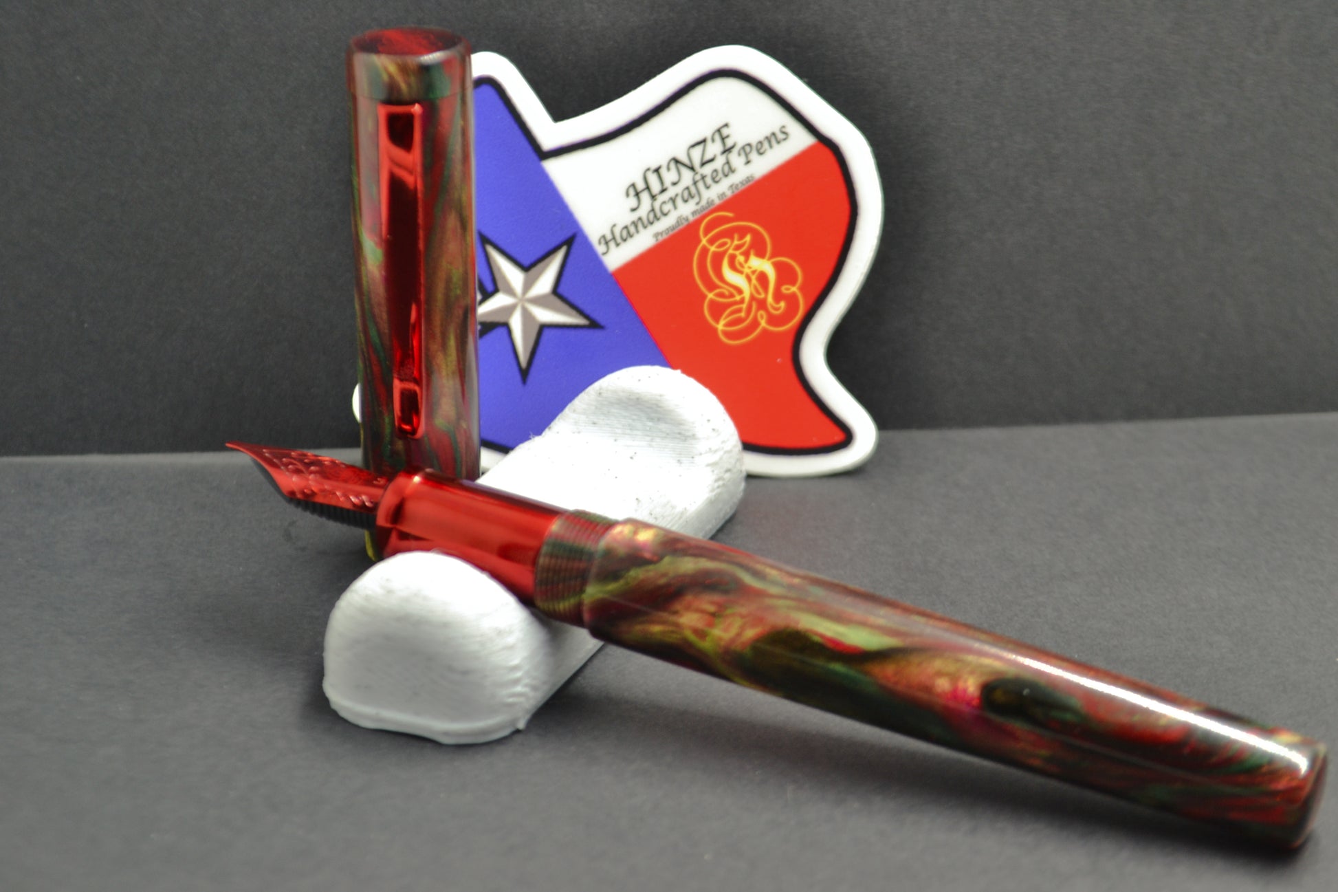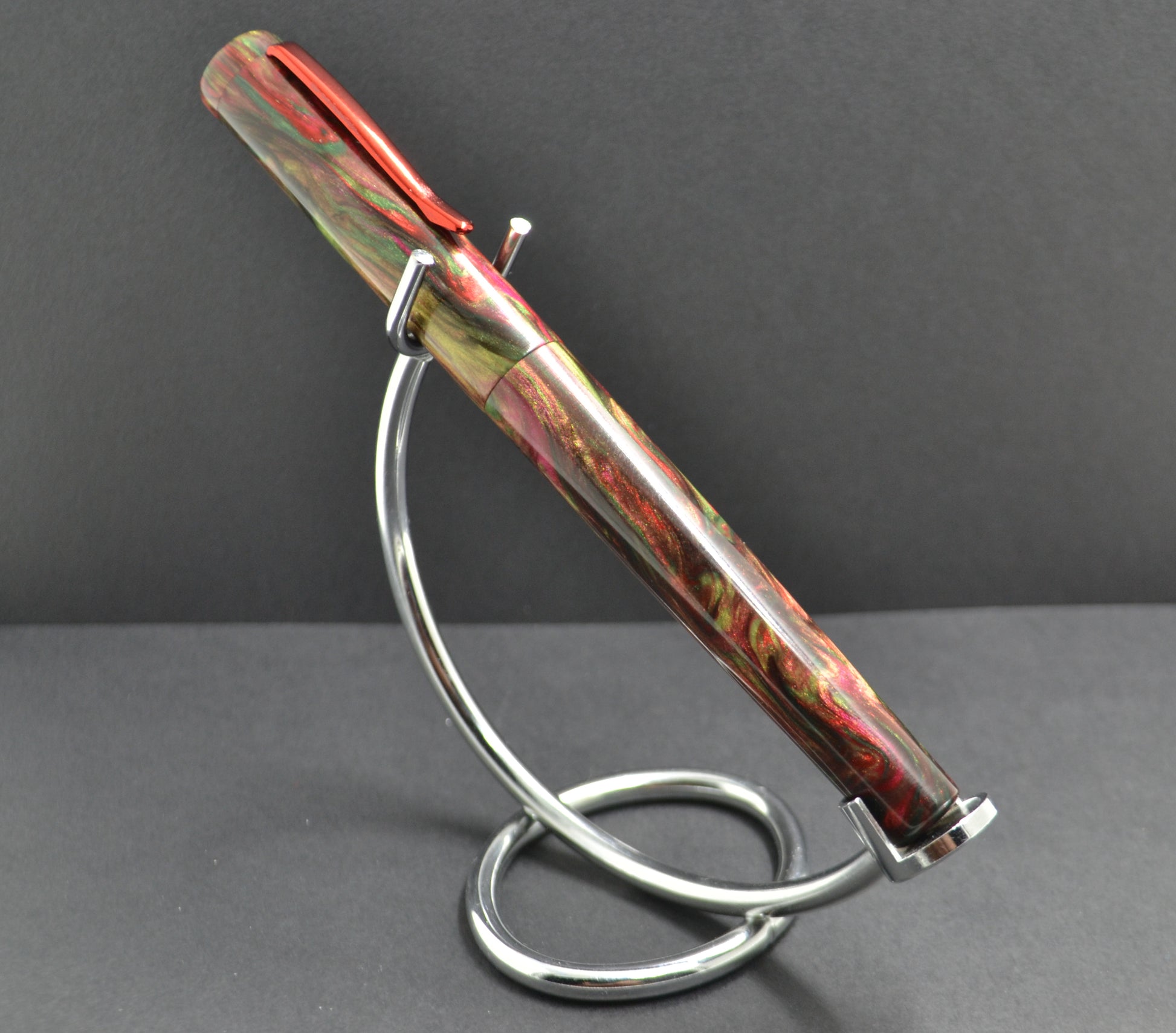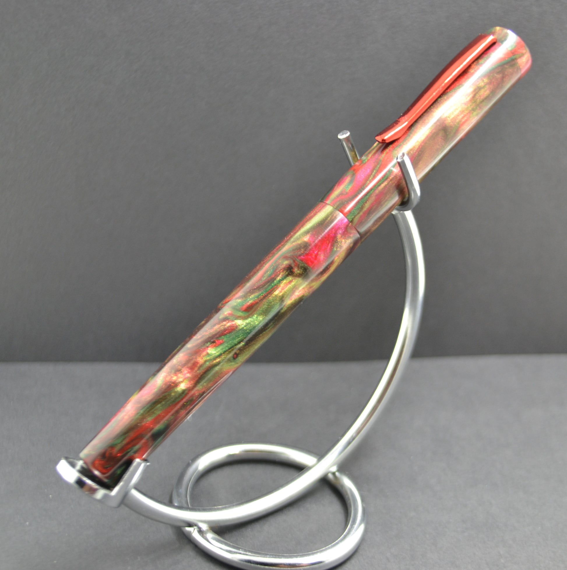 The resin on this introductory pen is called "Enchanted Forrest" and was created by our sister company Starry Night Resins. It is one of her most unique resins to date.