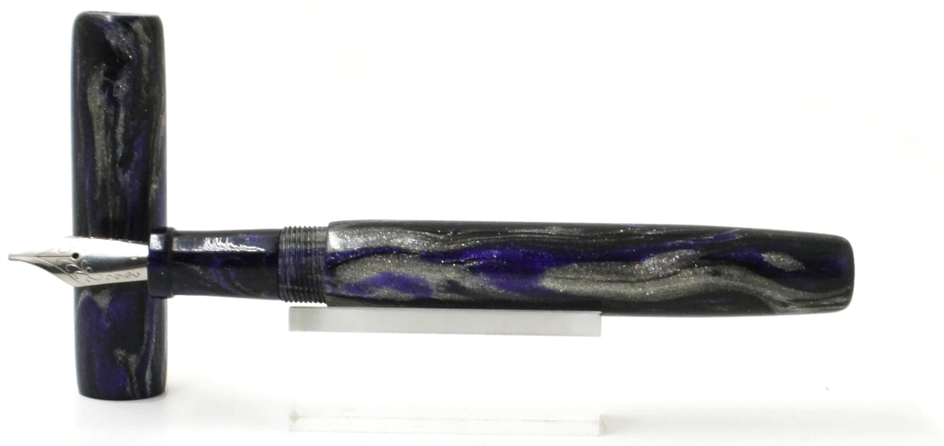 For one of the diamondcast monthly subscription offerings, they decided to swap the rich blue in Queen City Silver with a deep purple. It quickly became a blank that we were making often for custom orders. So often, they decided that it needed to be a stock color. You'll love the combination of rich sparkly purple, real silver coated pigment, and a solid deep black.