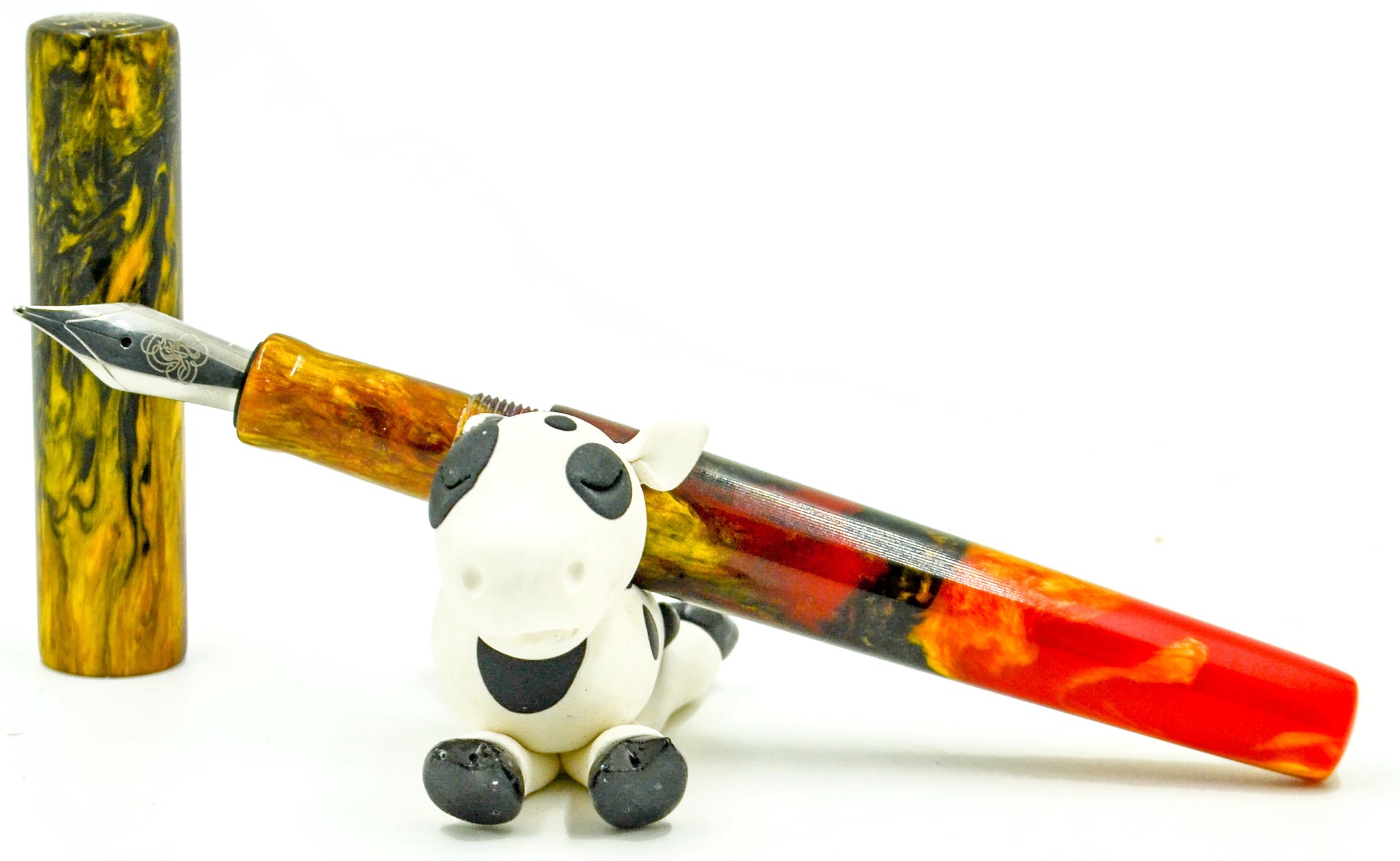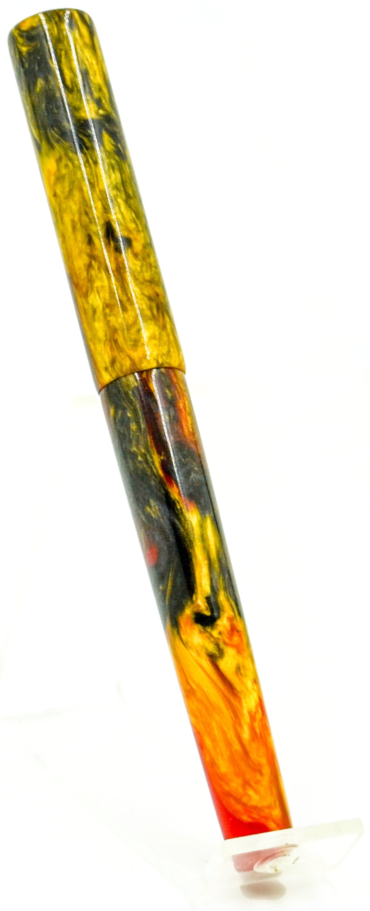 Red, black, gold / Yellow are the colors of the German Flag. As a nod to my families ancestry, we present the Deutschland. The colors on this pen are outstanding. Paired with a red or black nib really accents the colors. The pen is built on our standard platform and is fully postable.
