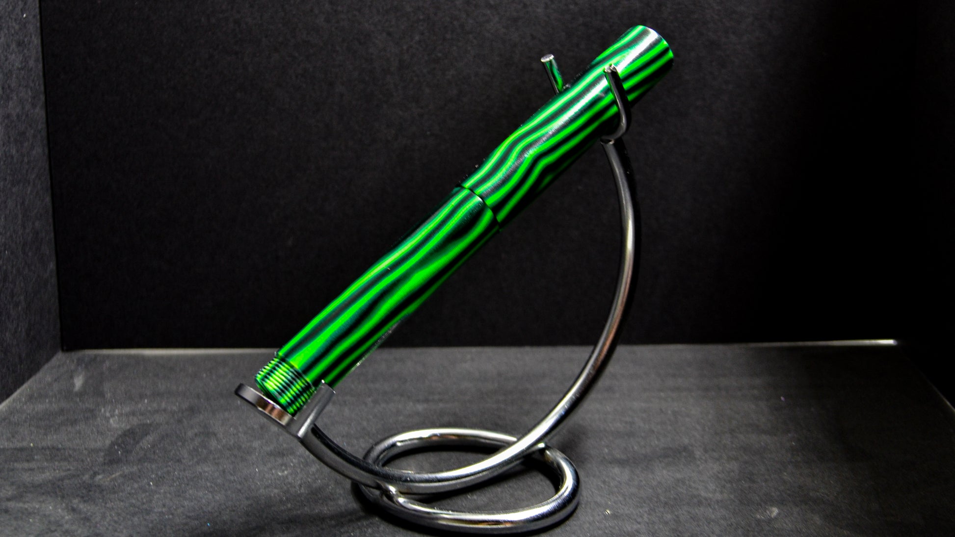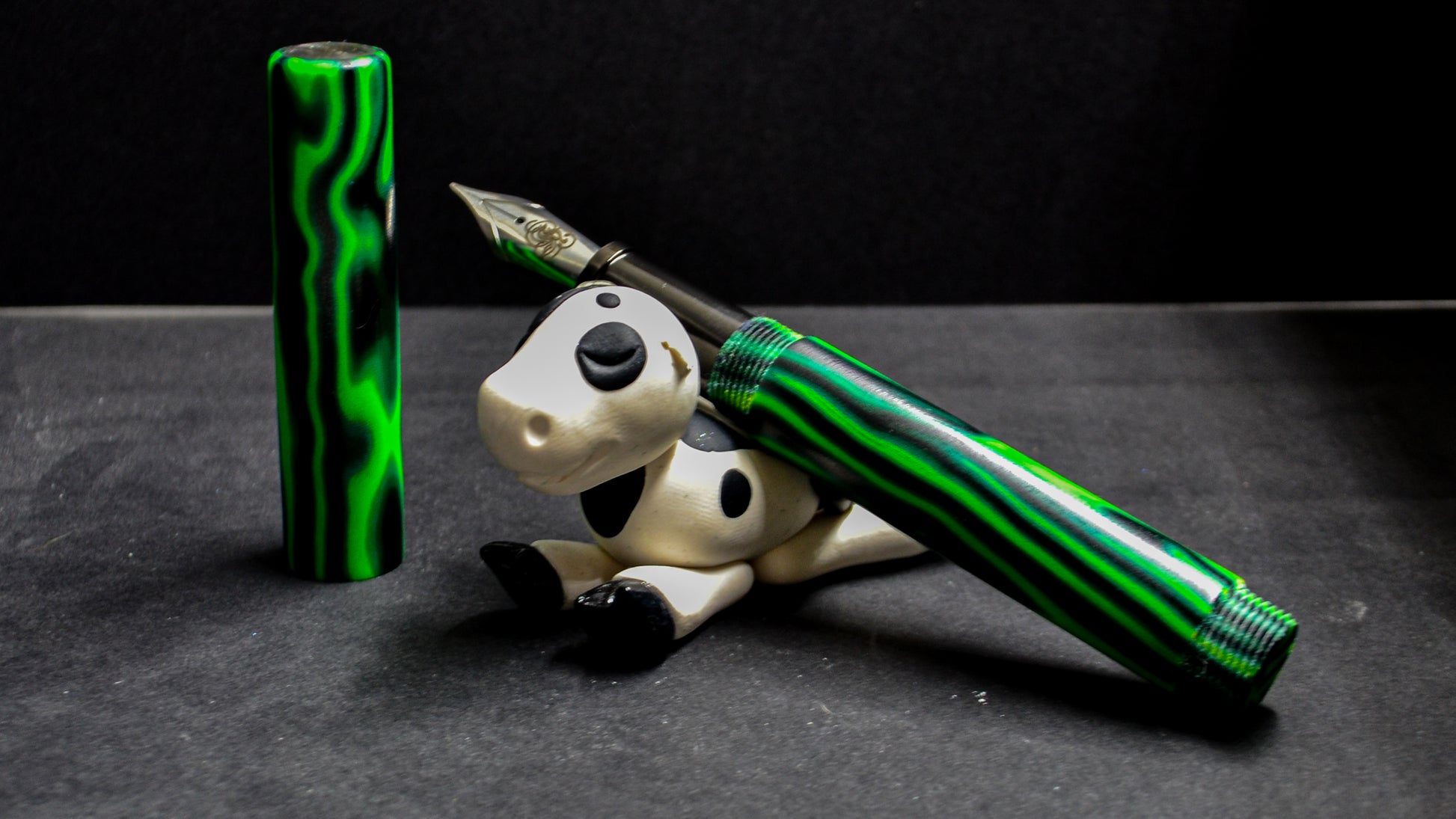 This pen uses a unique material called Crazy Fiber. It is the melding of fabric and resin cured under heat and pressure. The resulting material is much different than traditional Micarta.