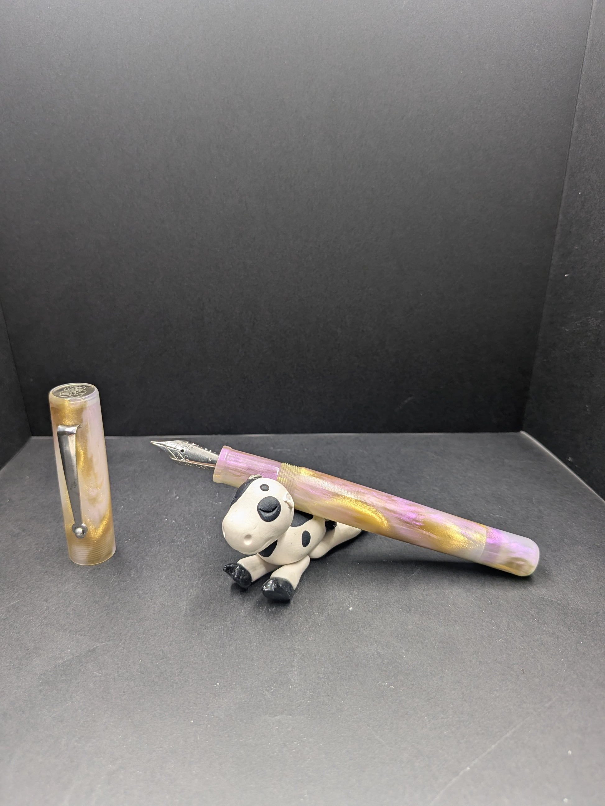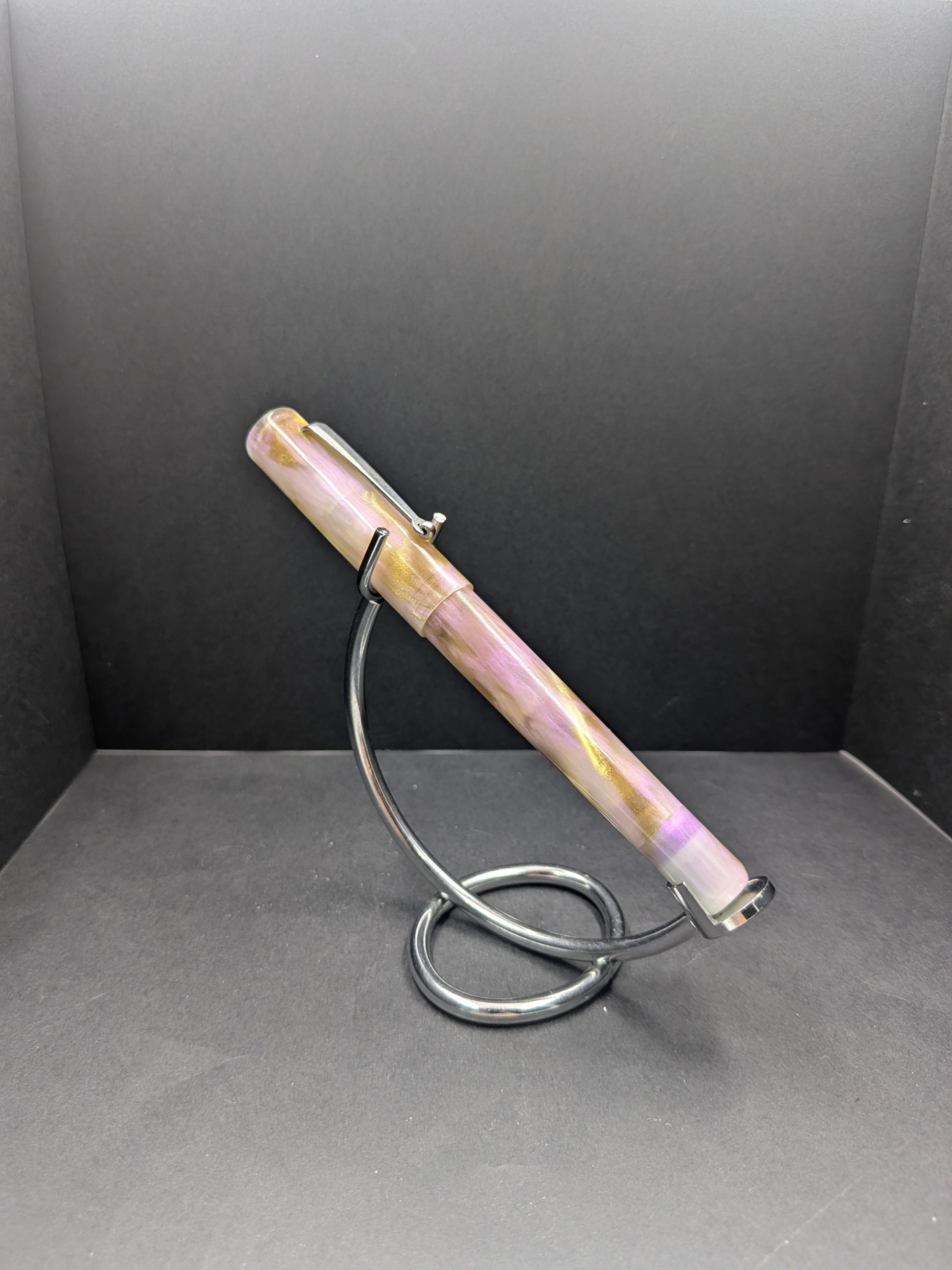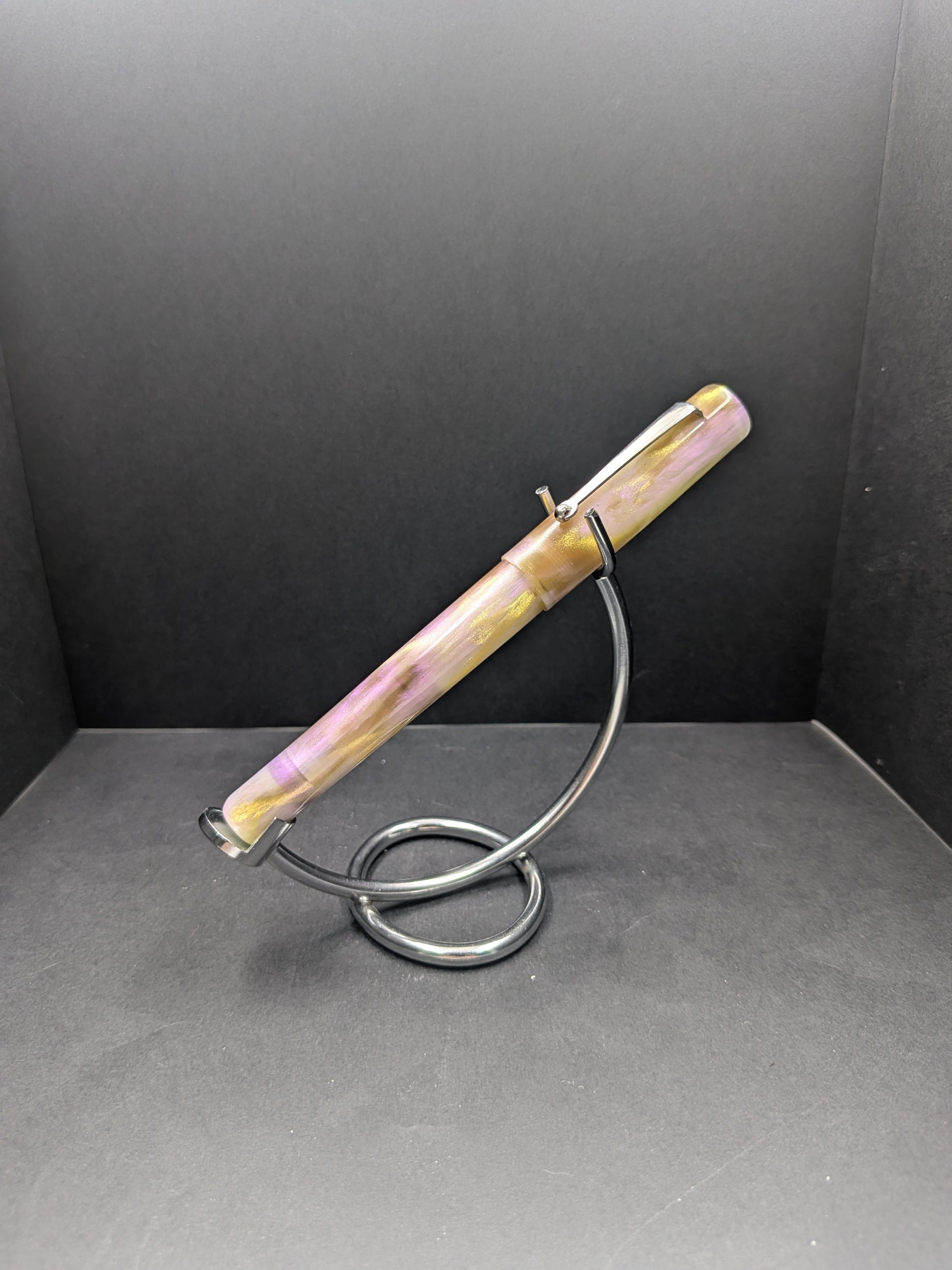 A favorite from Lisa Marie at Pourly Controlled, this resin shines with a Purple Milky Background and Yellow Ribbons, accented by touches of tan throughout. It perfectly channels the cosmic vibe of a distant nebula. Finished with a glossy rhodium-plated roller clip, this pen brings a cool and chic flair. It’s the perfect statement piece to elevate any powerhouse style!