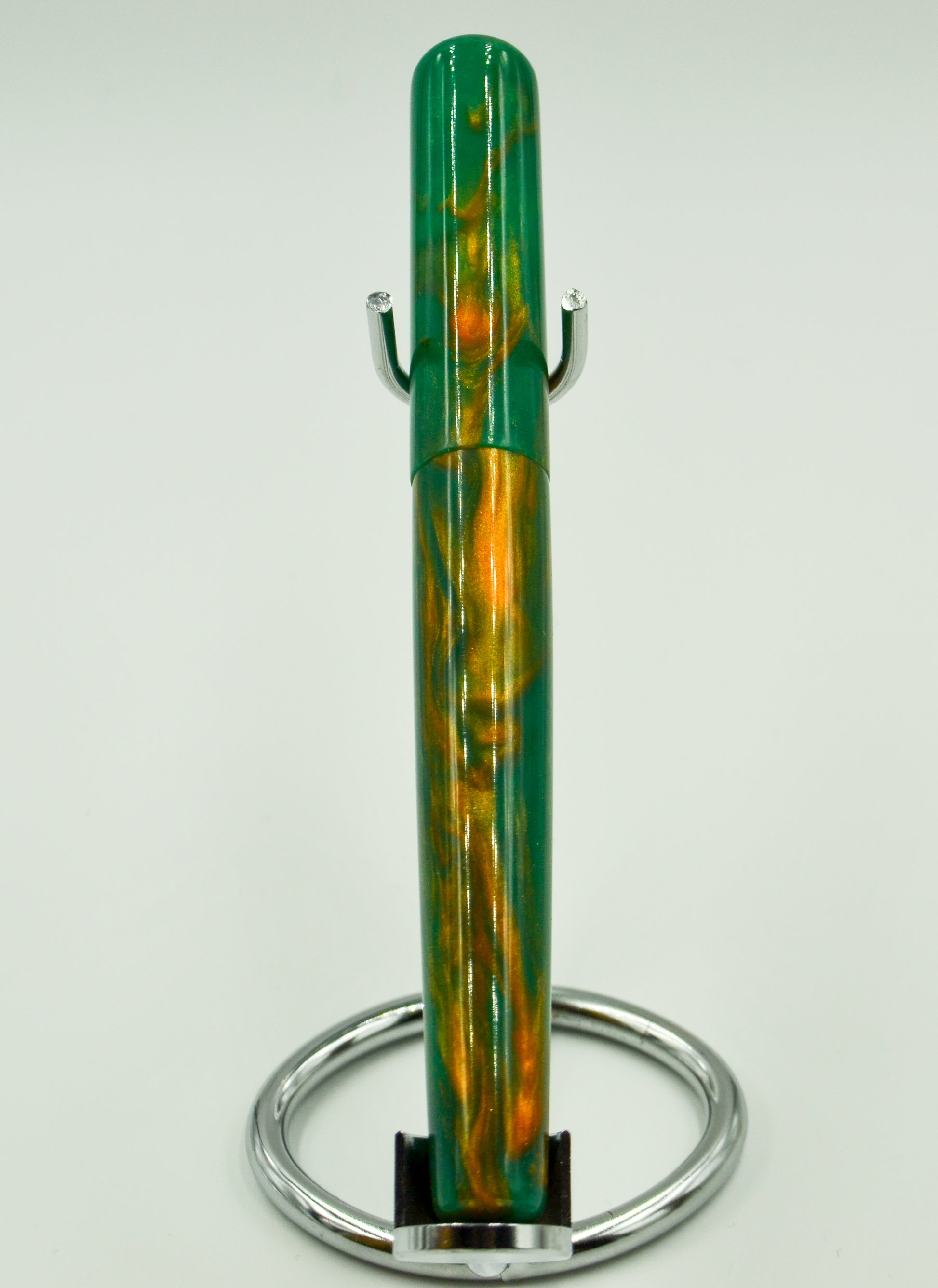 This simple green pen with Orange accents is from our elementar line. The tapered barrel allows for secure posting.