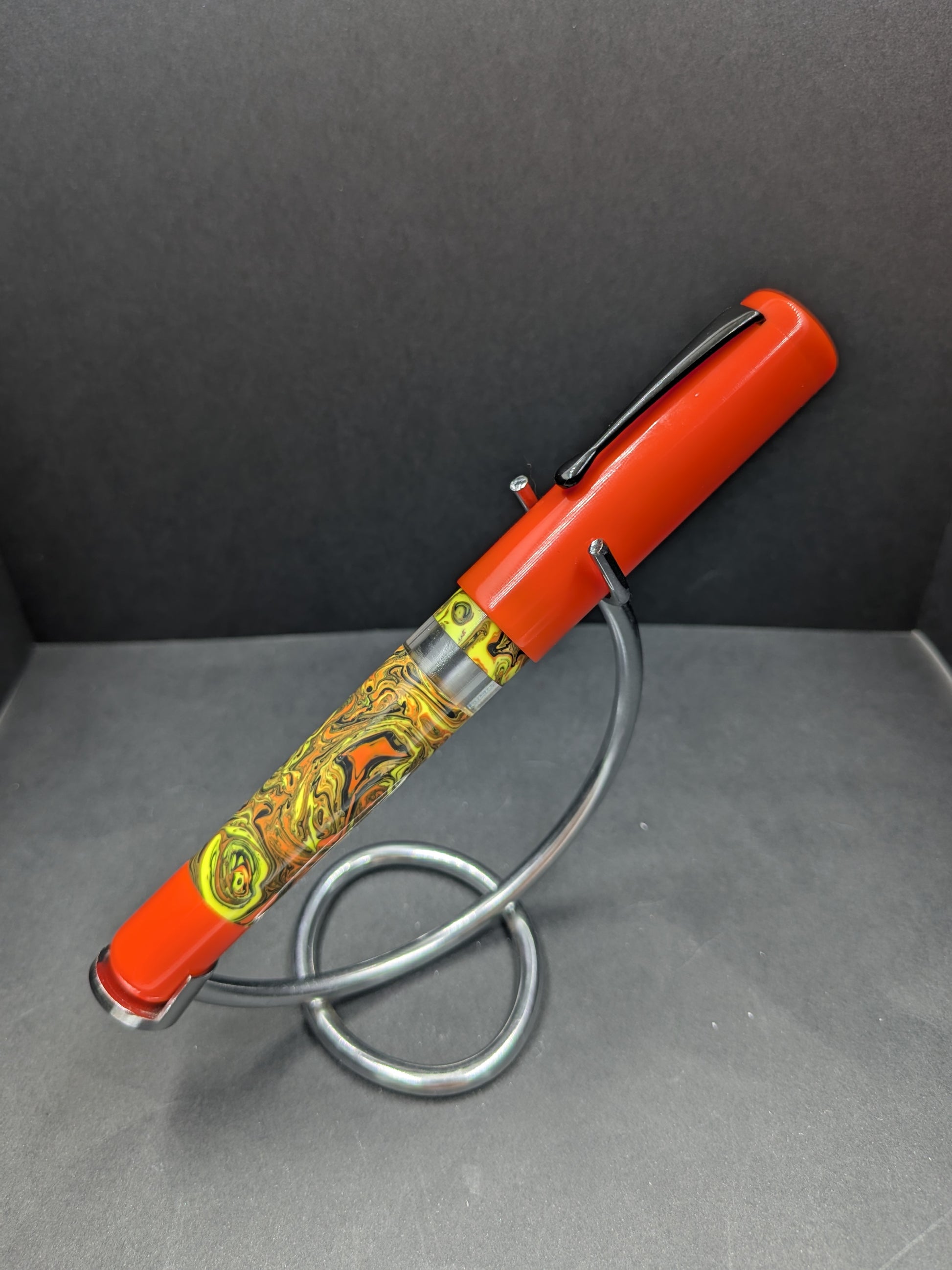 Embrace the warm, glowing colors of the sun at sunrise with the B36 Evancio Sundance from Mutt Blanks. This piston filler pen is perfect for those who adore vibrant orange shades and want to add a splash of sunshine to their writing routine. The Evancio model offers a comfortable grip that fits naturally in your hand, making every writing session a joy. Its sleek, cool design not only looks stunning but also helps you stand out and make a bold statement wherever you go. Whether you're jotting down notes or signing important documents, this playful, sun-inspired pen brings energy and style to your desk and your day.