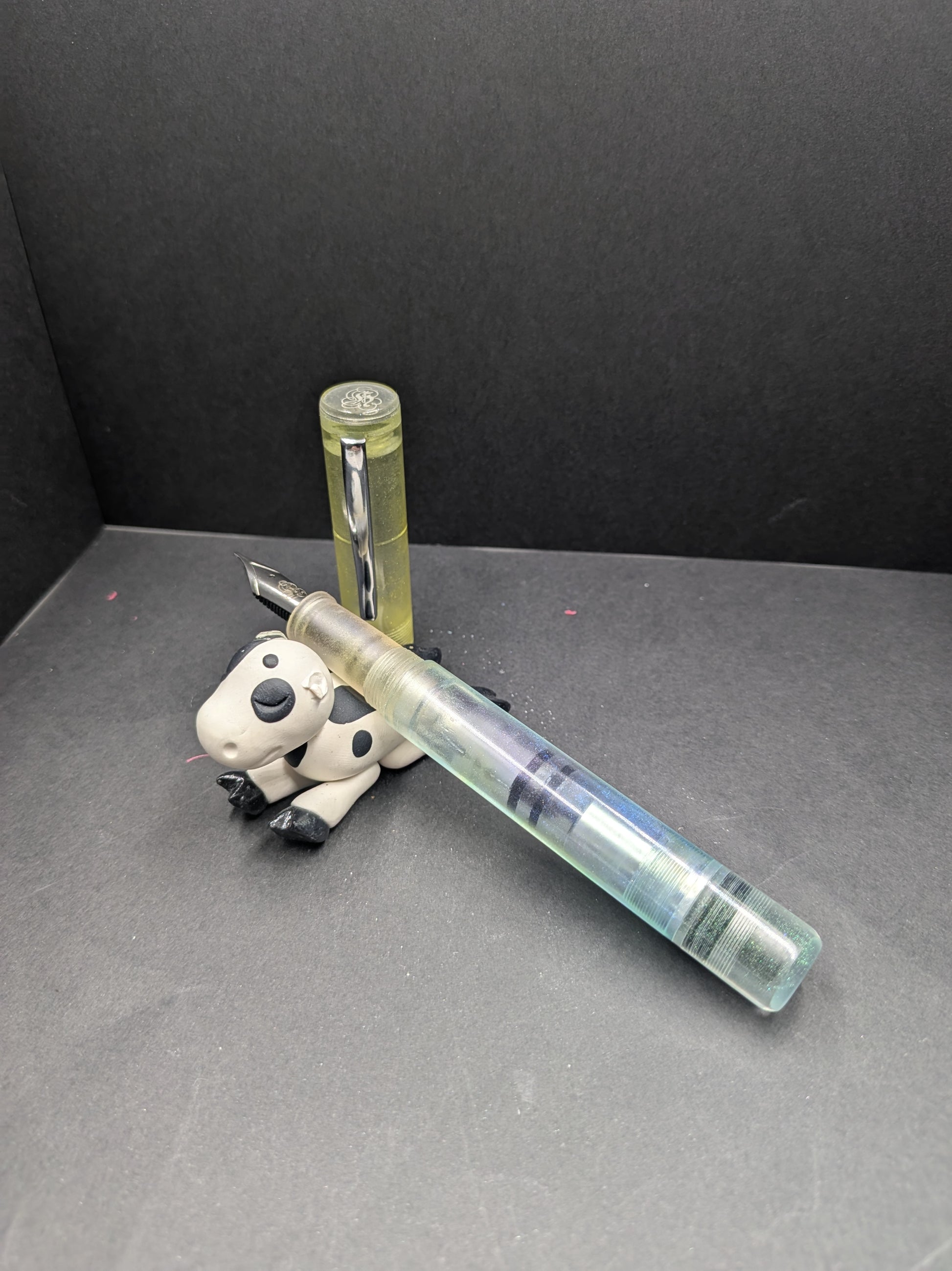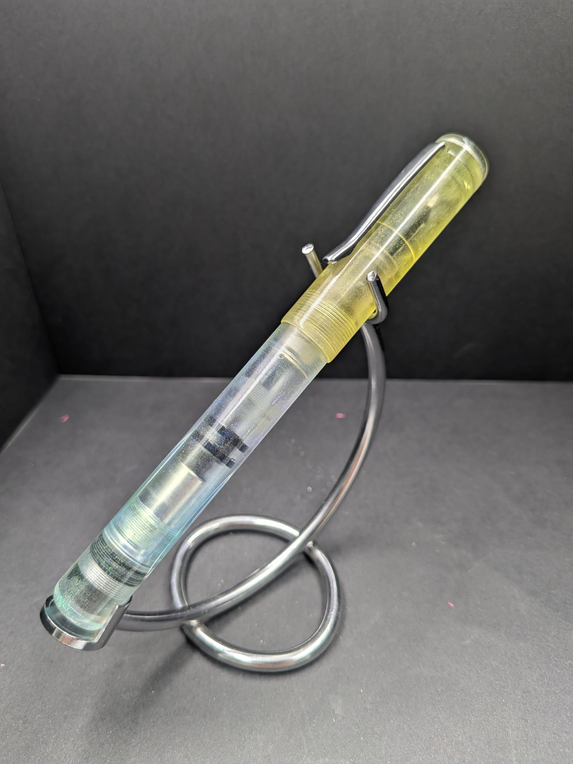 This delightful demonstrator resin glows with gentle pastel hues throughout, making every glance a little brighter. Crafted by the talented Nick Pasquale, it’s quickly become a beloved choice for those who appreciate both style and function. The sturdy metal piston mechanism not only looks sleek but also guarantees a smooth, reliable fill with every use. Whether you’re jotting down notes or sketching your next masterpiece, this pen adds a playful splash of color and dependable performance to your writing experience. Perfect for collectors and everyday users alike!