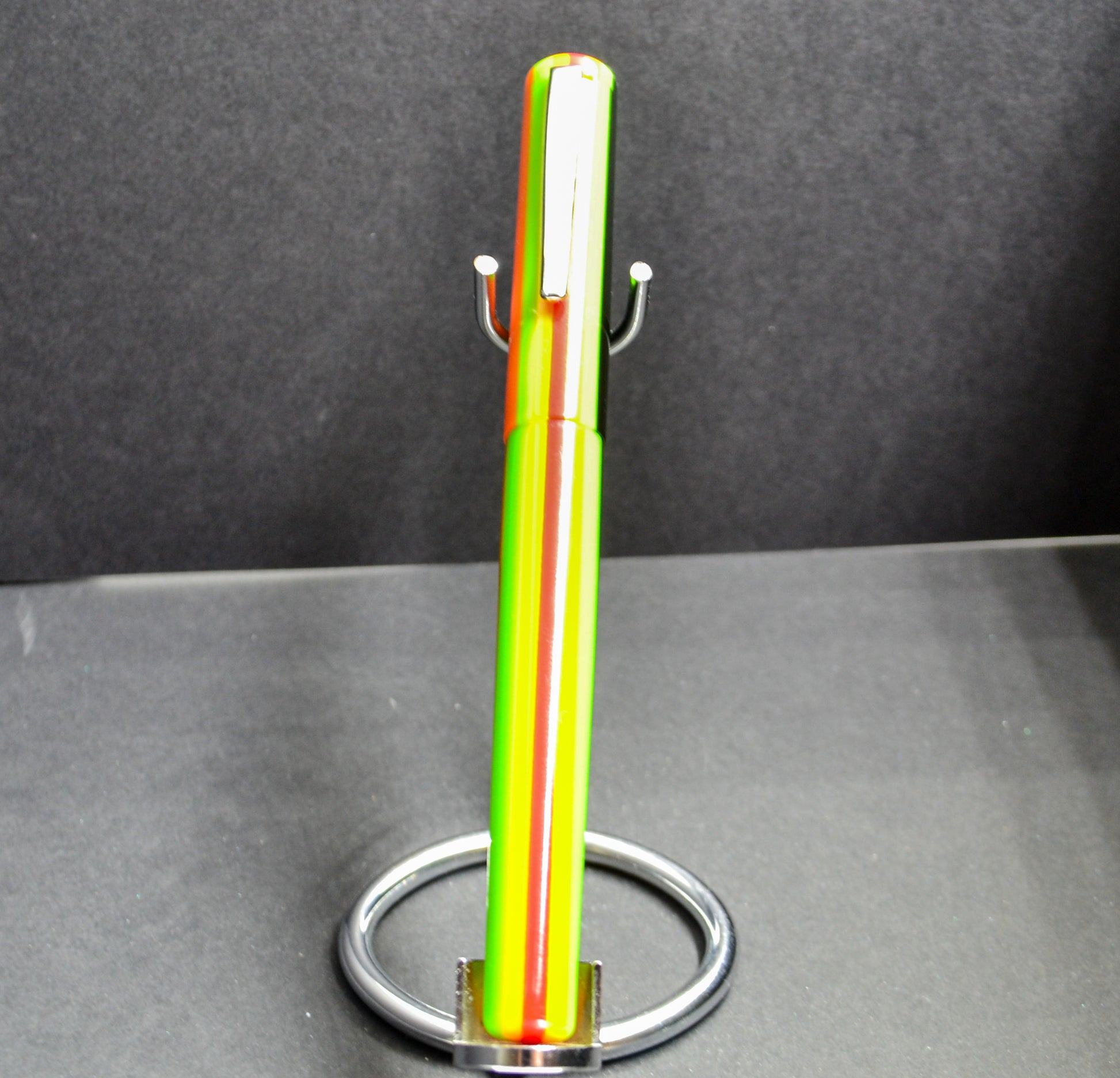 Our more petite pen, the Erste, made in a beautiful vintage Bexley material. I purchased a lot of their old materials with the intent of using them for our Erste line. This is one of 2 blanks I have of this material.. so very limited edition. It just reminds me of Laugh-in and I get the whole 1970's vibe :)