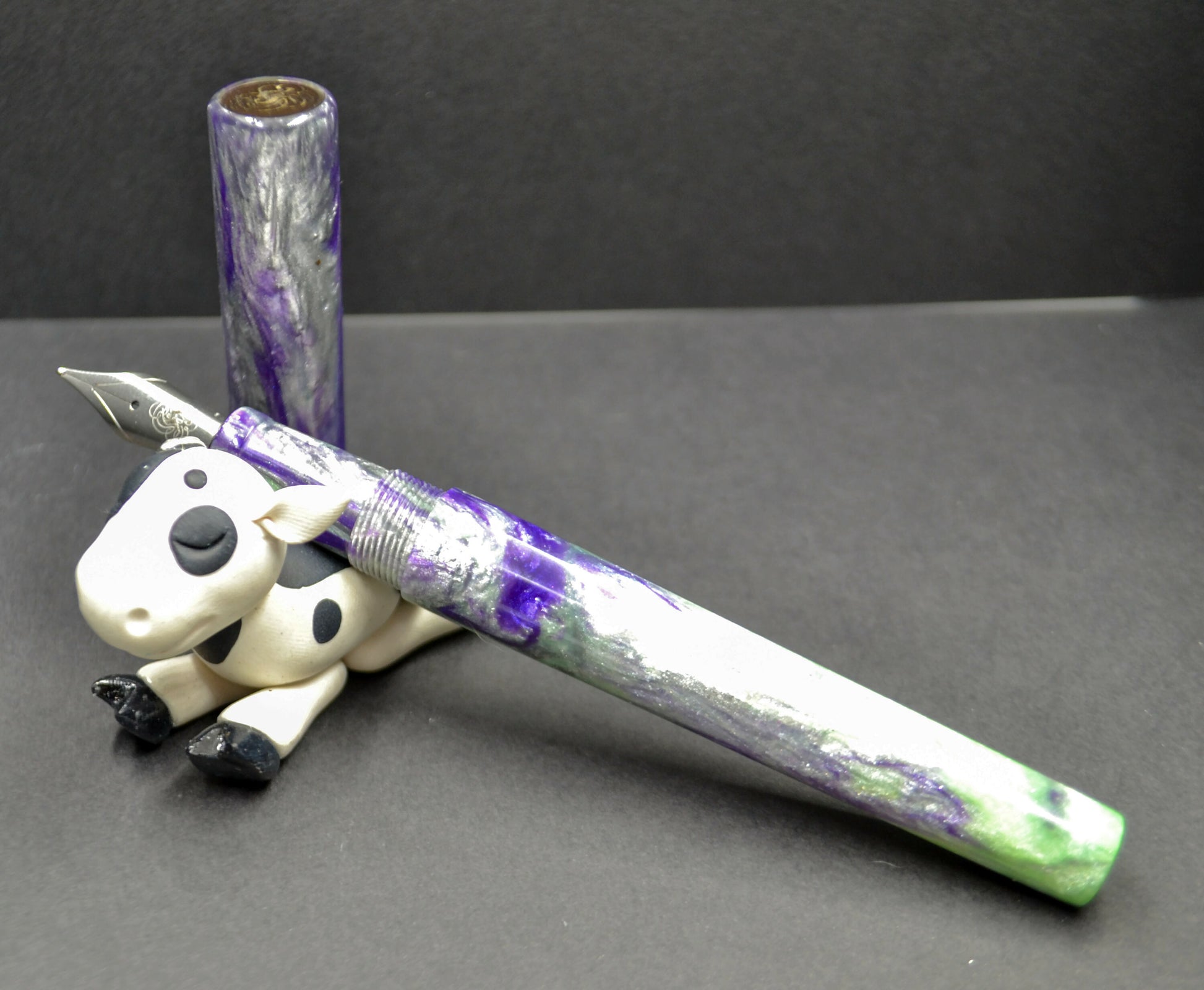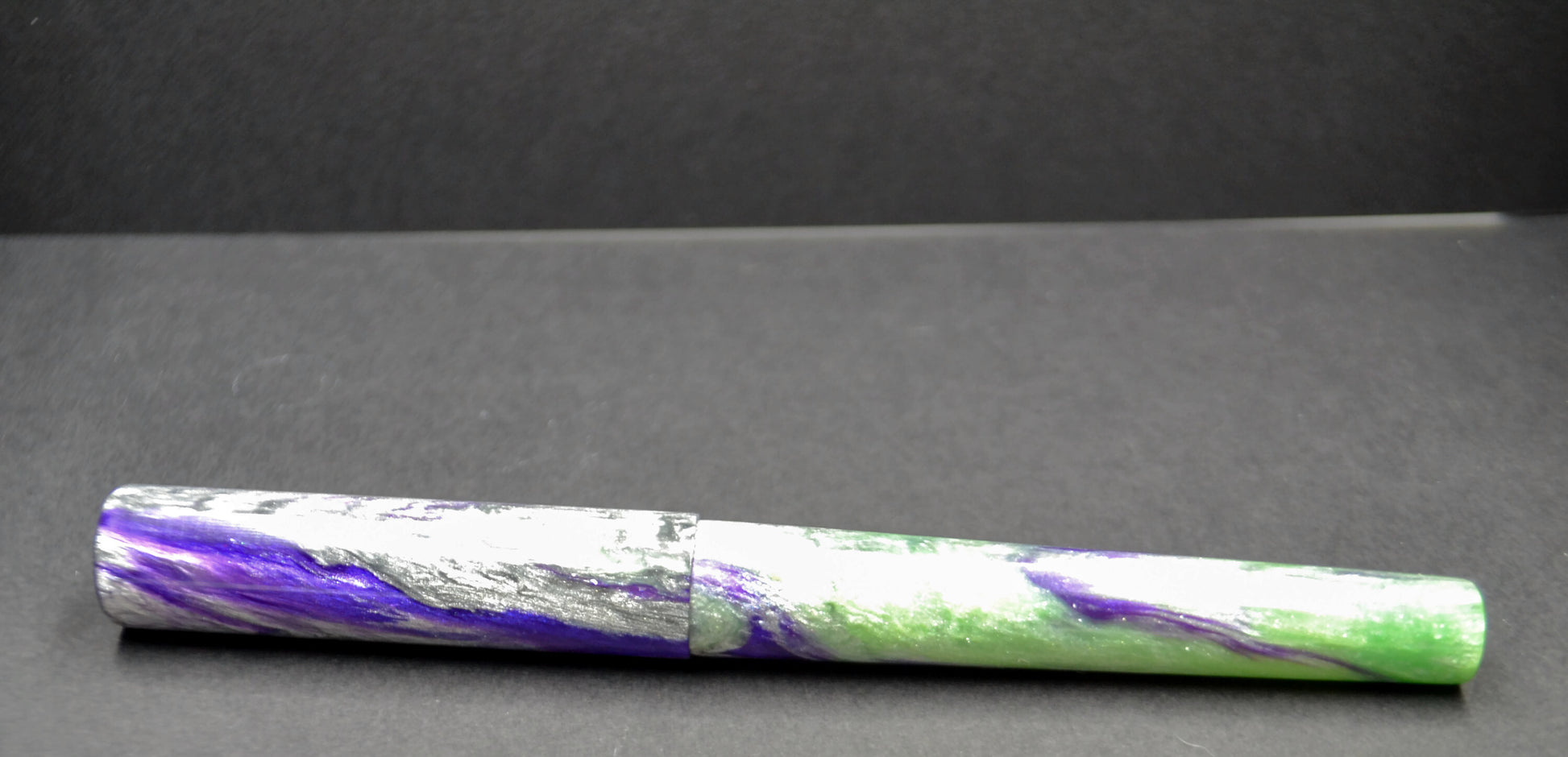Elyce's favorite flower is the purple iris. In the spirit of the flower, she created this blank is a mix of seafoam green, violet and a hint of a shimmery silver.