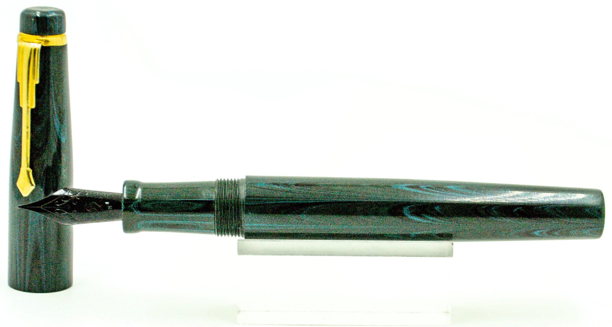 The only adornment to this pen is a gold vintage style clip. These clips are in short supply and we only have a few left. Once they are gone, they will be replaced with a more modern clip.