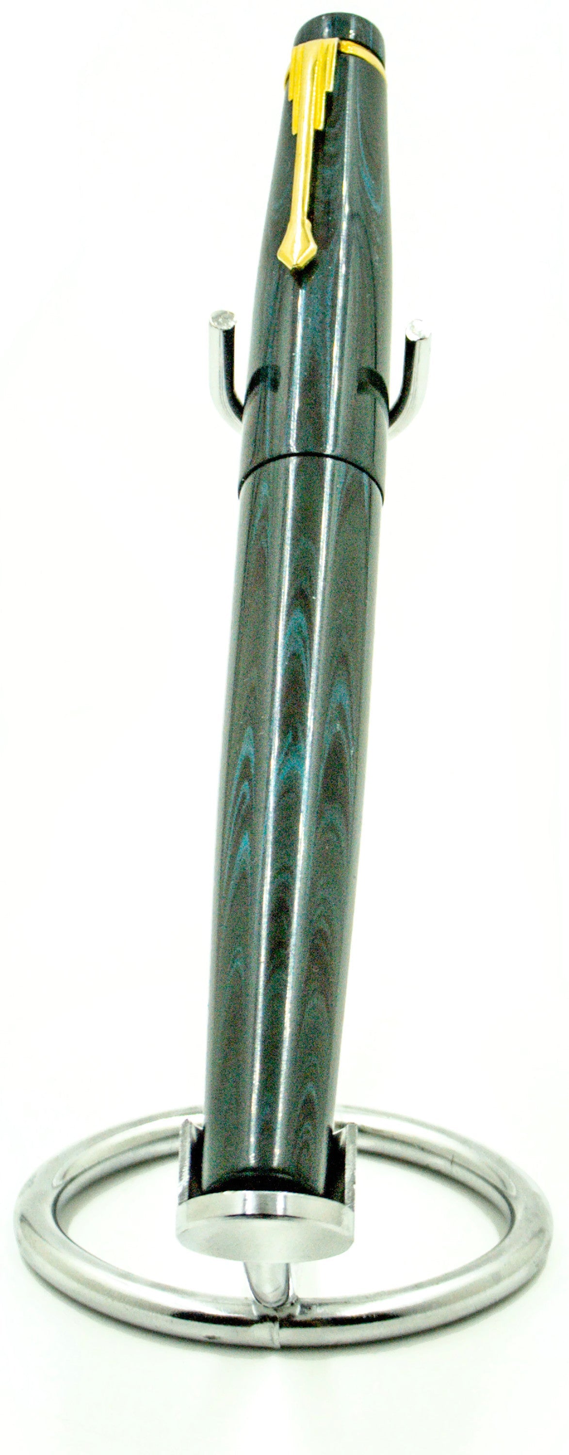 Made from solid German ebonite, it offers many benefits to the user over other acrylic options. Ebonite is very warm in the hand. It does not get slick during long writing sessions where the hand may get a little damp from perspiration. It is also a very durable material, resisting dents and cracks from accidental drops.