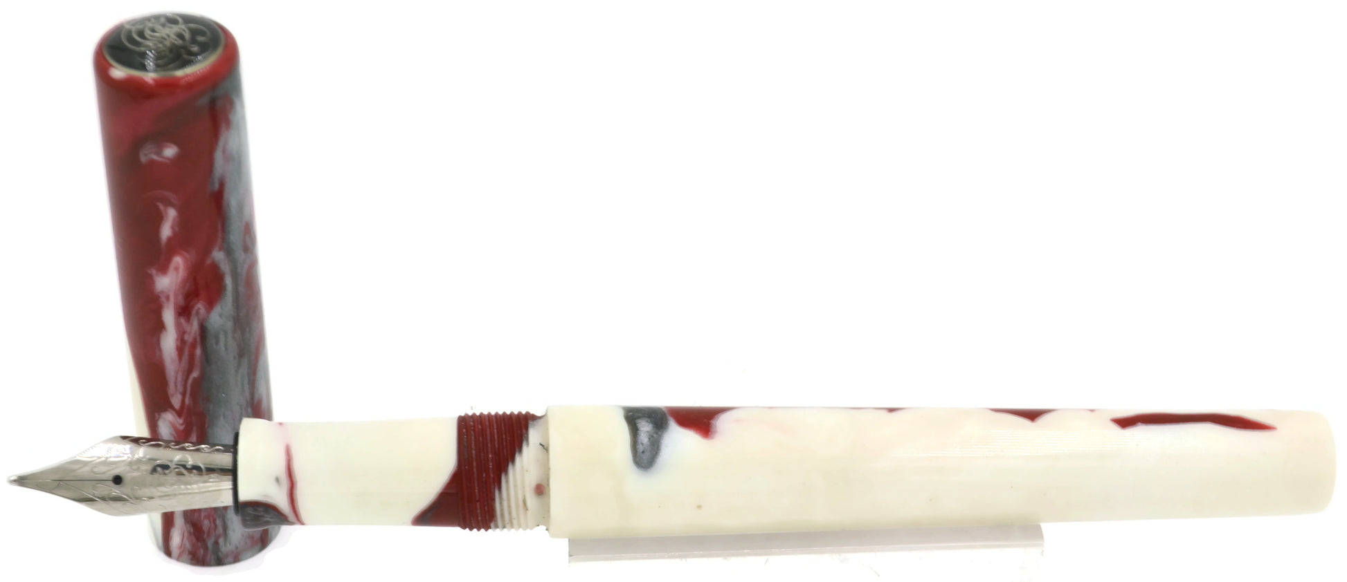 Our standard elementar done in a wonderful white, platinum, and red swirled resin. This is an in-house pour originally done to match Arizona State colors..