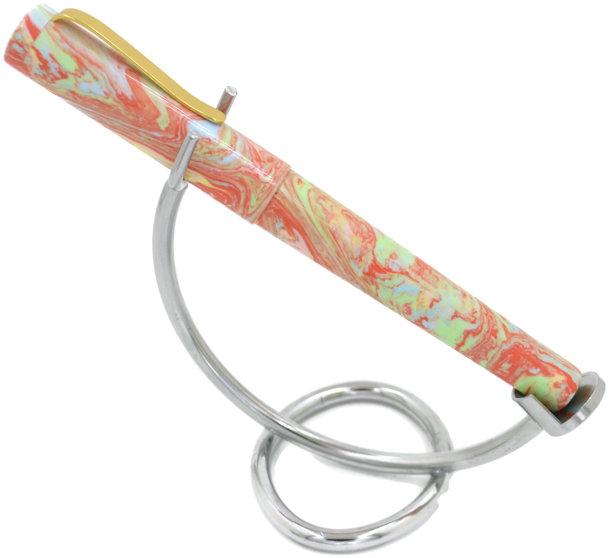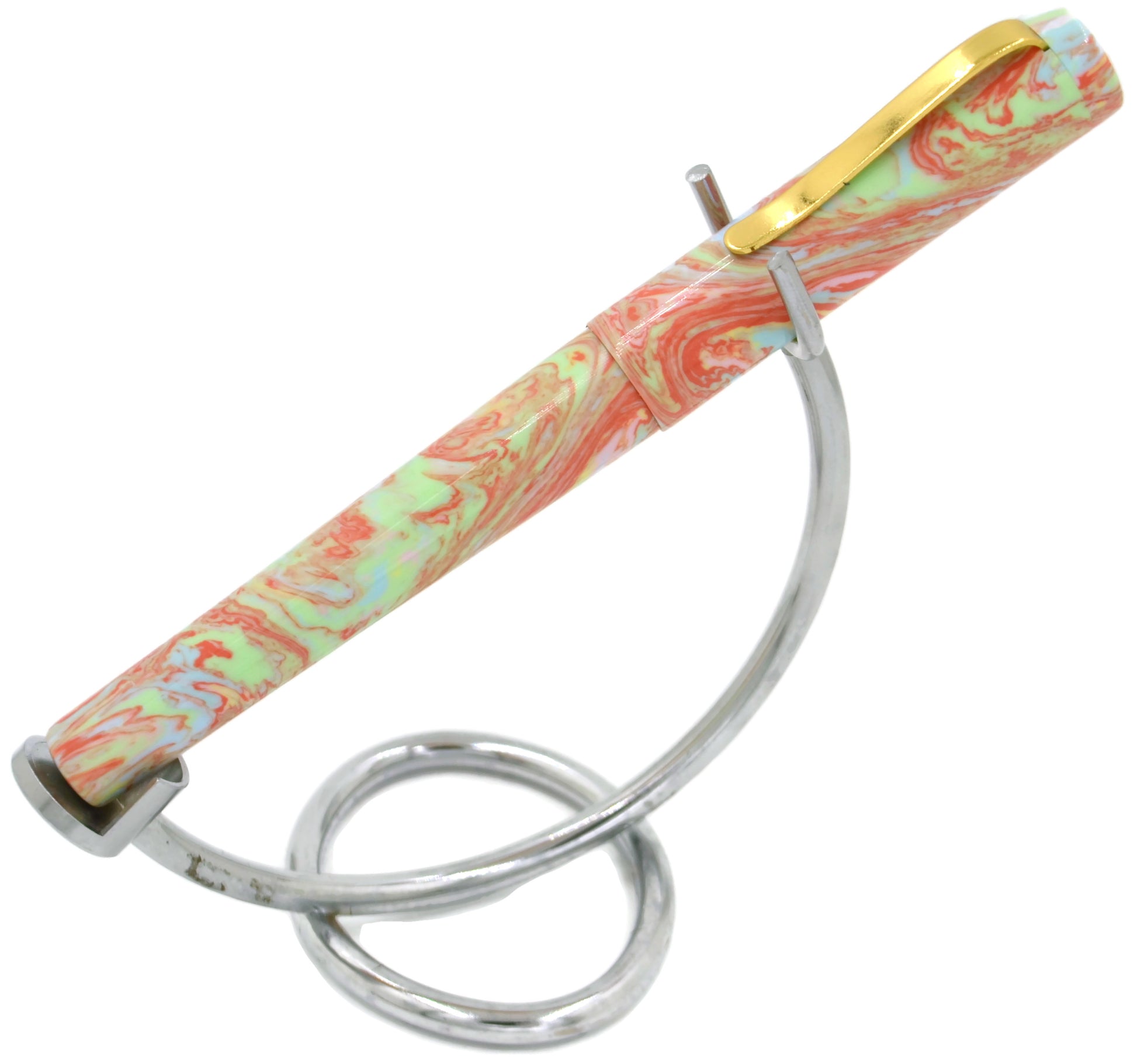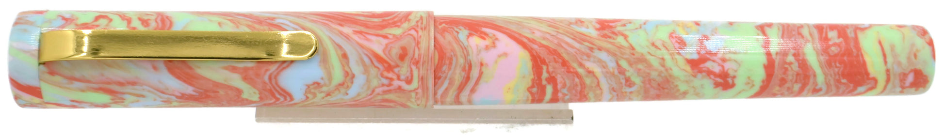 This pen is the result of that collaboration.. Introducing the Natter Batter! If you like pastels, this is the pen for you. Green, orange, yellow, blue, and pink in tight swirl patterns... I'm not a fan of pastels, but this resin rocks.