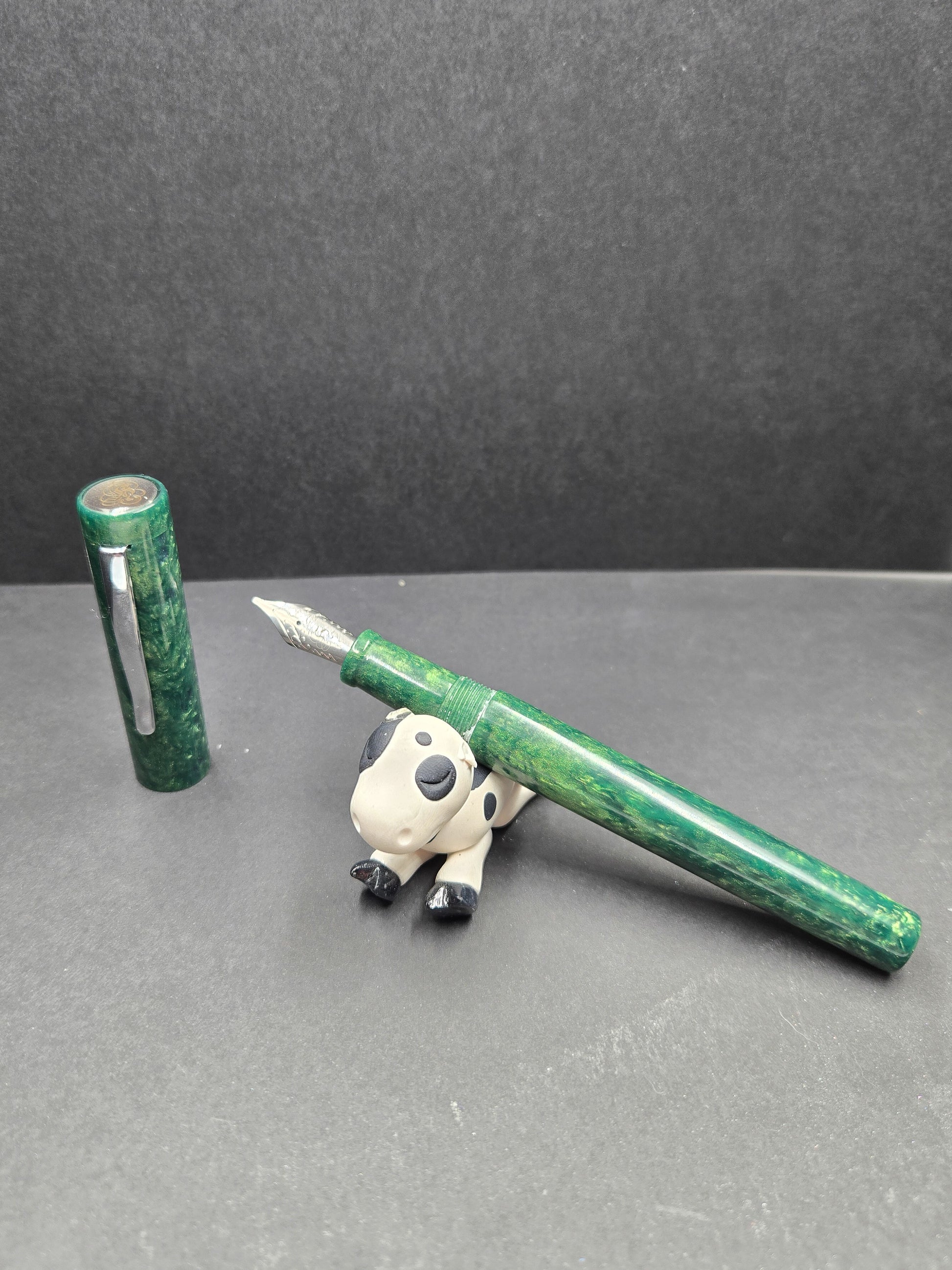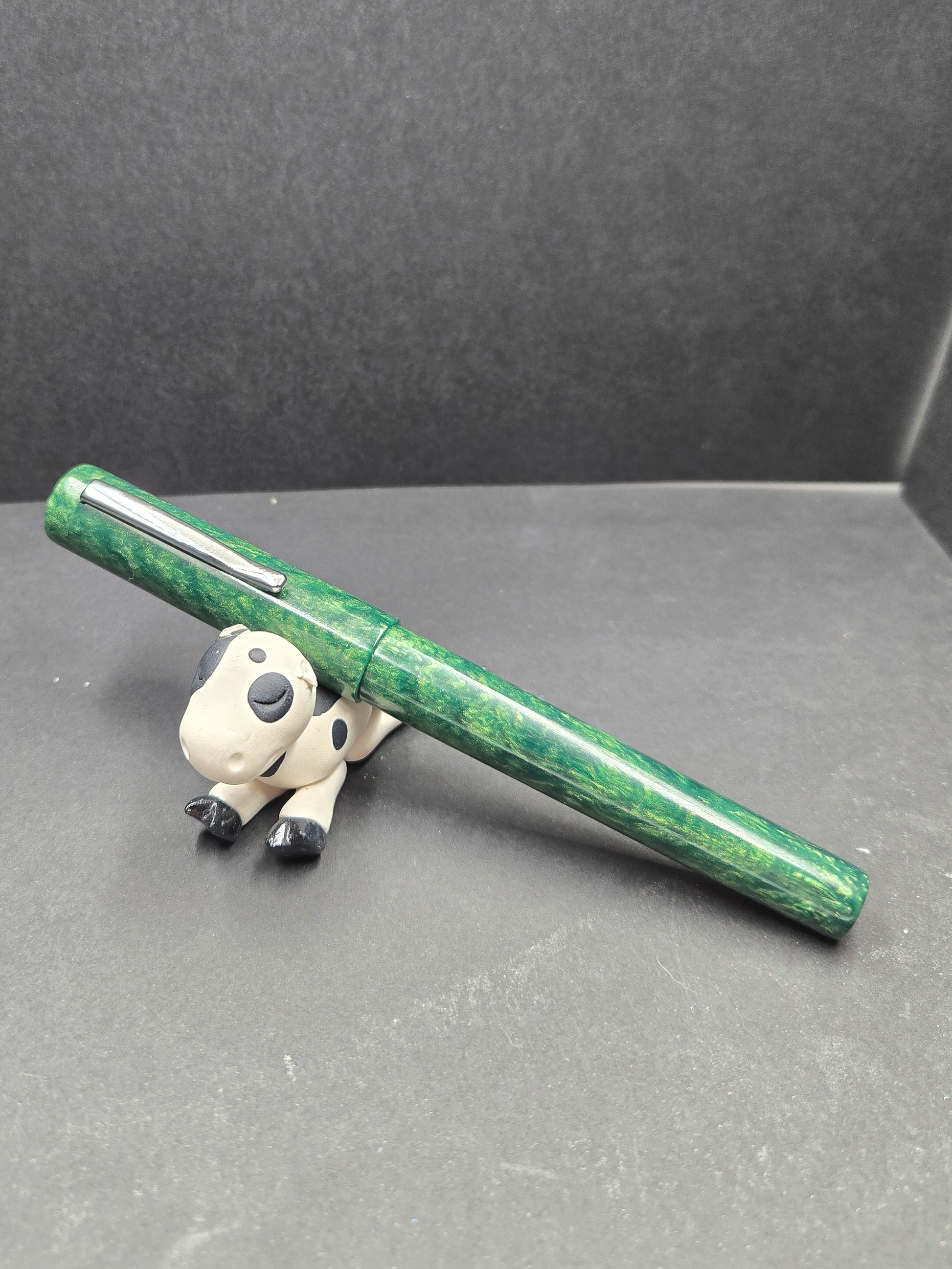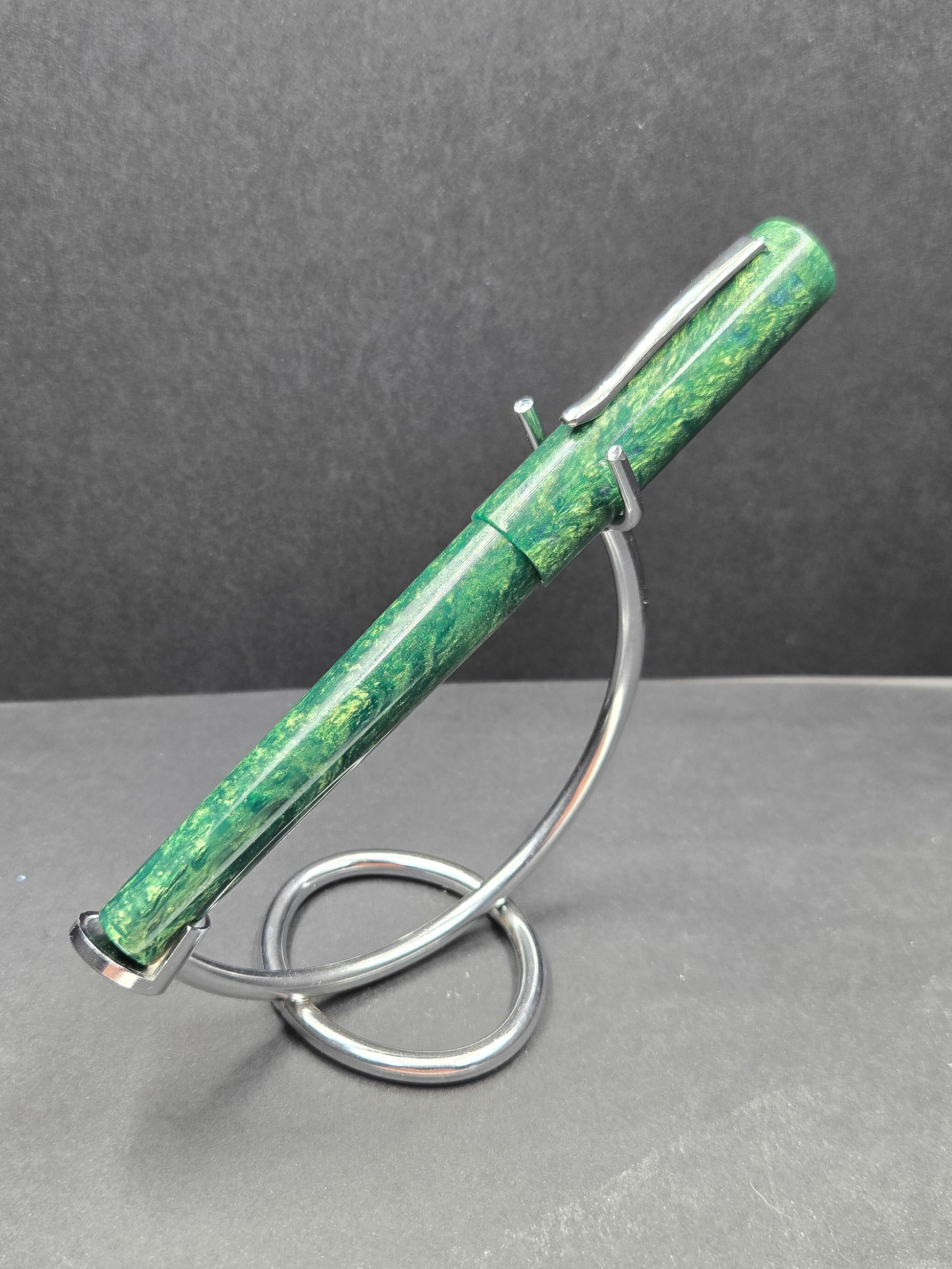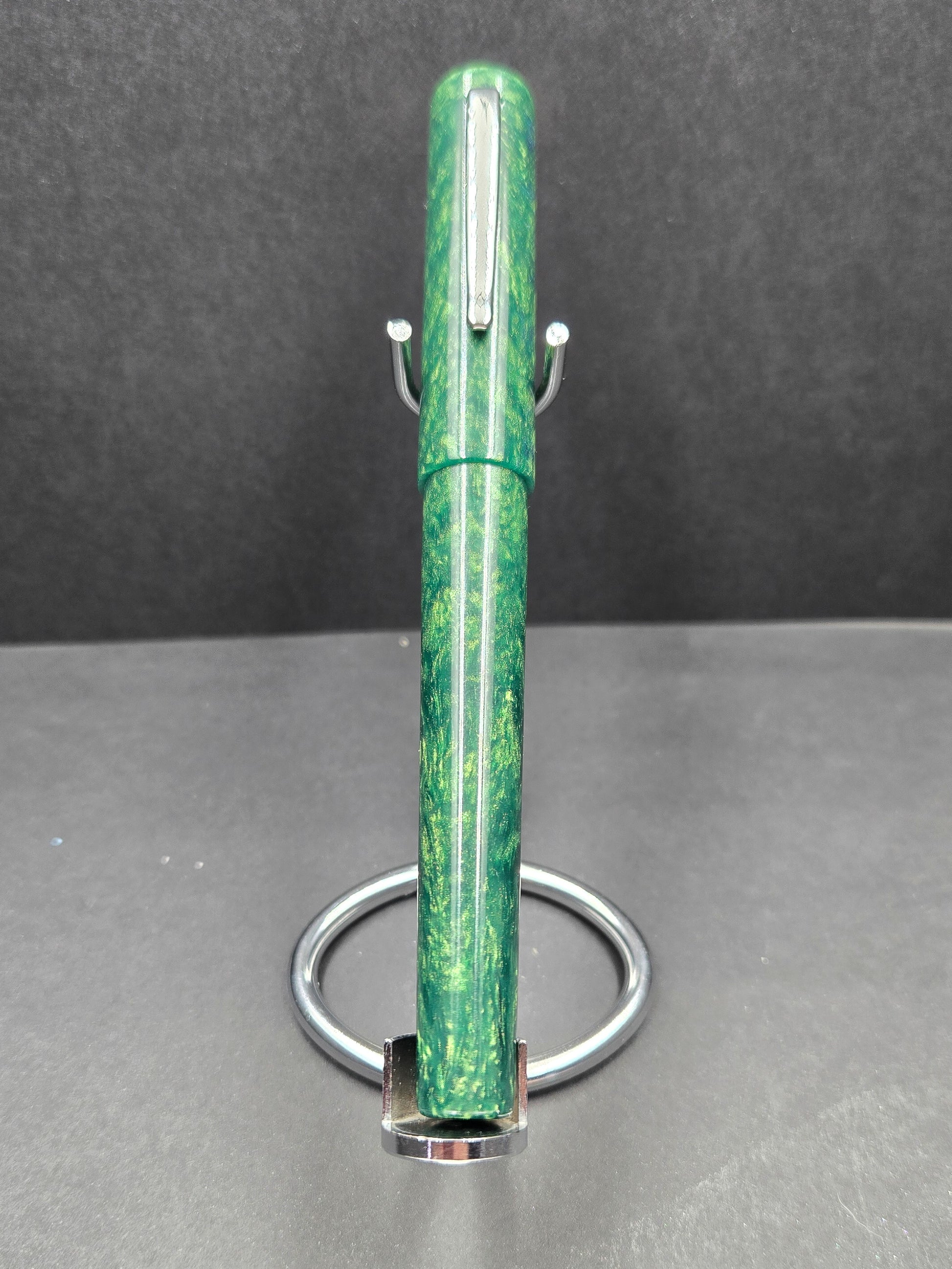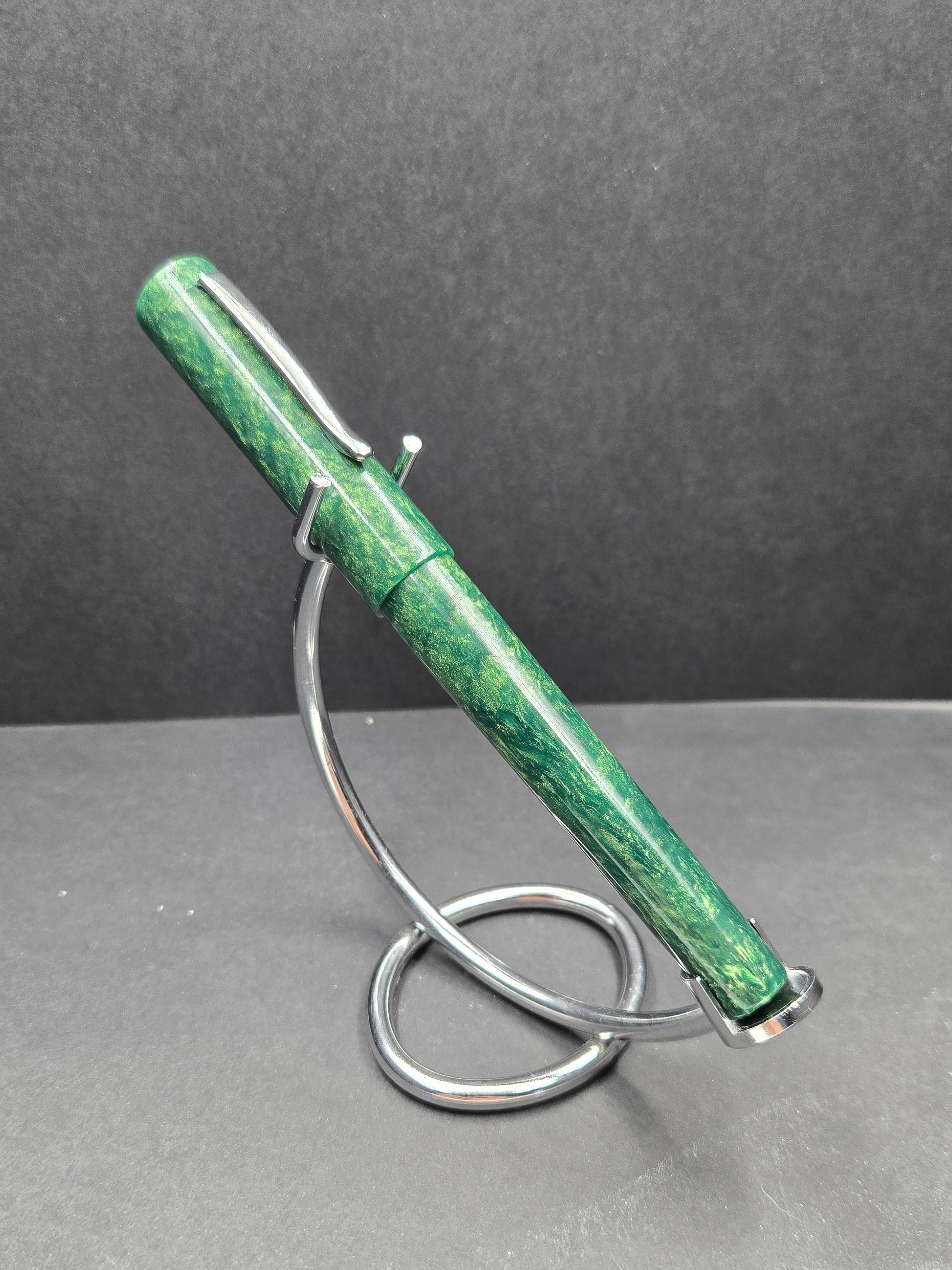Meet Autumn Elegance – a B24 blank that captures that magical moment when fall is just beginning to whisper its arrival. This beauty is predominantly lush green with the most delicate kiss of gold threading throughout, reminiscent of those early autumn days up north when nature can't quite decide to let summer go. The gold accents are subtle and sophisticated, peeking through like sunlight filtering through changing leaves, creating depth and movement that shifts with every angle. It's the perfect blank for crafters who appreciate understated elegance with a touch of seasonal charm. Whether you're turning a pen for someone who loves the transitional beauty of fall or you want a design that works year-round with timeless appeal, Autumn Elegance delivers sophisticated color harmony. The interplay between the verdant greens and golden highlights makes this blank genuinely special – it's got personality without being loud about it. This is the kind of material that makes people stop and ask, "Where did you get that?"