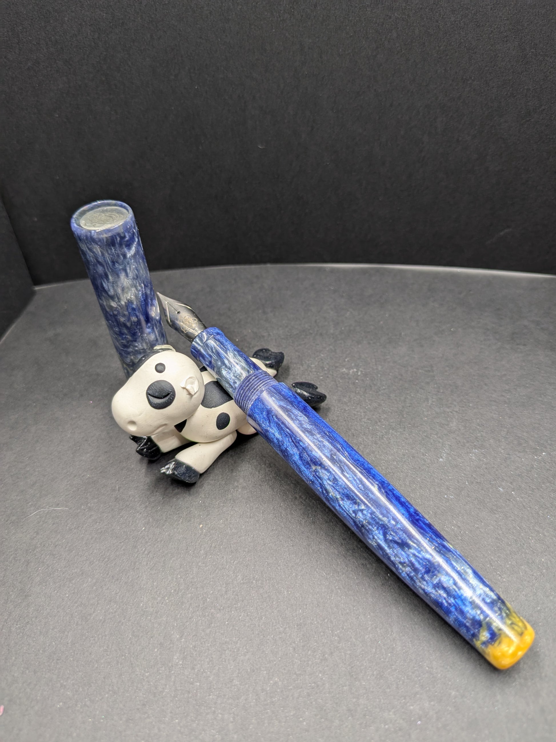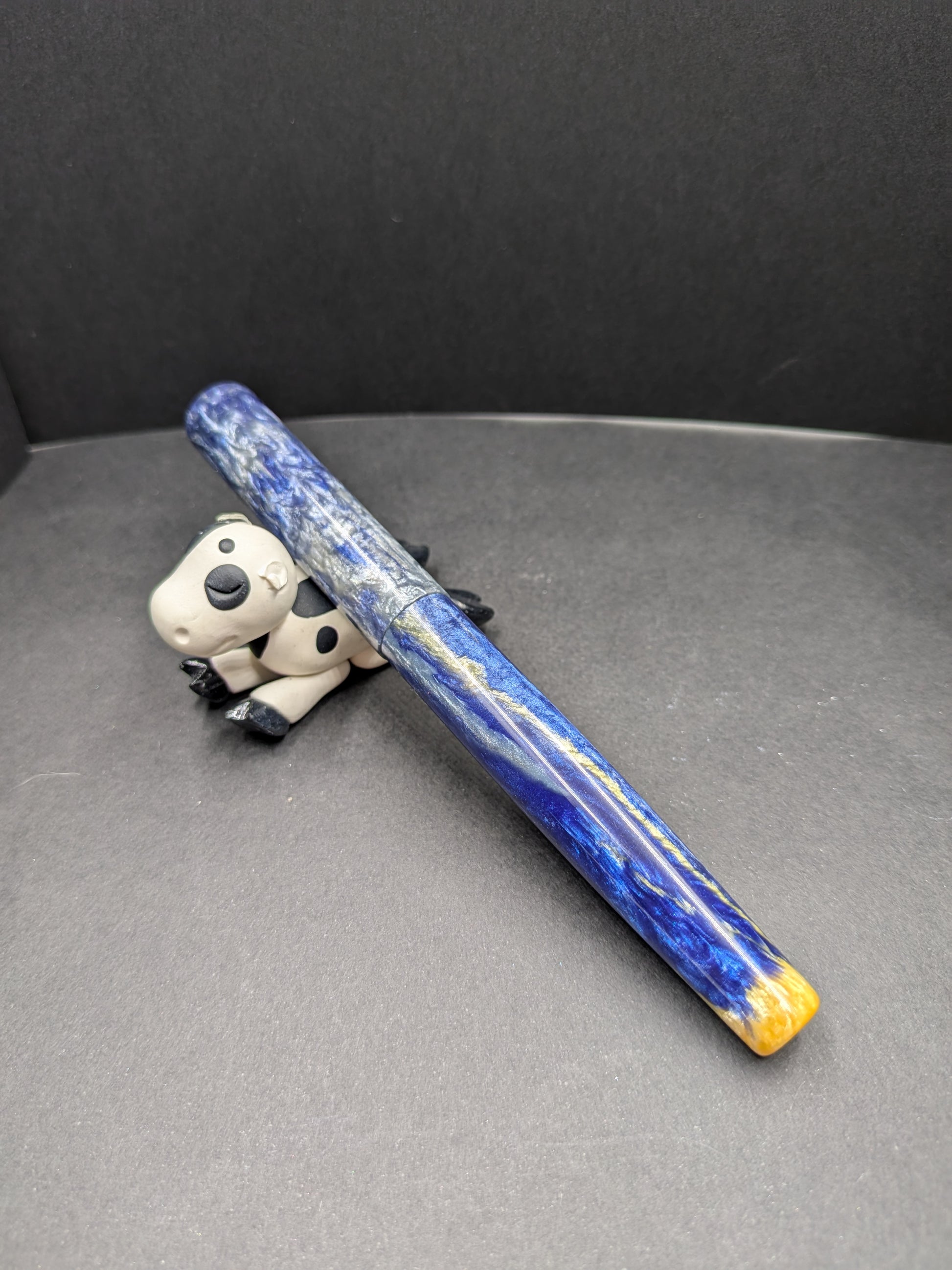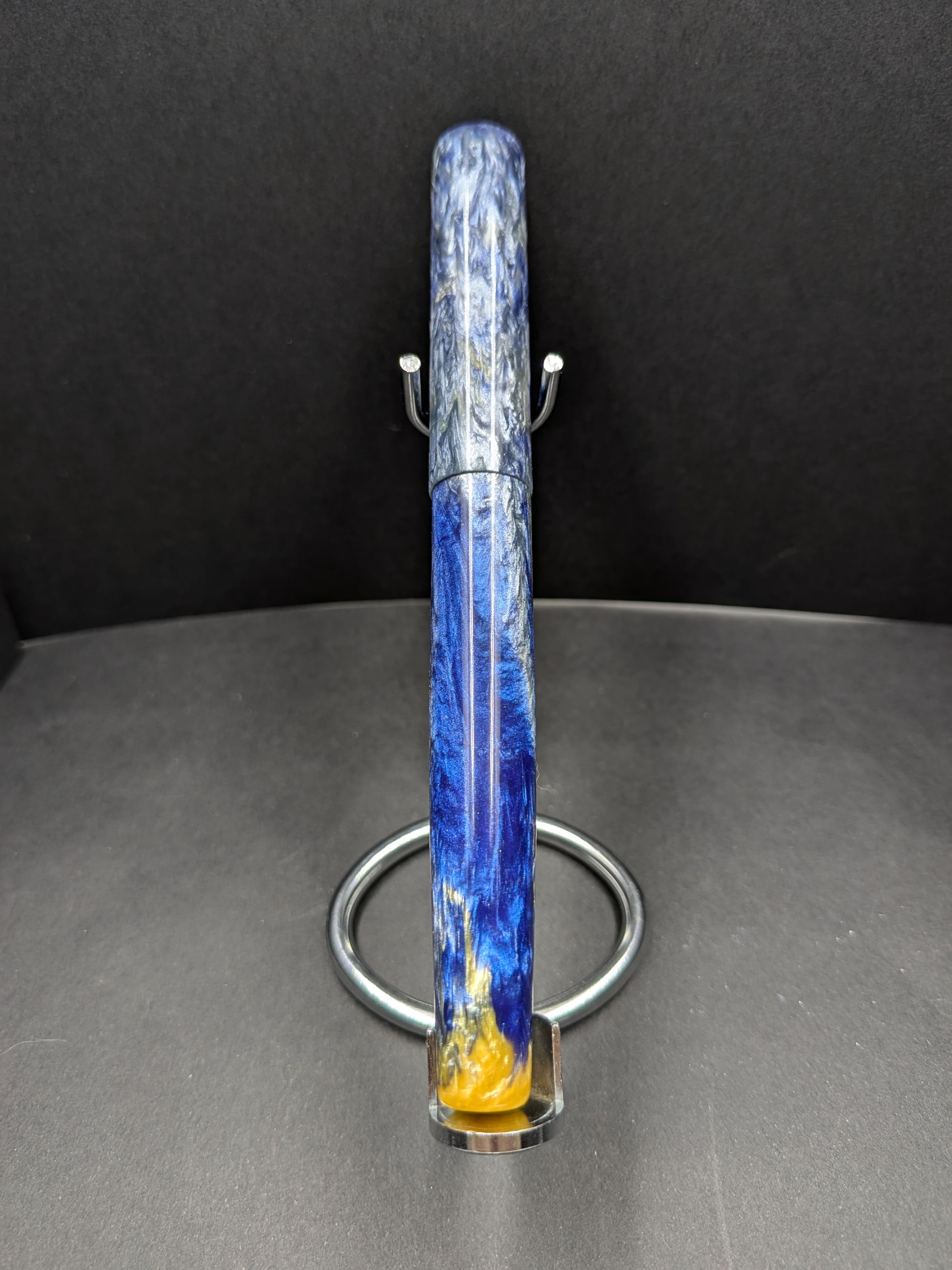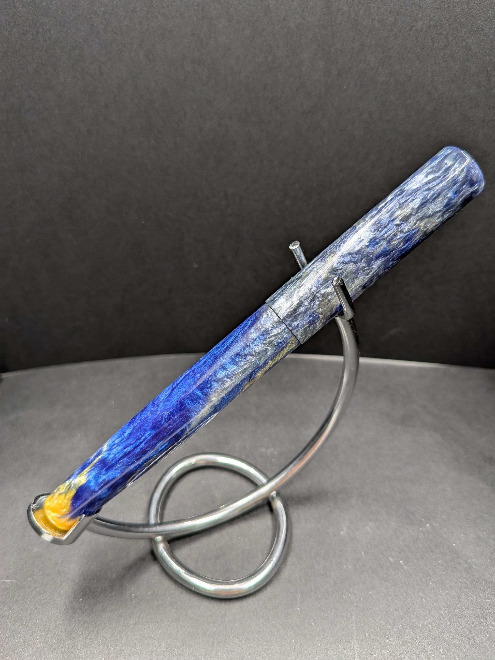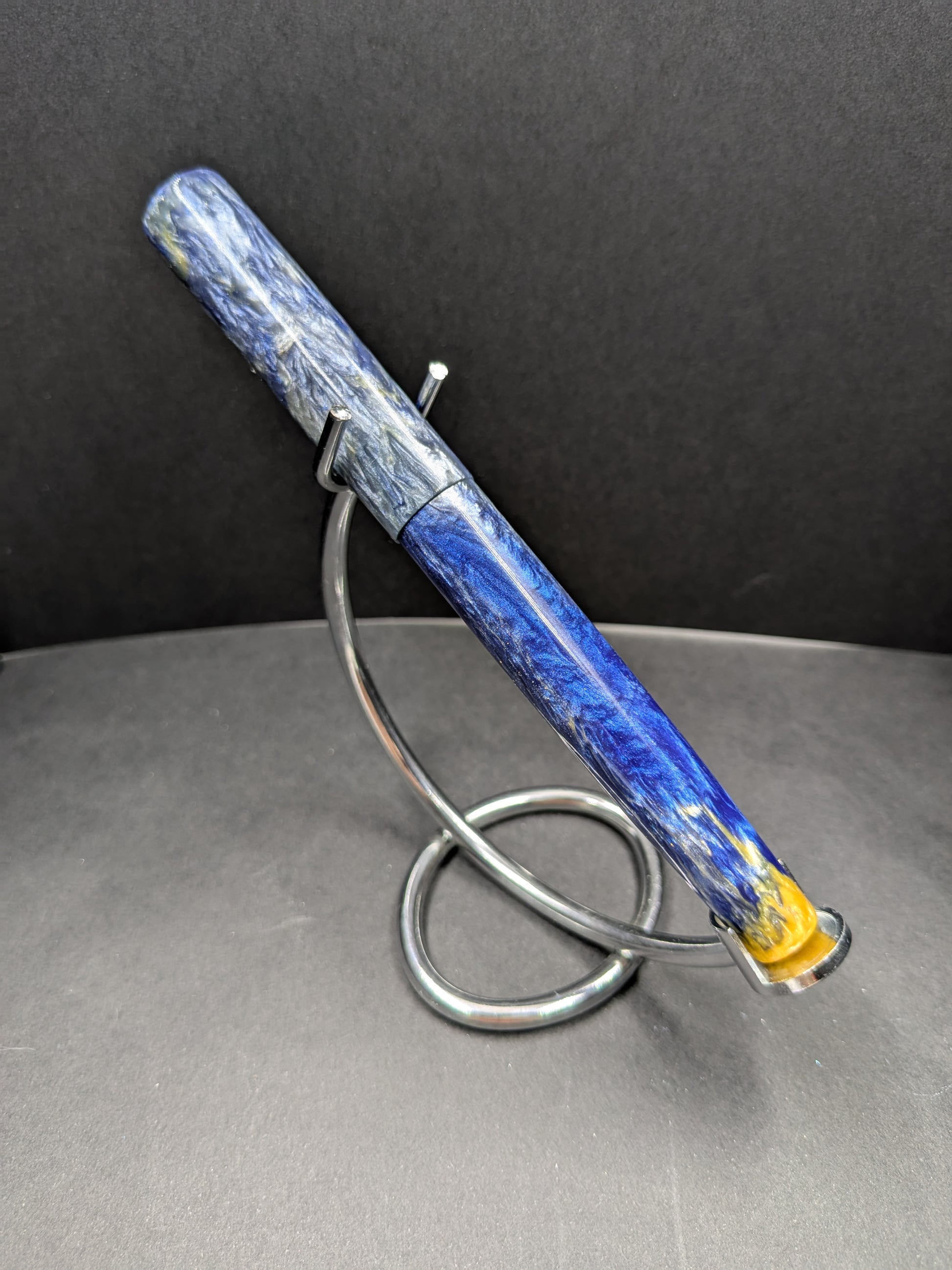The Rowan from our kids resin series brings playful charm with a striking mix of medium blue swirled with white and silver, topped off with a hint of gold at the base. Inspired by the creativity of HPC’s VP of Operations’ son, this pen is as fun to use as it is elegant to behold. The vibrant colors and smooth finish make writing a delightful adventure every time.