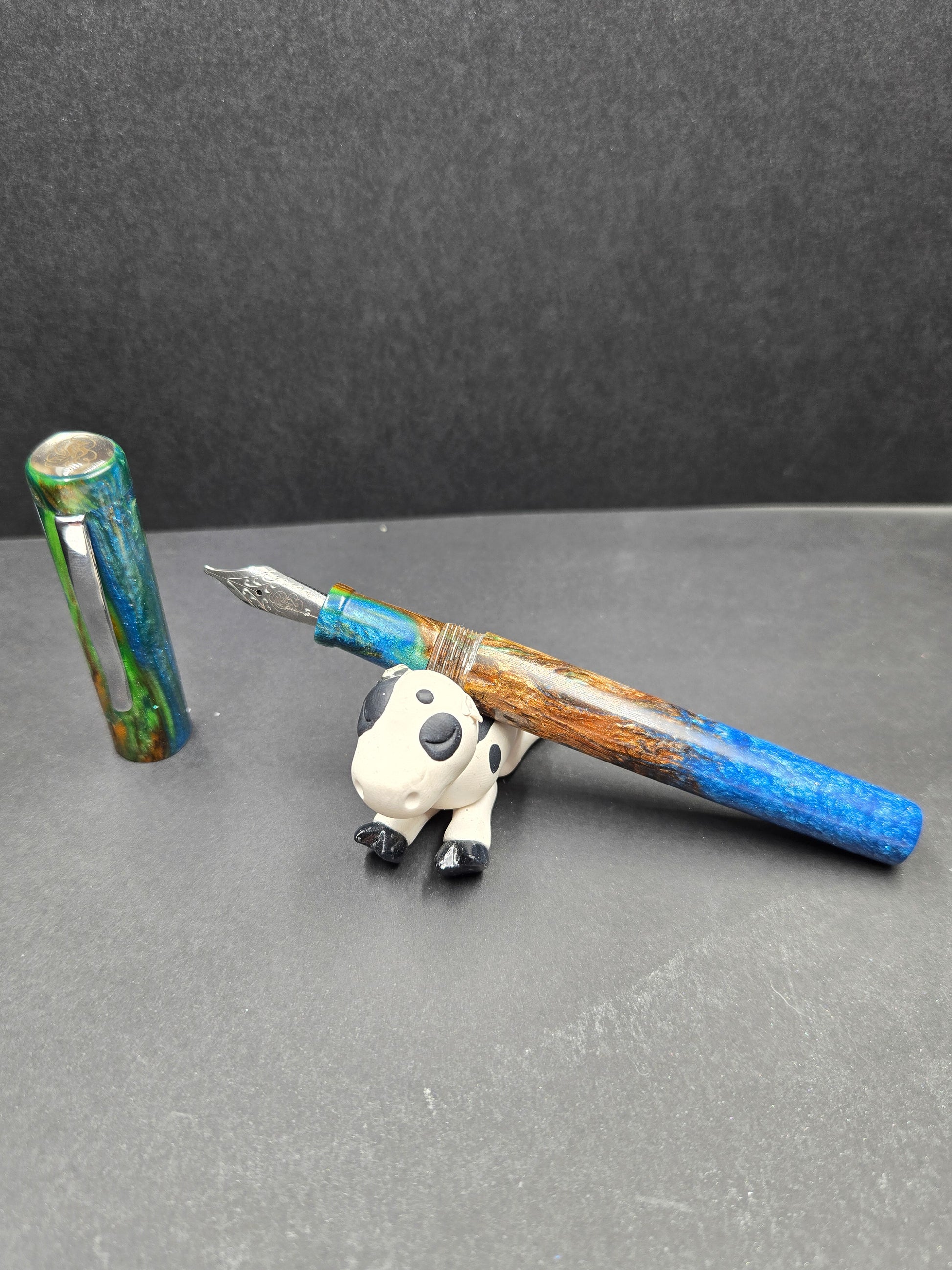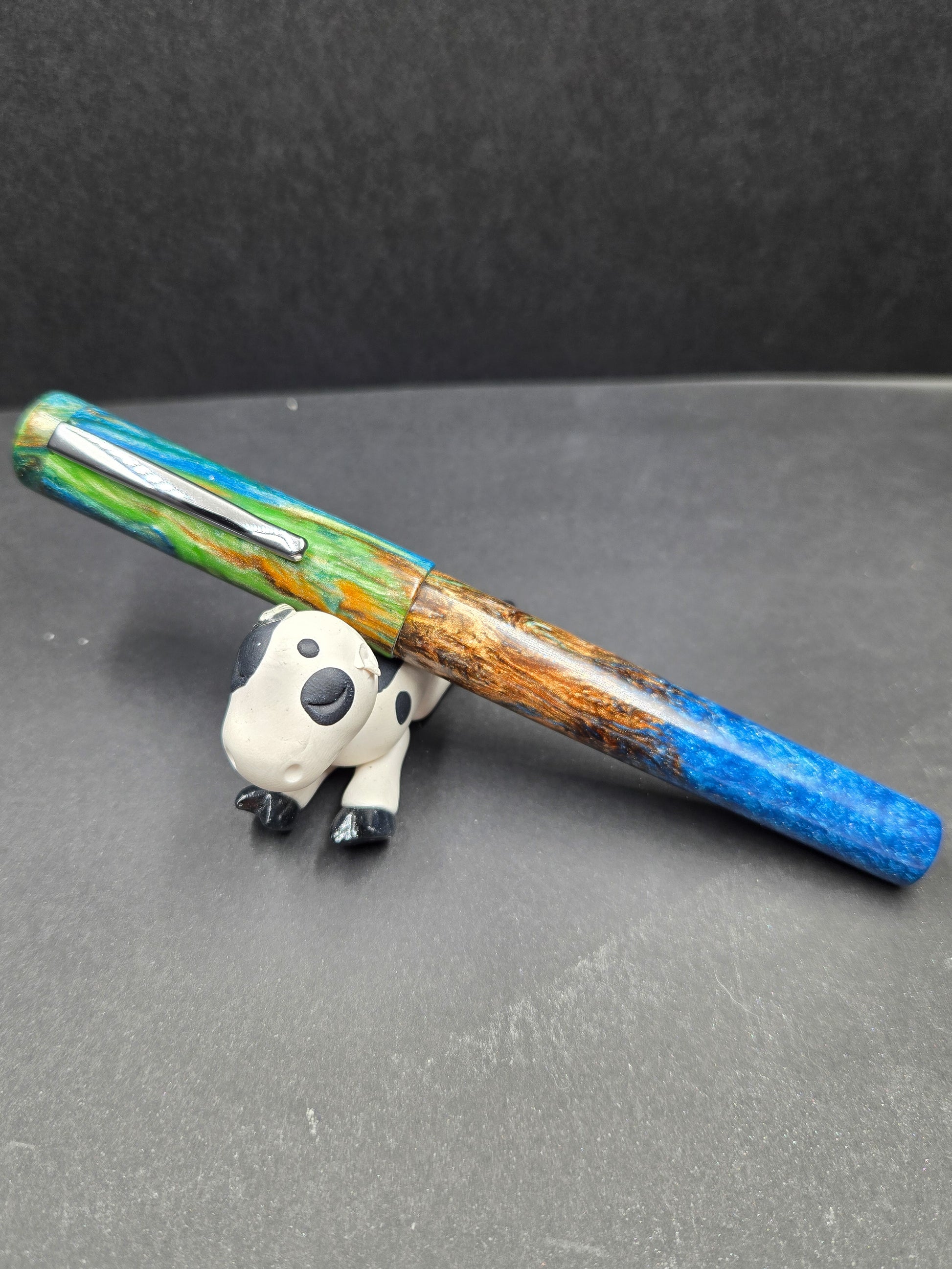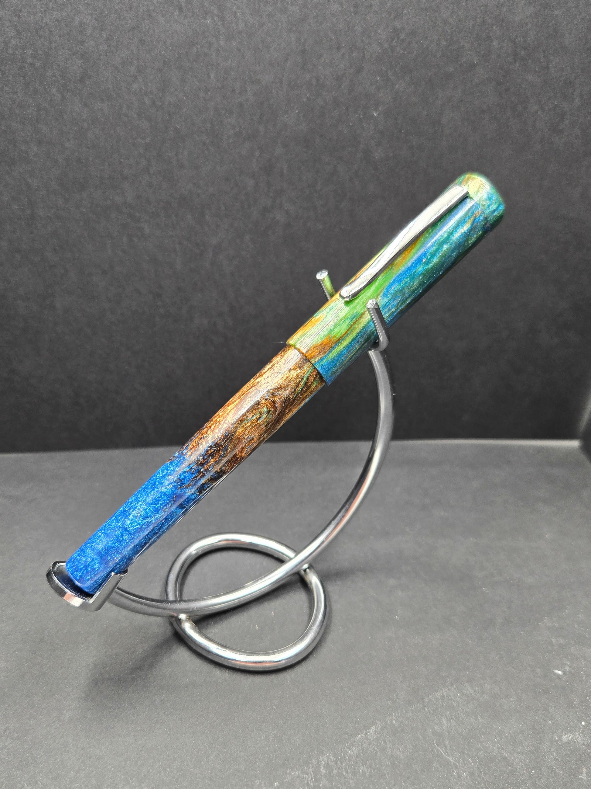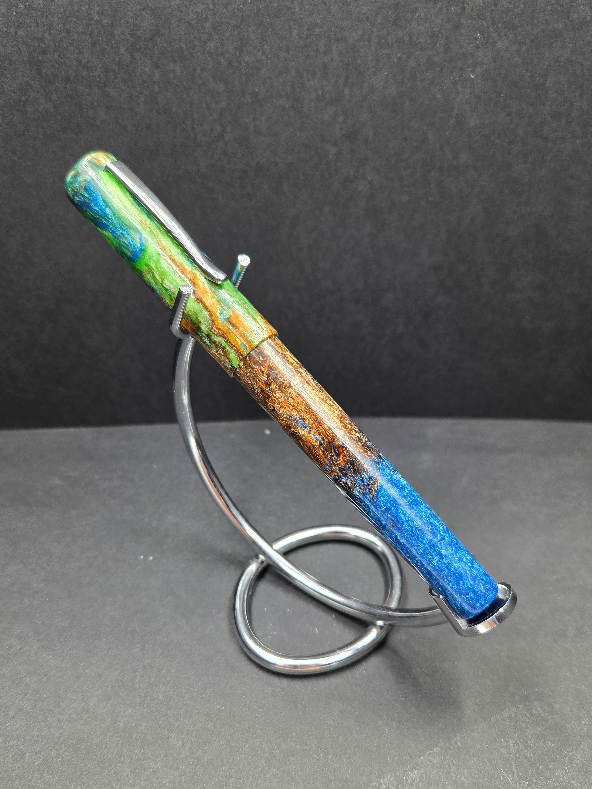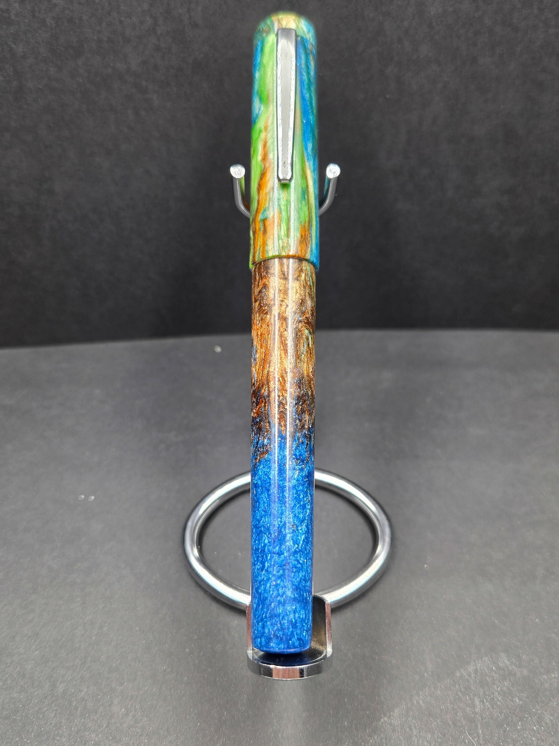 Introducing the B24 – a mesmerizing blank that defies simple description. This unnamed material is an absolute showstopper, blending every hue nature has to offer into one cohesive masterpiece. Picture earthy browns meeting sky blues, grass greens swirling with water tones, and rich soil colors all dancing together in perfect harmony. The photographs simply don't do it justice – you have to see it in person to truly appreciate the depth and complexity of this stunning palette. Whether you're crafting a pen that tells a story of the natural world or seeking a blank with genuine character, the B24 delivers visual intrigue that'll make your creations stand out. This is the kind of material that makes pen turners excited to get to work. Once we nail down the official name, we'll update you – but trust us, this one's worth the wait.