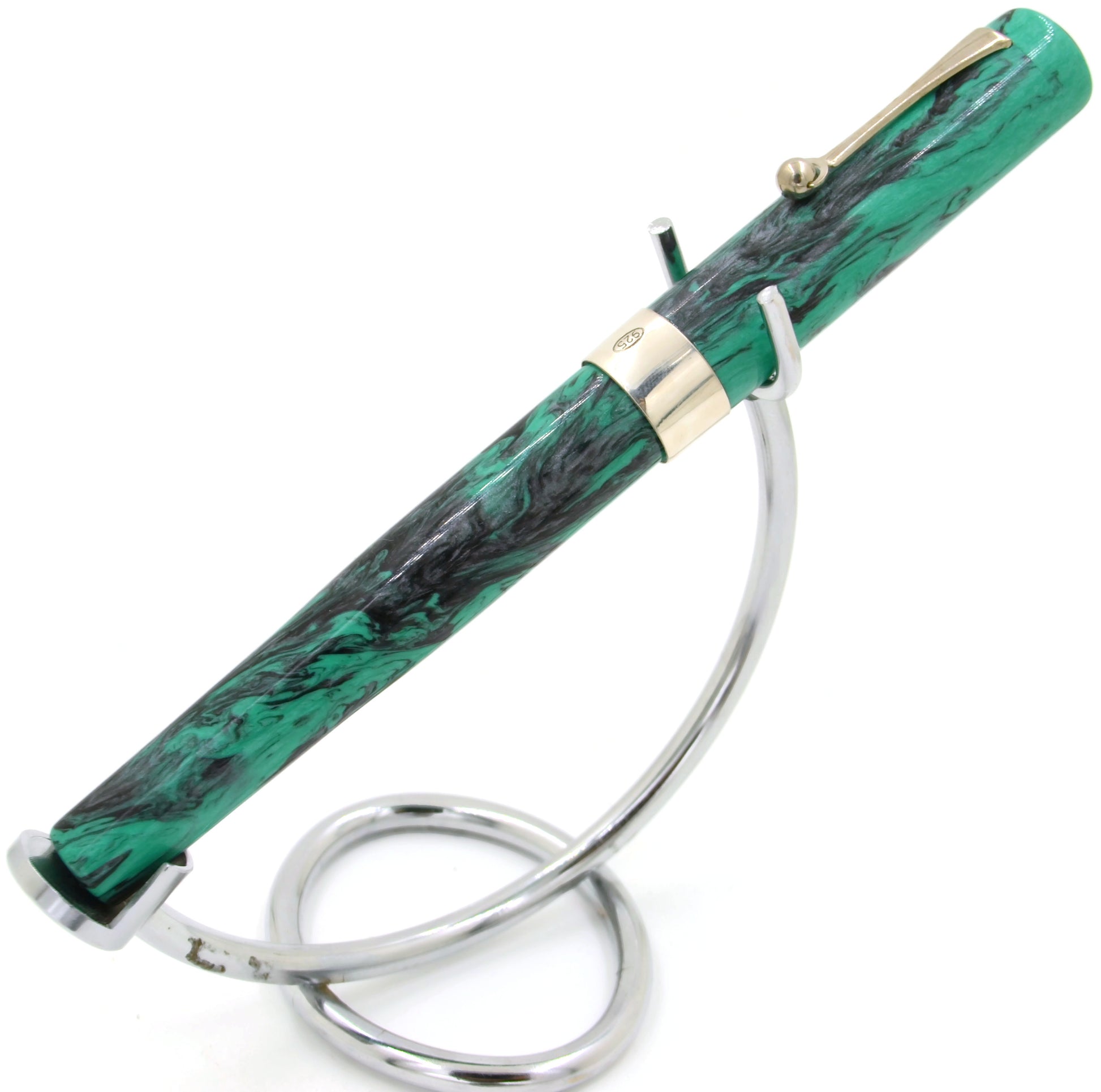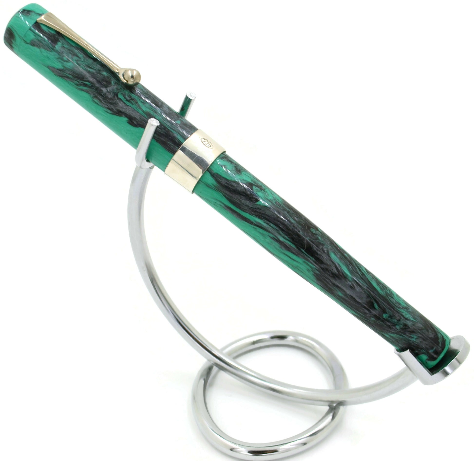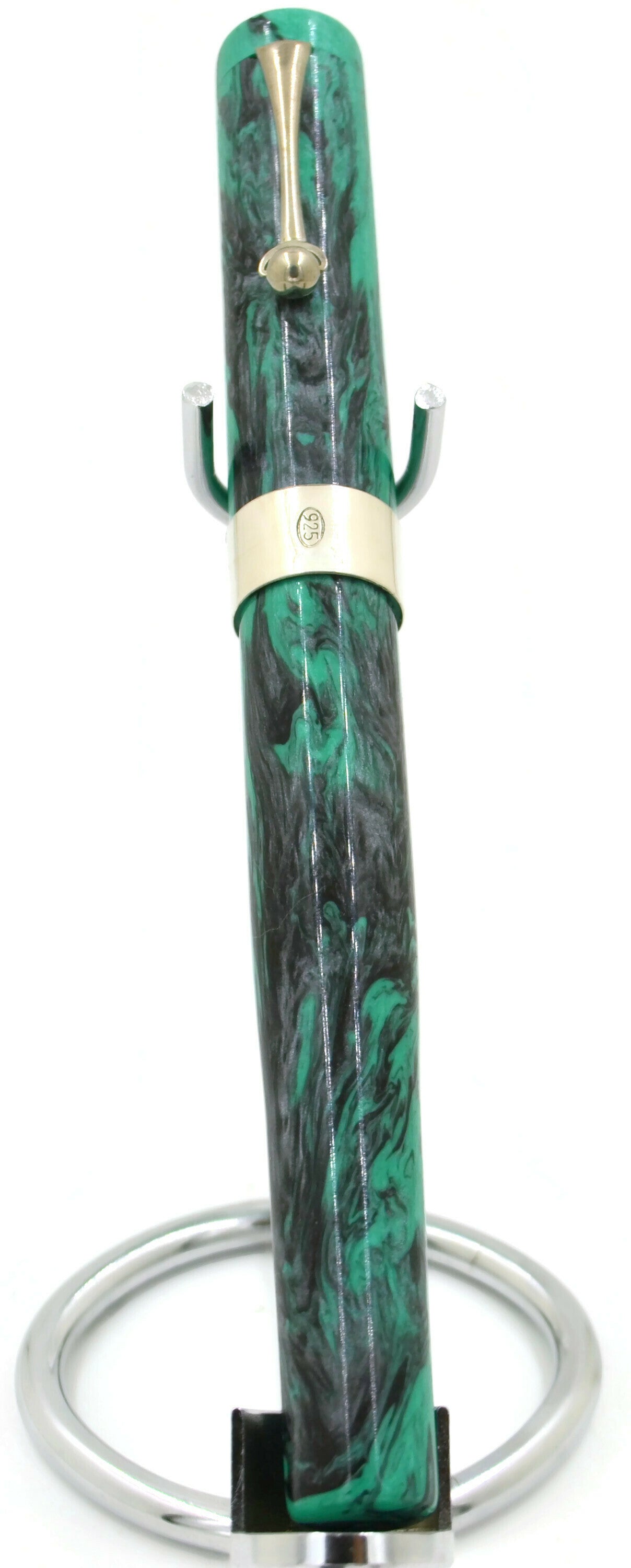 As shown, the pearlescent teal is the first to grab your attention., then bold swirls of antique silver inspire a feeling of nostalgia and gives it a retro appearance. Made from an incredibly strong and durable epoxy, it will resist scratches and will survive falls and a bit of clumsiness (trust me, my klutz self has tested it thoroughly). There is a wide variety of nib offerings.