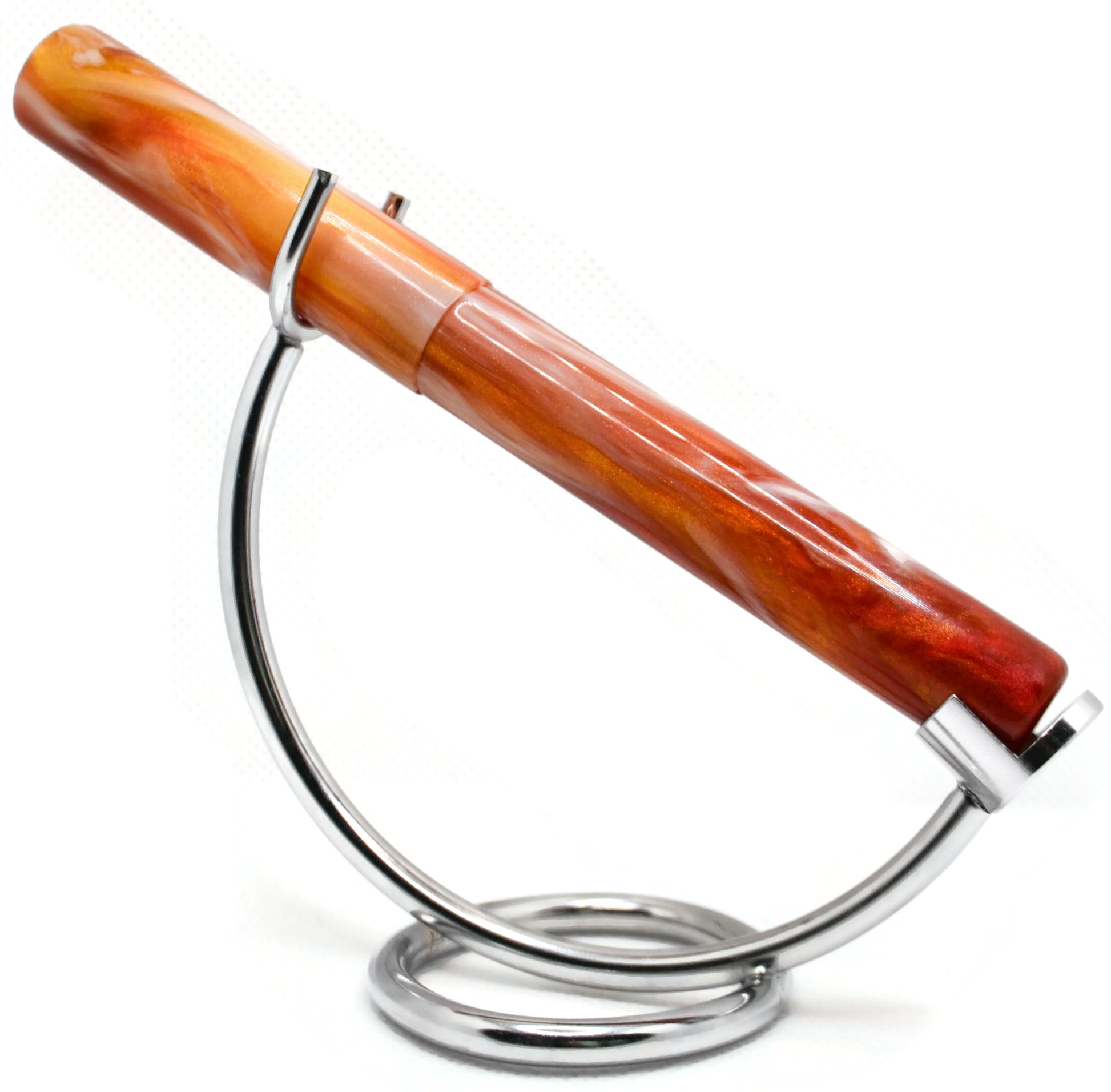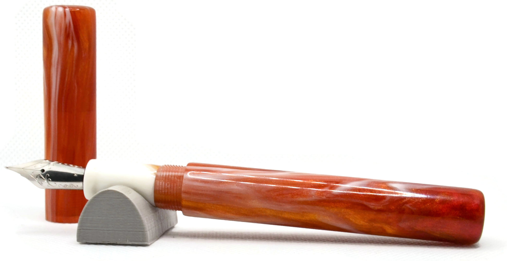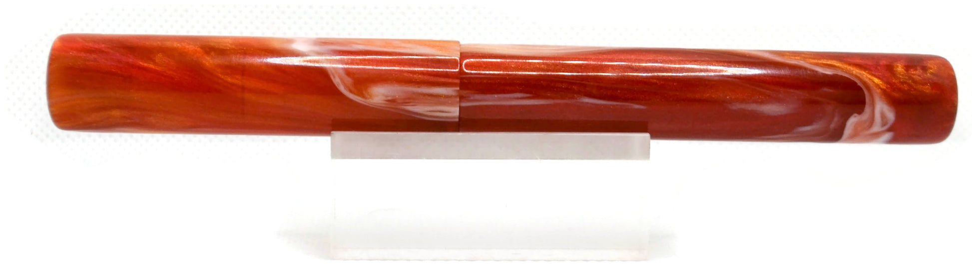 From the depths of my old blank collection comes this one-off blank from an unknown artist. Browns and deep orange swirl and brought to a brilliant shine. A plain white section offsets the colors in the material.