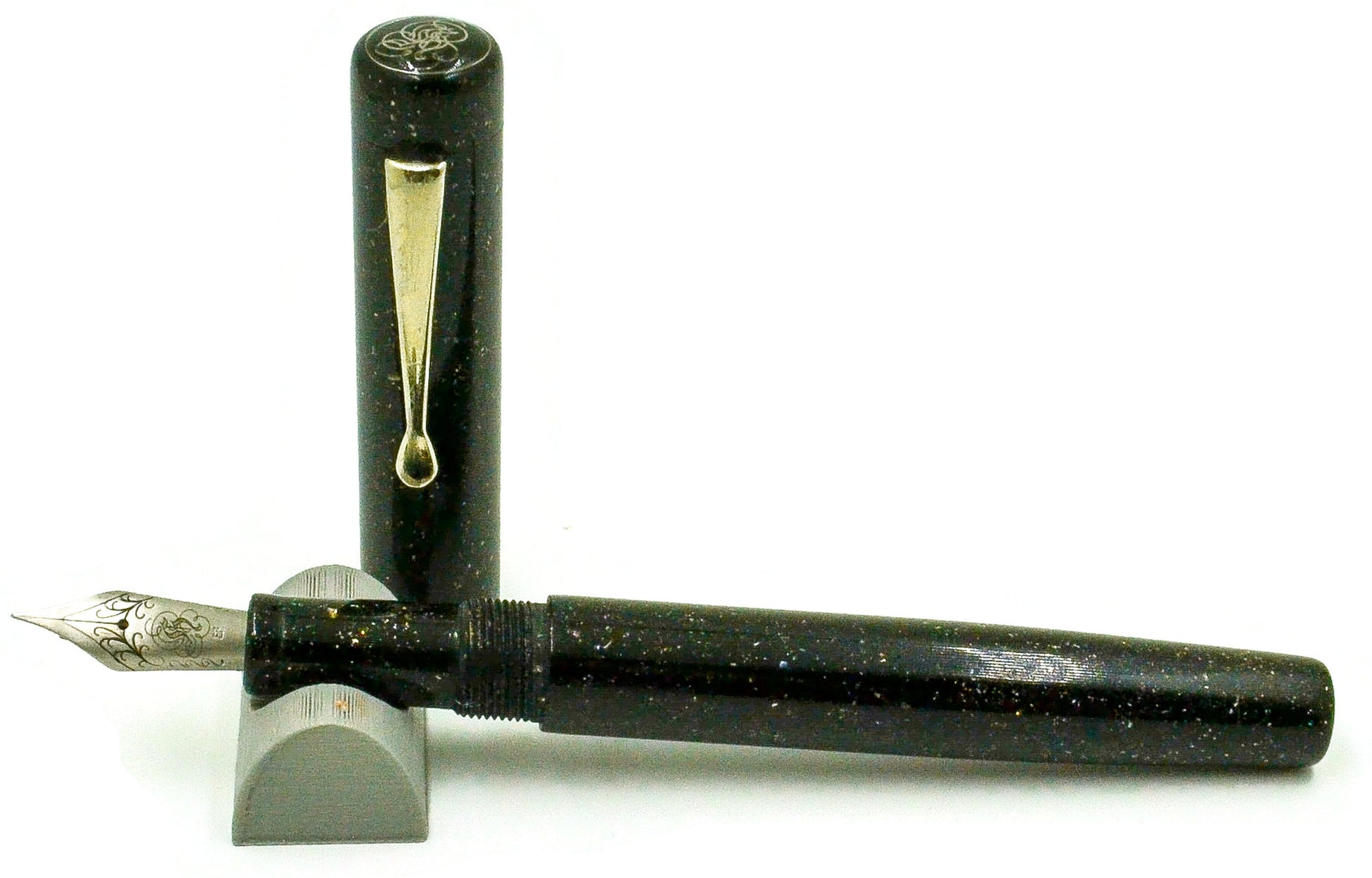 Simple black pen with a hint of radiance sparkle.. makes it look like outer space (little pinpoints of light (stars). Is a nice, elegant pen.