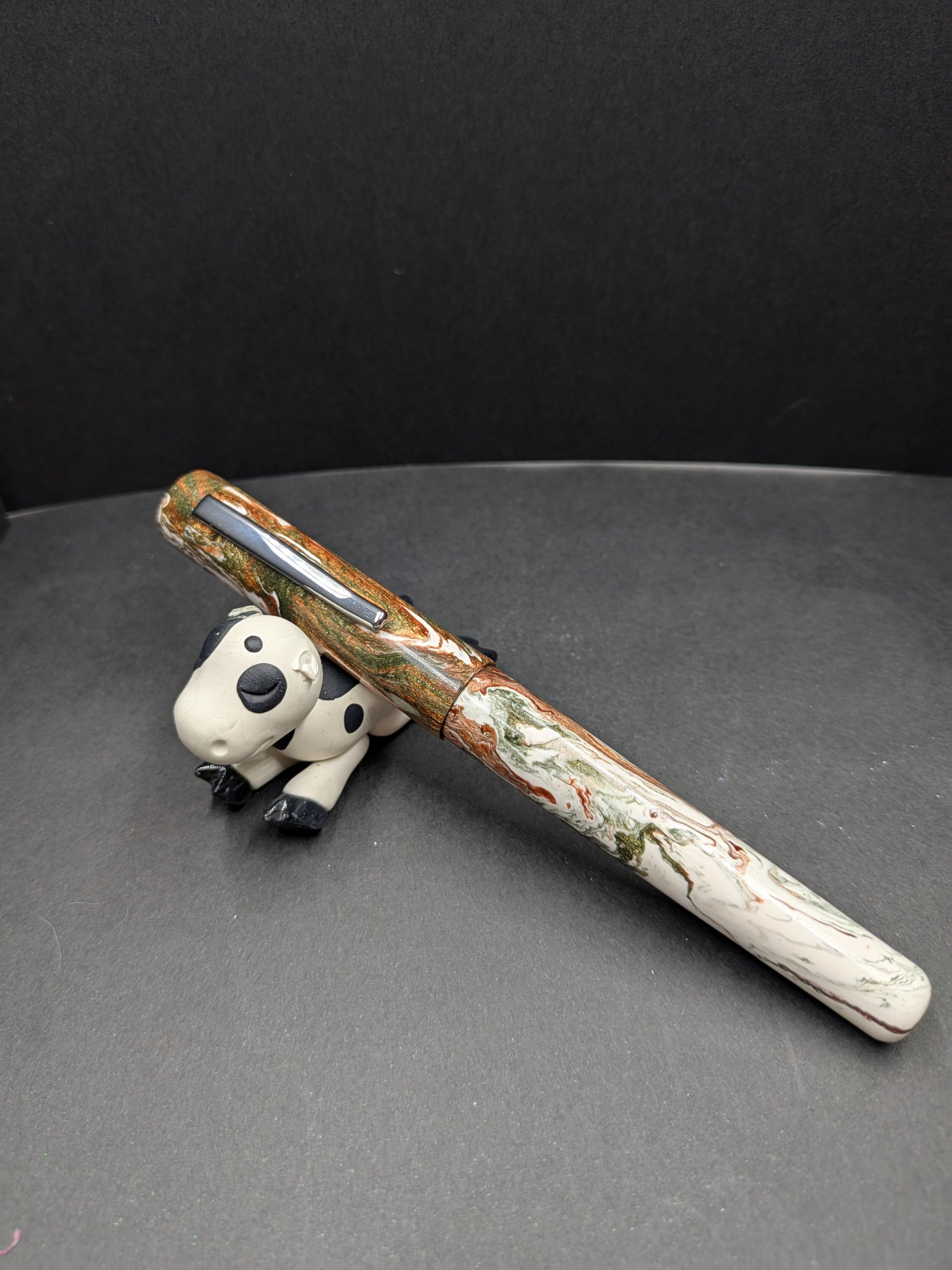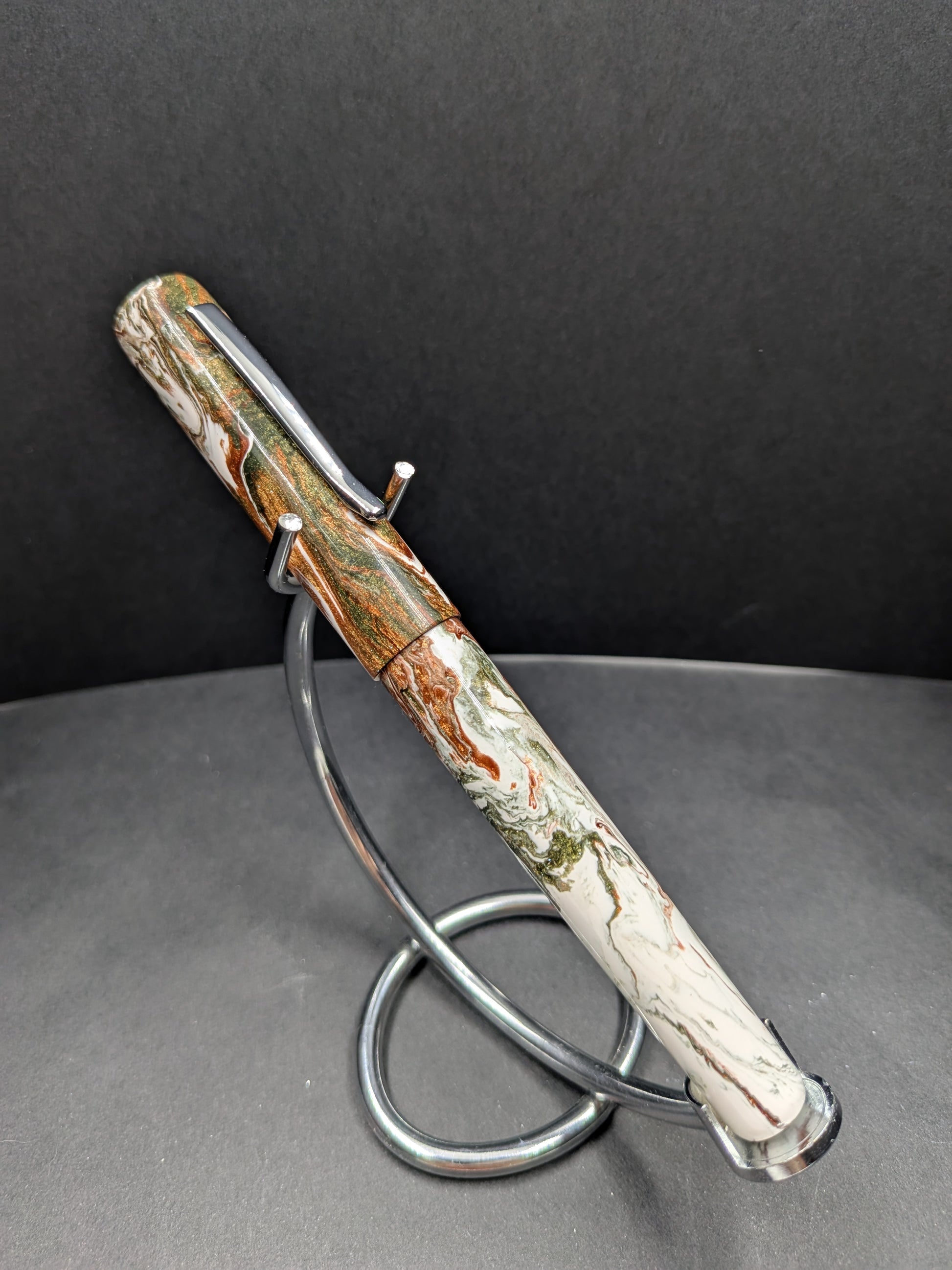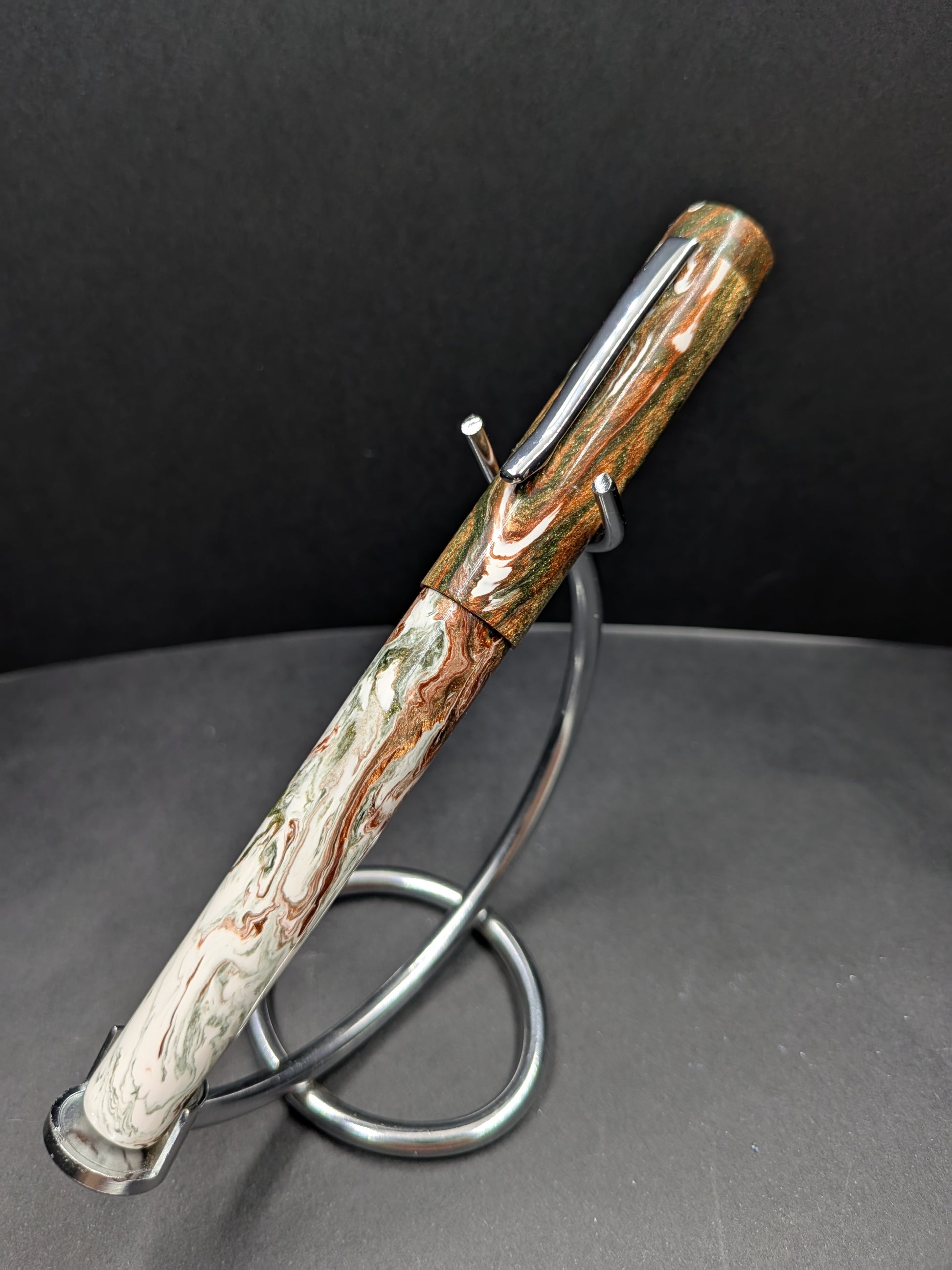 The 3 Olive Martini pen is a vibrant and playful tribute to the classic dirty martini, featuring a custom color blend specially created for Hinze by Kristin. Its striking mix of hues captures the fun and flair of the cocktail, making every writing experience an absolute joy. The dynamic swirls and rich tones bring a touch of sophistication and whimsy, turning your everyday notes into a celebration. Perfect for anyone who loves to add a splash of personality and style to their writing tools, this pen promises to keep your creativity flowing with a wink and a smile.
