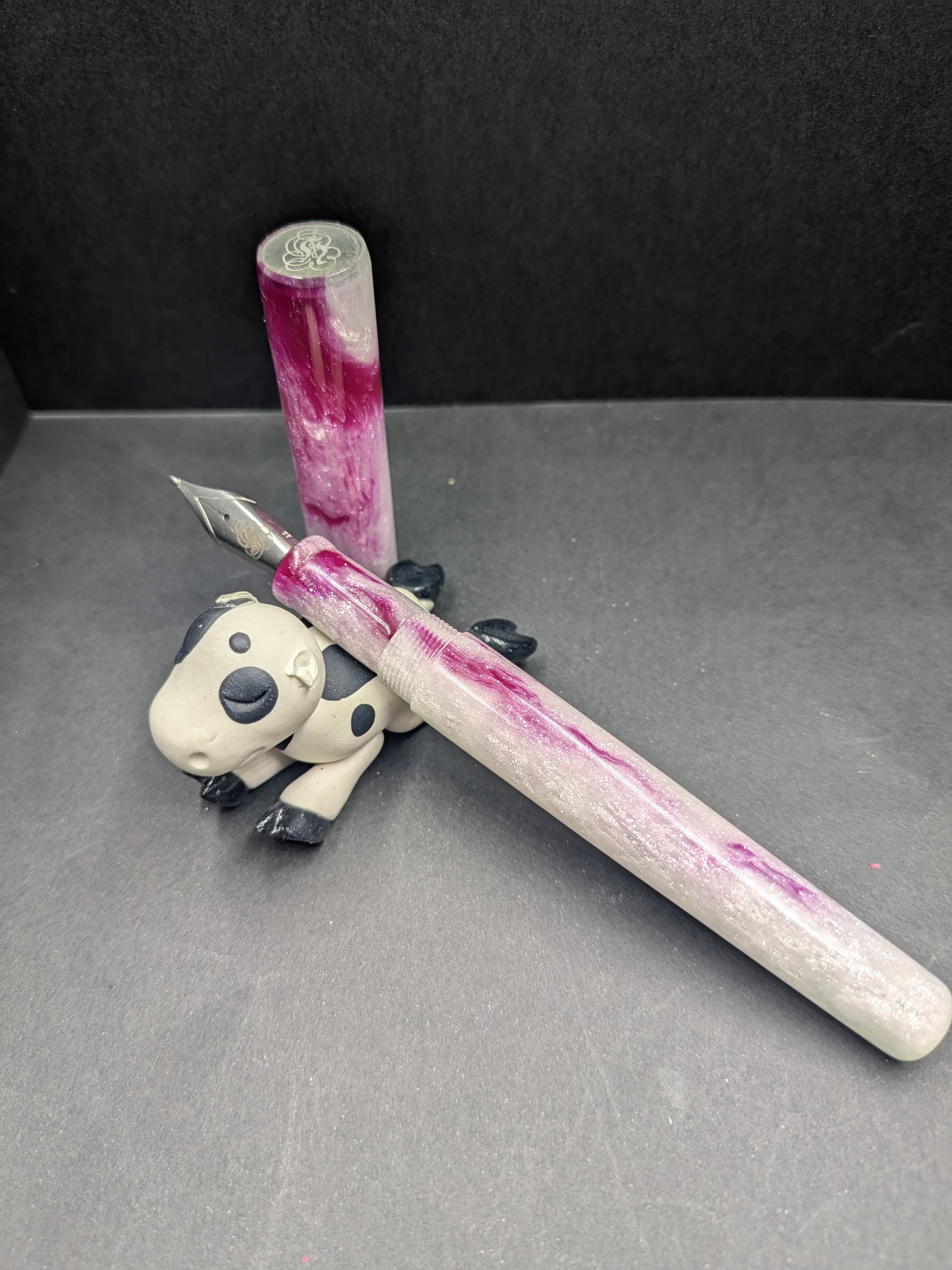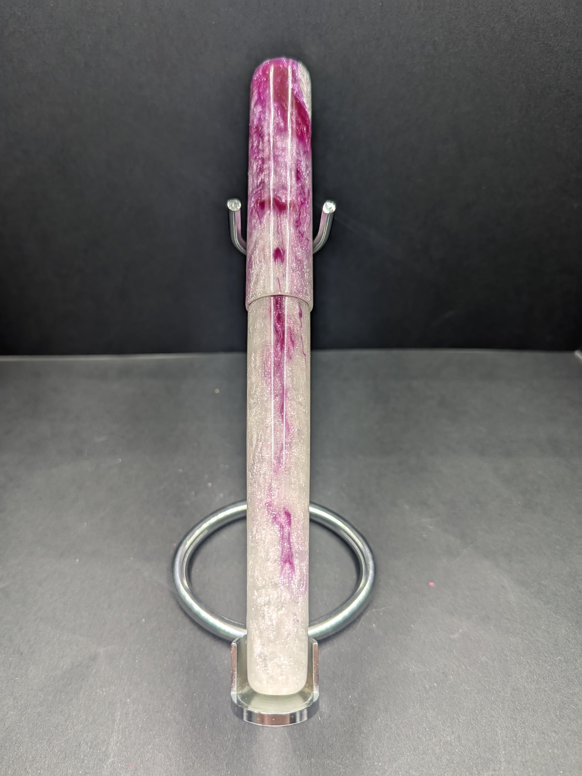 Crafted from dazzling Starry Night resin, this Raspberry Cheesecake pen is a feast for the eyes and a joy to hold. Its stunning swirls of color mimic the rich, creamy layers of your favorite dessert, making every glance a sweet escape. Designed for comfort and balance, it glides effortlessly across the page, turning writing into a delightful experience. The sleek, no-clip design adds a smooth, modern touch that slips easily into your hand or pocket. Brighten your day and your desk with this playful, deliciously inspired pen!