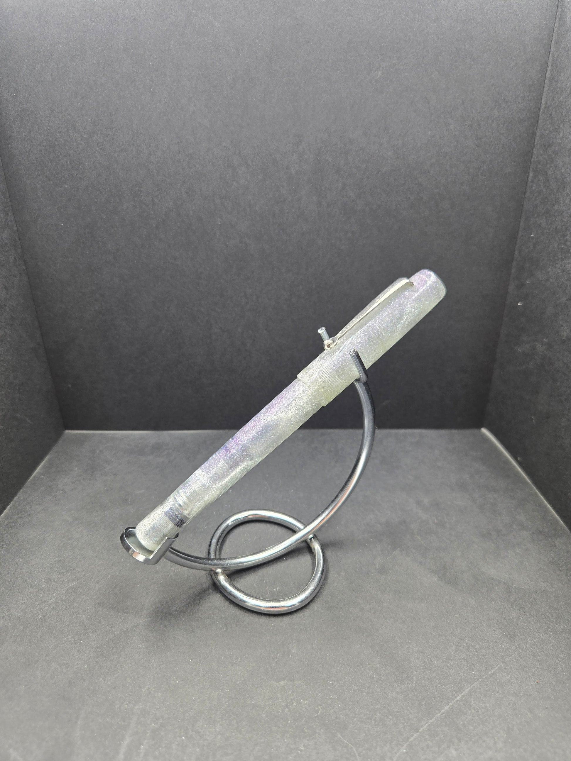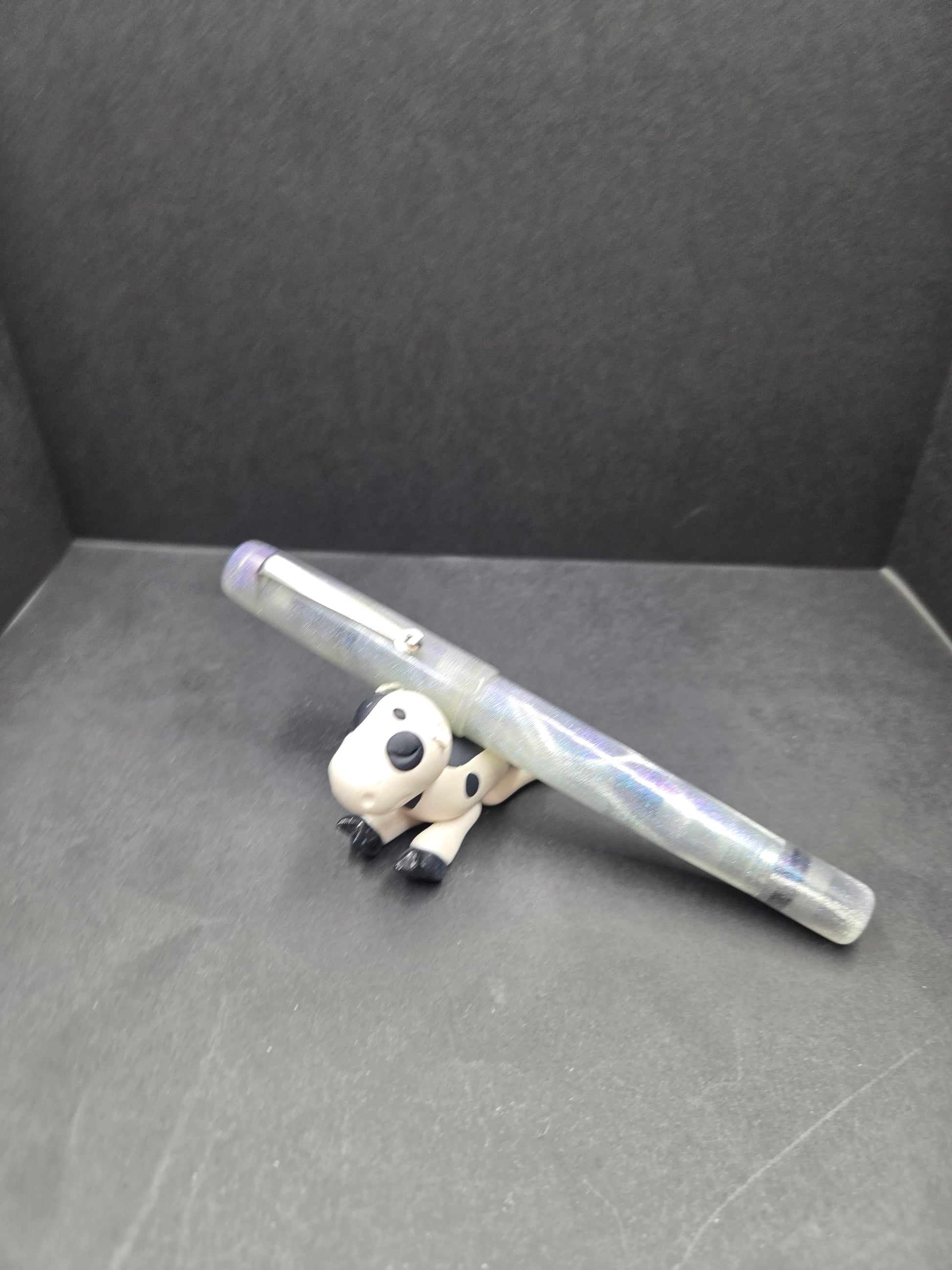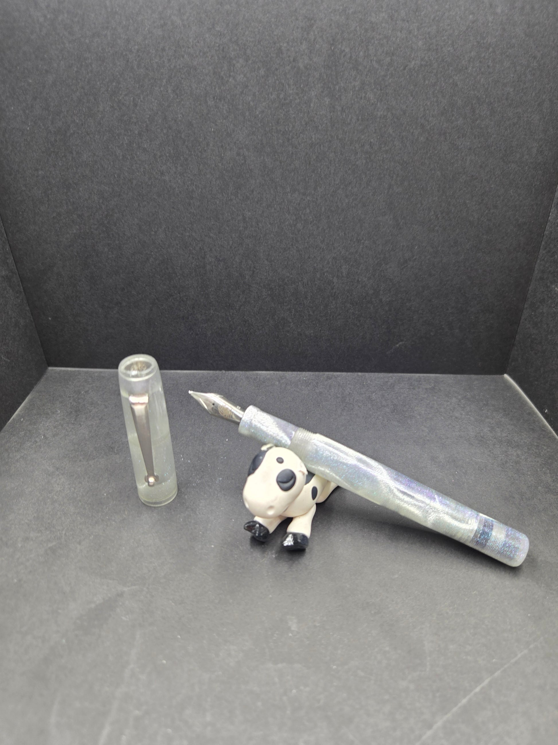 The F24 Pourly Controlled Kolbenfüller combines playful charm with refined craftsmanship. Its translucent body showcases a unique resin core that shimmers with subtle hints of lavender and lime, bringing a fresh and lively vibe to your writing tools. Equipped with a piston filler, this pen offers smooth, precise ink flow, ensuring every stroke feels effortless and enjoyable. Whether you're jotting down notes or signing important documents, this elegant pen adds a splash of color and personality to your desk. Ideal for those who appreciate both style and function in their everyday writing experience.