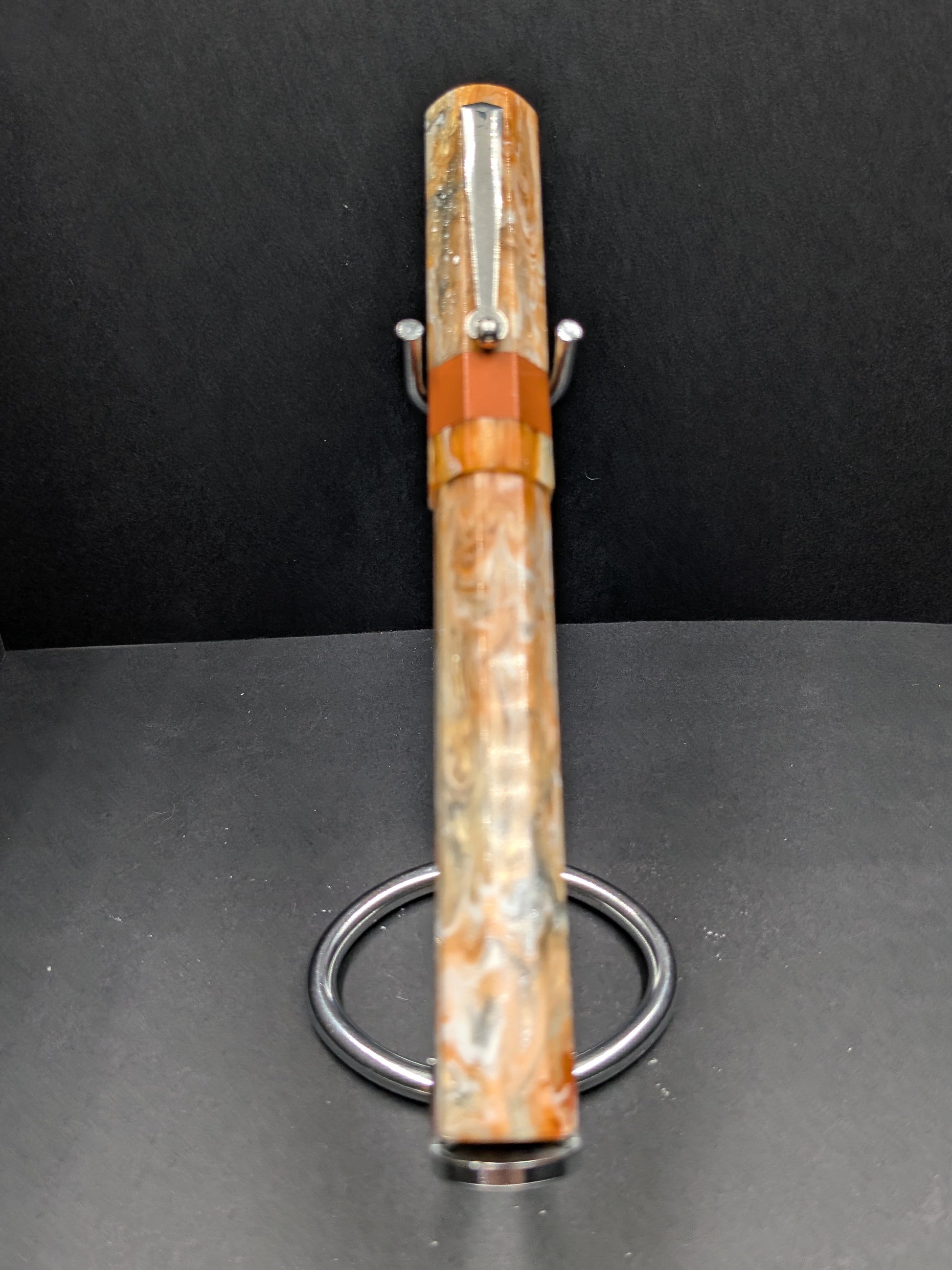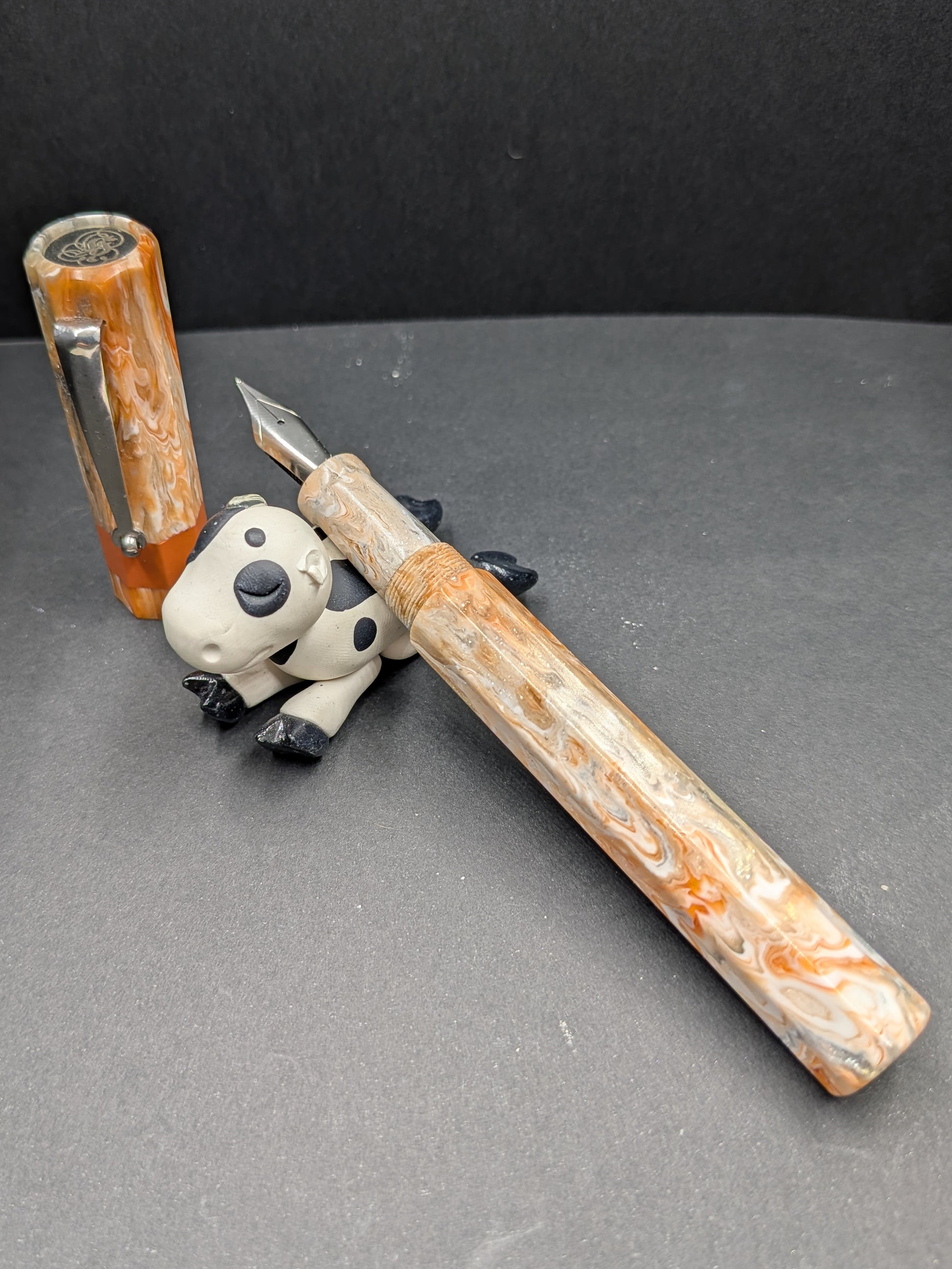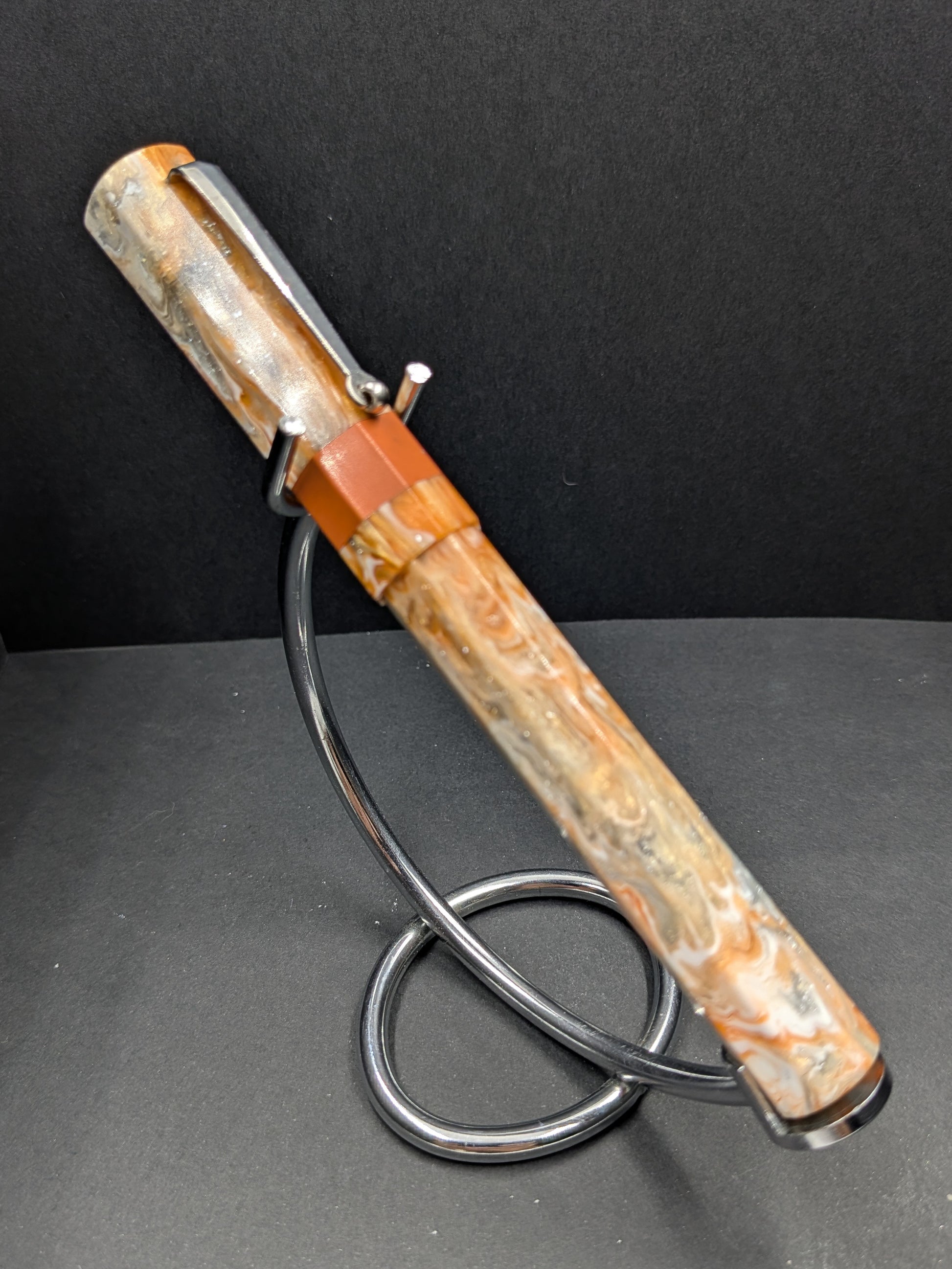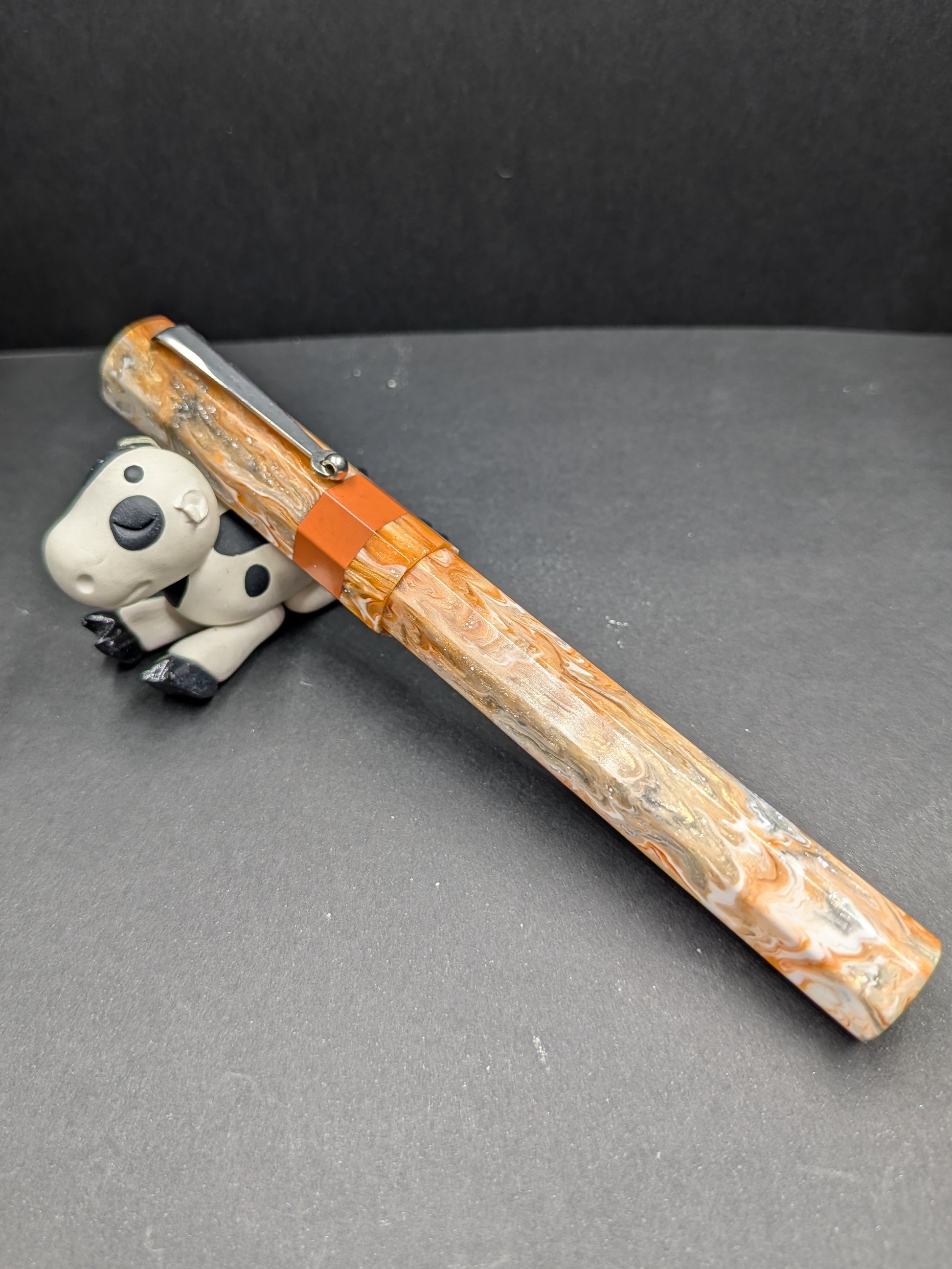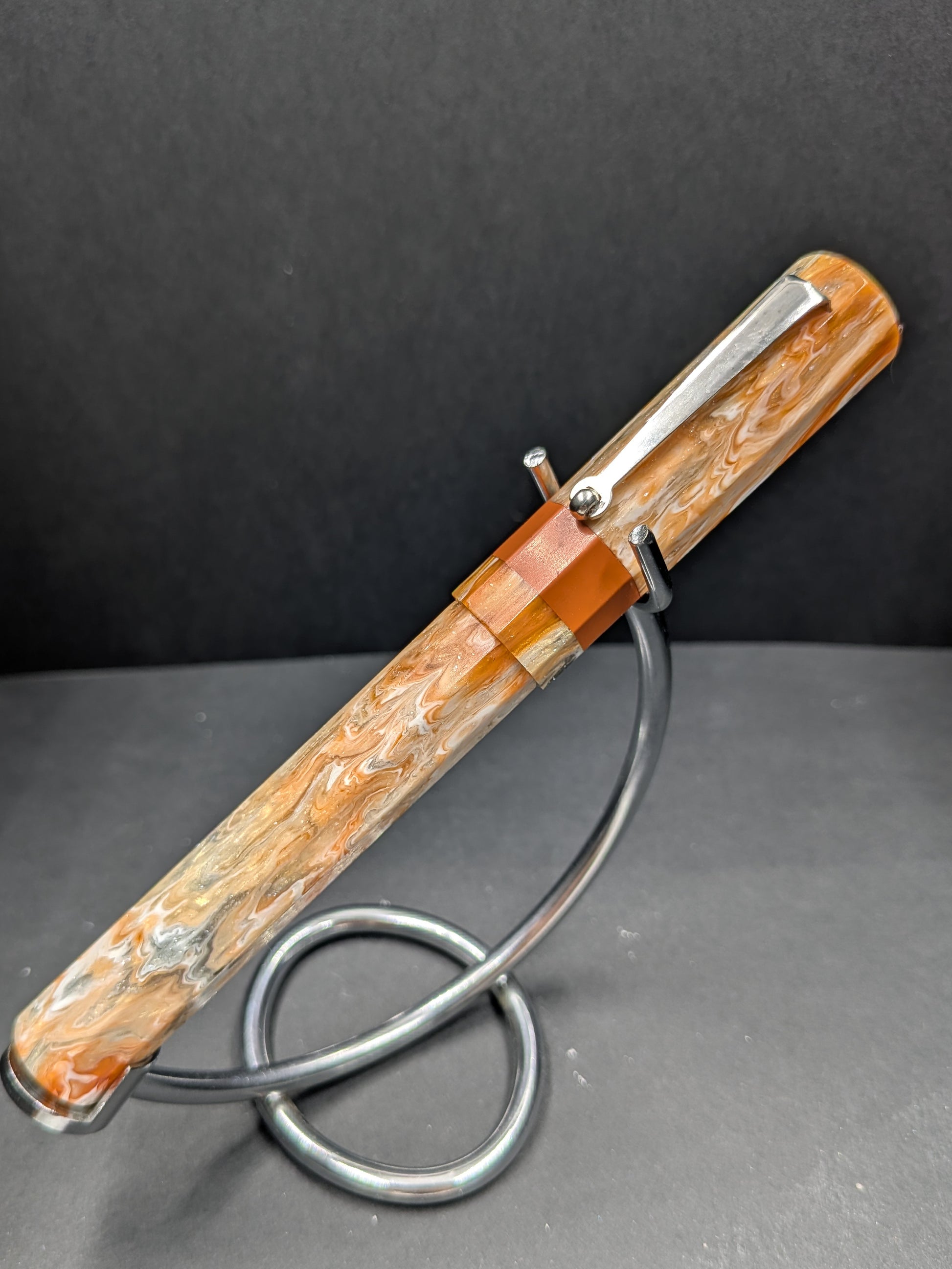 Sleipnir gallops into your collection straight from Norse legend, now blazing in our fiery Lava Flow resin! Watch orange, white, and silver swirl together in a hypnotic dance that makes this octagonal beauty look like it just emerged from a volcano. Every single pen is a one-of-a-kind work of art—no duplicates, no exceptions. The eight-sided barrel fits your hand like a glove, keeping fatigue at bay during those epic writing sessions. Glide smoothly across the page whether you're journaling your thoughts, sketching masterpieces, or signing documents with confidence. Ideal for mythology buffs, serious pen collectors, and rebels who refuse to carry boring stationery. This pen doesn't just write—it tells a story. Channel your inner warrior and make every word count with Sleipnir's legendary charm!