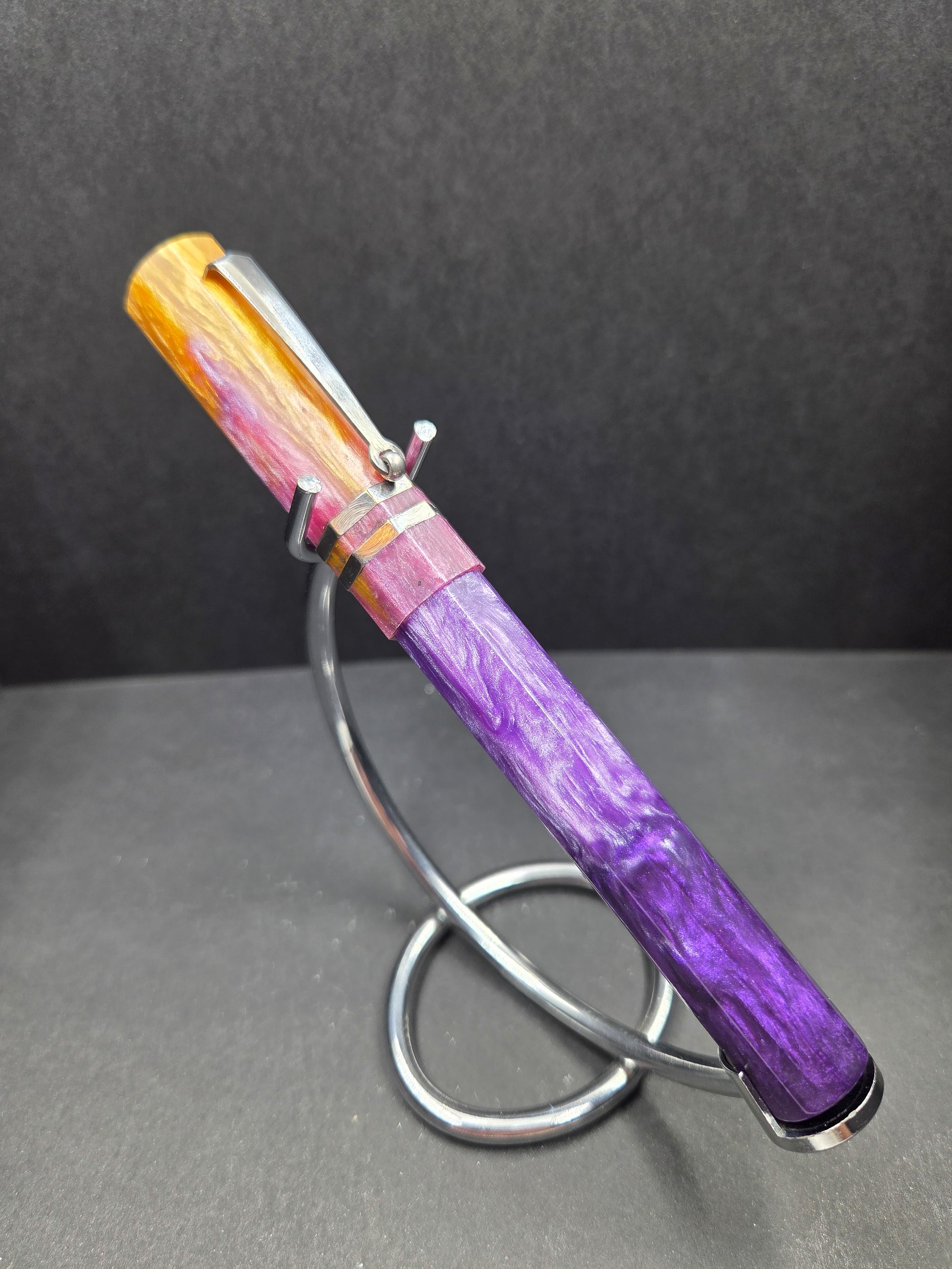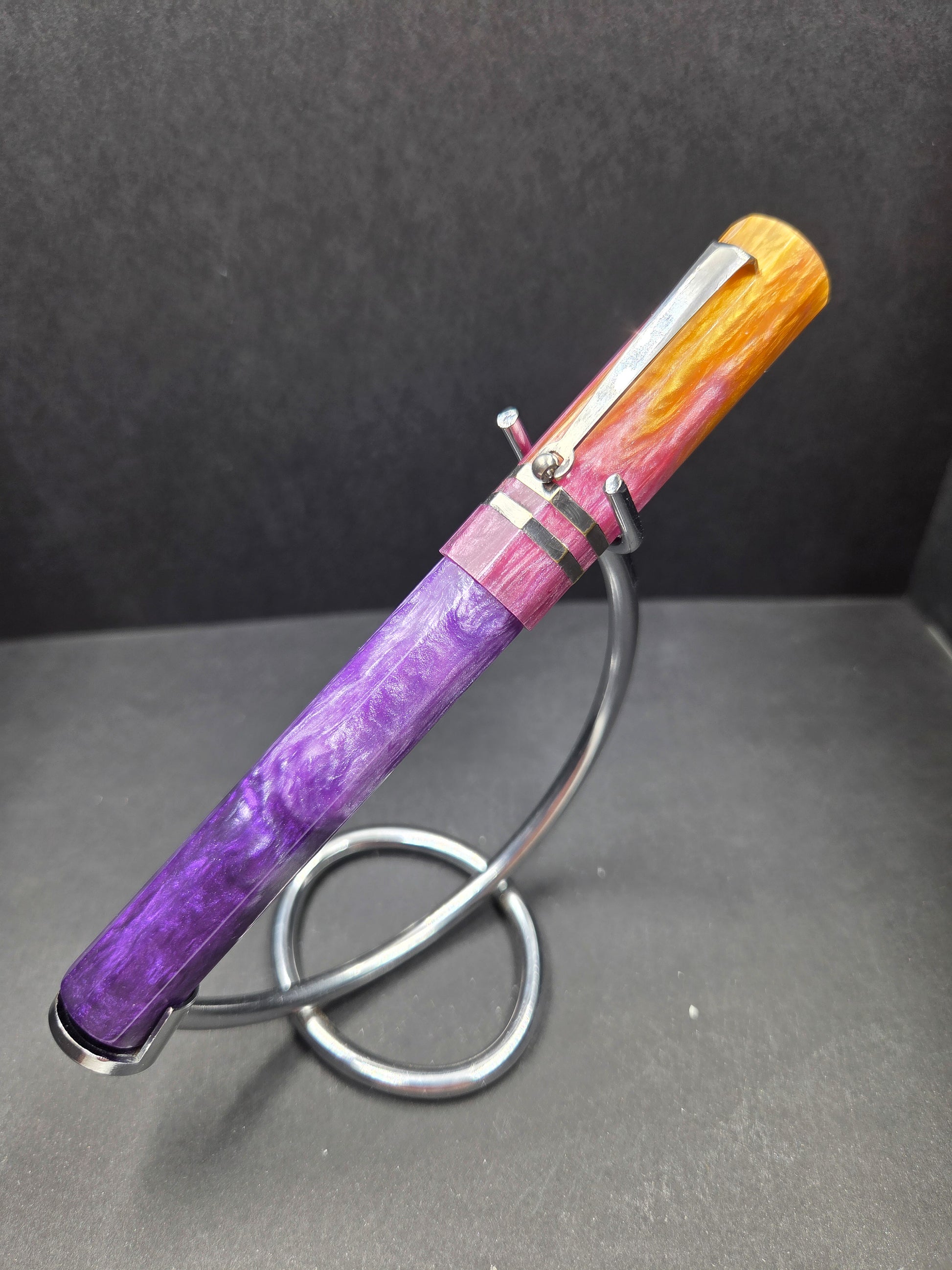 Meet Sleipnir, the eight-legged steed of Norse mythology—now galloping onto your desk as a stunning pen prototype. Crafted from Starry Night Resins' captivating Arabian Nights resin, this beauty features matching rhodium accents that frame the mesmerizing swirls without competing for attention. The result? Pure elegance with a touch of mythic charm. What makes this prototype truly special is its journey. Born from genuine collector feedback, Sleipnir represents the collaborative spirit that drives pen artistry forward. The dual rhodium bands create a cohesive, refined aesthetic that lets the legendary Arabian Nights blend take center stage—swirling with depth and character that shifts with every angle. Whether you're a Norse mythology enthusiast, a resin pen collector, or simply someone who appreciates craftsmanship, this is a pen that tells a story. One of only two prototypes released, it's nearly perfect and proof that sometimes the best creations come from listening to your community.