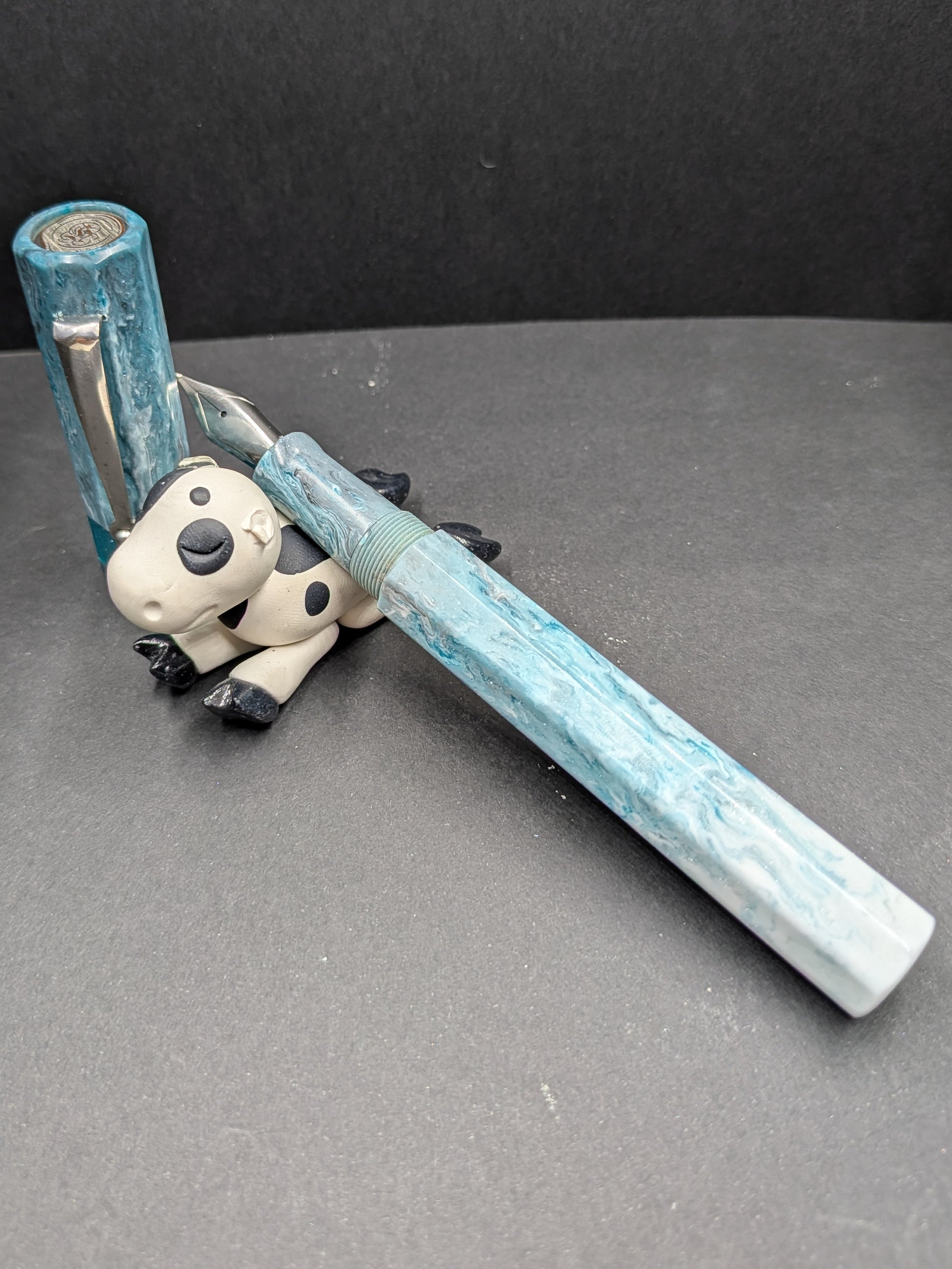Meet Sleipnir, named after Odin's mythical eight-legged steed—now available in our stunning Head over Teal resin! This octagonal wonder swirls with mesmerizing teal, white, and silver hues that capture an enchanting, timeless aesthetic. No two pens are alike, making each one a unique treasure for your collection. The thoughtfully crafted octagonal grip nestles perfectly in your palm, banishing hand fatigue during those marathon writing marathons. Smooth ink flow and reliable performance make it your go-to for journaling, sketching, or signing with flair. Perfect for Norse mythology enthusiasts, devoted pen collectors, and anyone tired of settling for mundane writing tools. This isn't just a pen—it's a conversation starter that transforms ordinary writing into something truly magical. Embrace your inner Viking and upgrade your stationery game!