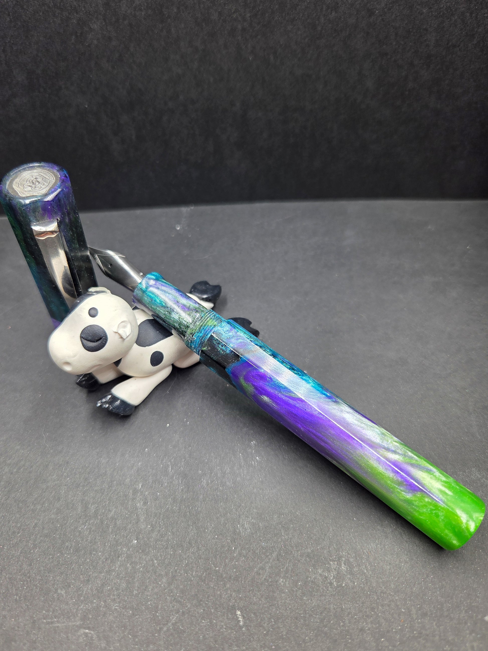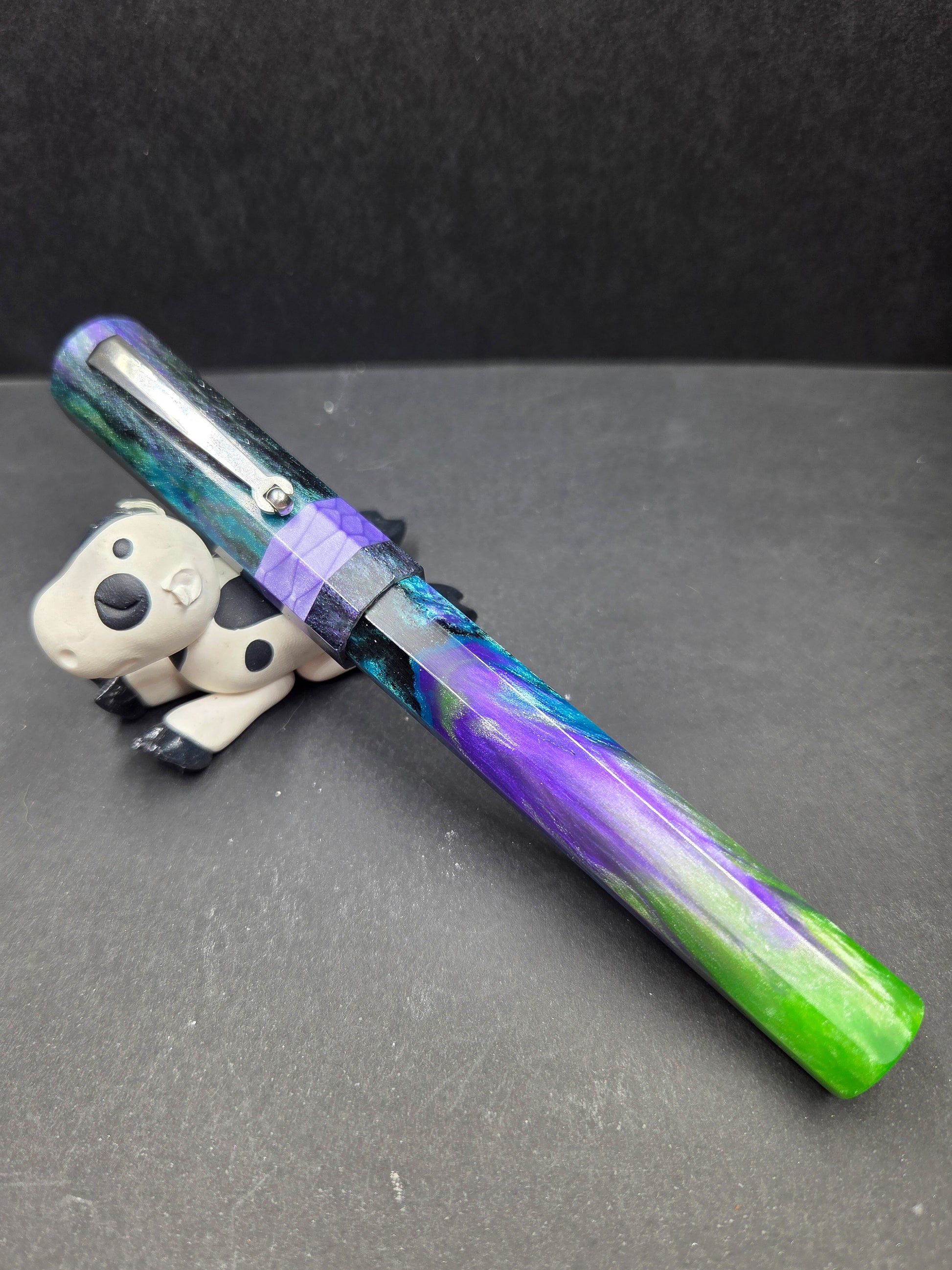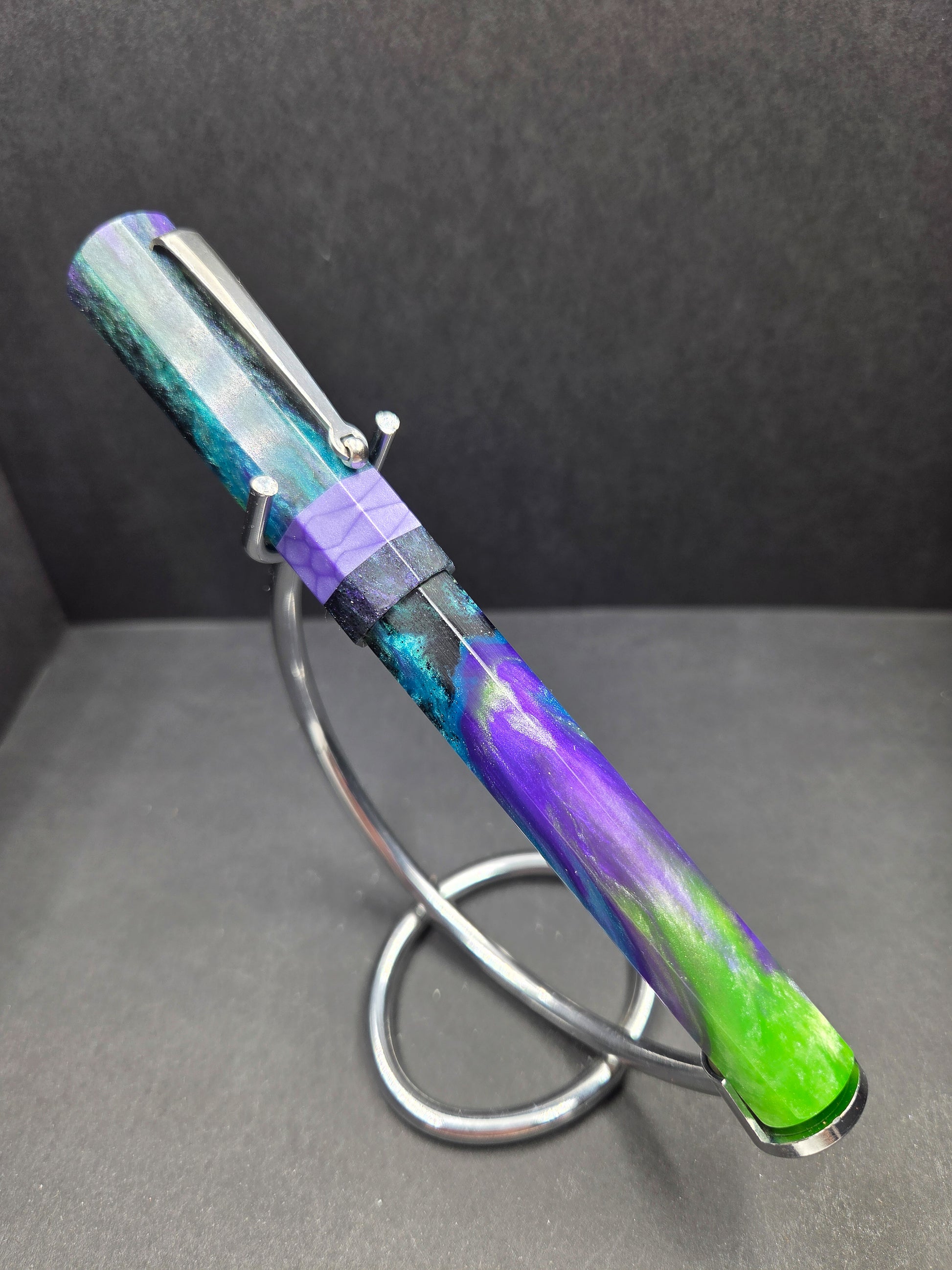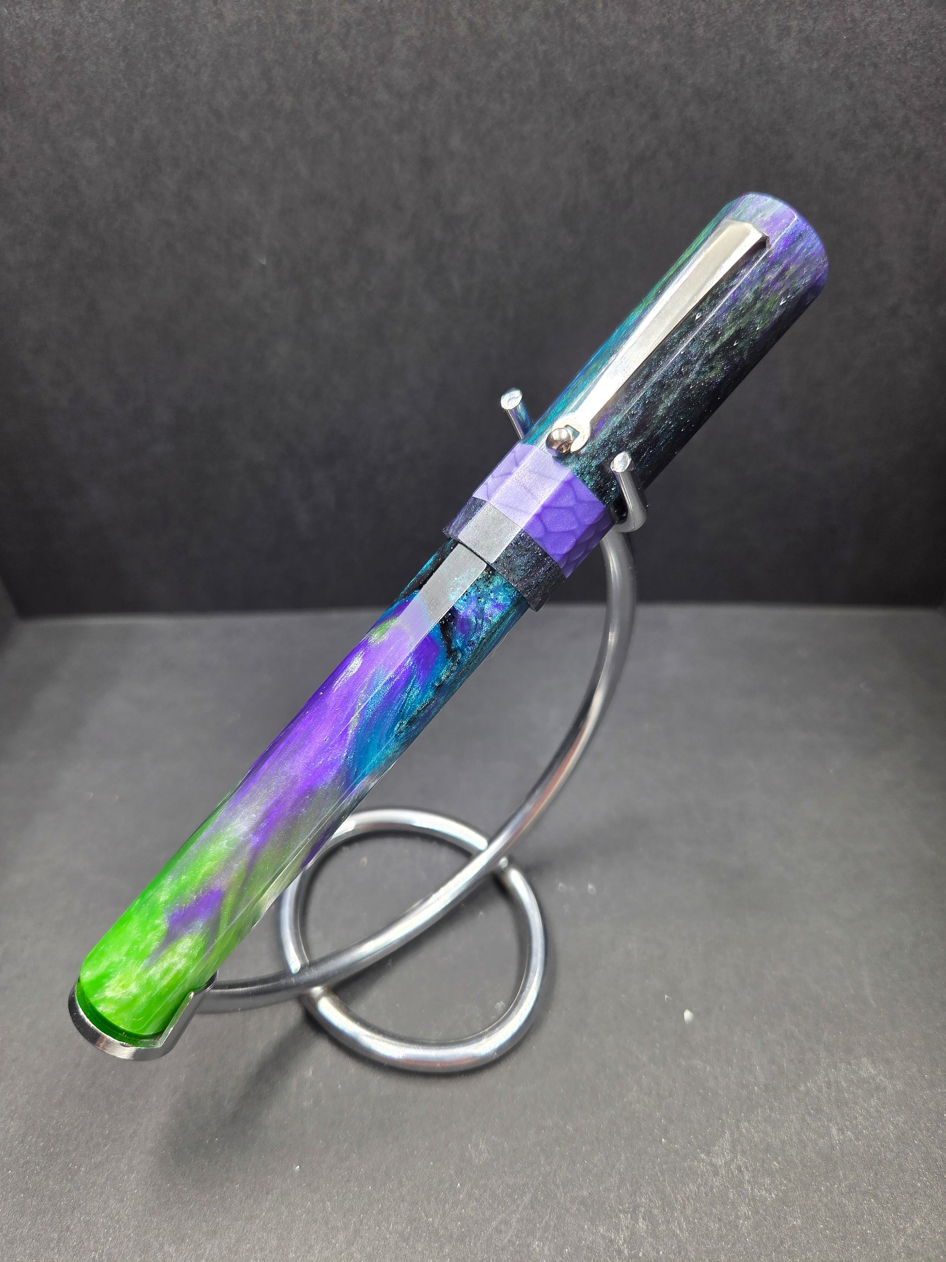 Meet Sleipnir, named after Odin's legendary eight-legged horse from Norse mythology—a fitting tribute to this octagonal wonder. Swirling with our new Serenity resin in calming purples, blues, and greens, it captures the magic of a starry night sky. The mesmerizing blend of hues creates a one-of-a-kind aesthetic that draws admiring glances every time you reach for it. This pen isn't just a mythical reference; it's a comfortable, elegant writing companion that transforms everyday moments into something enchanting. The thoughtfully designed octagonal barrel nestles perfectly in your hand, reducing fatigue during extended writing sessions. Whether you're journaling, signing documents, or sketching ideas, Sleipnir delivers smooth, reliable performance with style. Perfect for those who appreciate a touch of Nordic lore with their stationery, this pen makes an unforgettable gift for mythology enthusiasts, collectors, and anyone seeking a writing instrument that's as beautiful as it is functional.