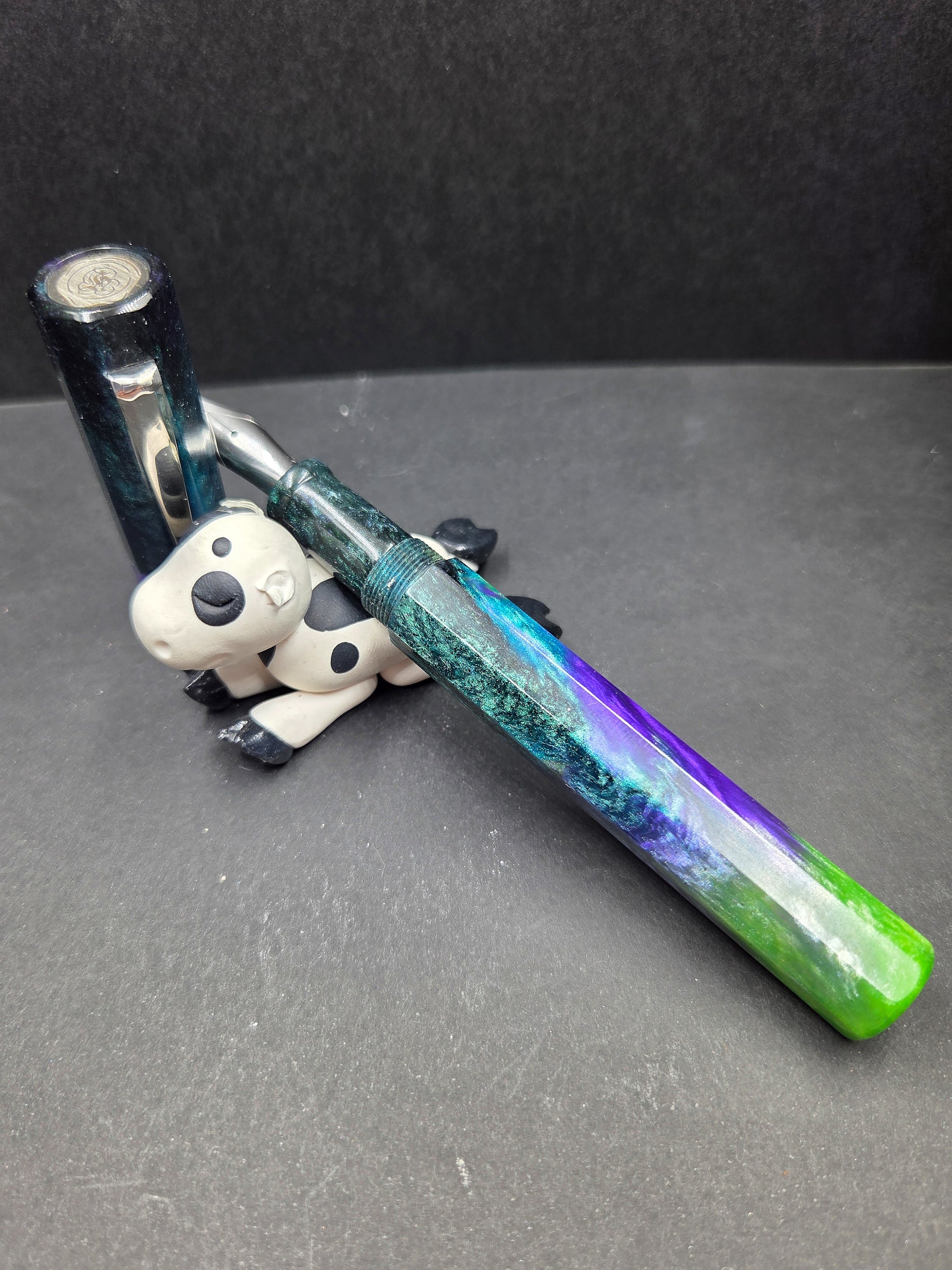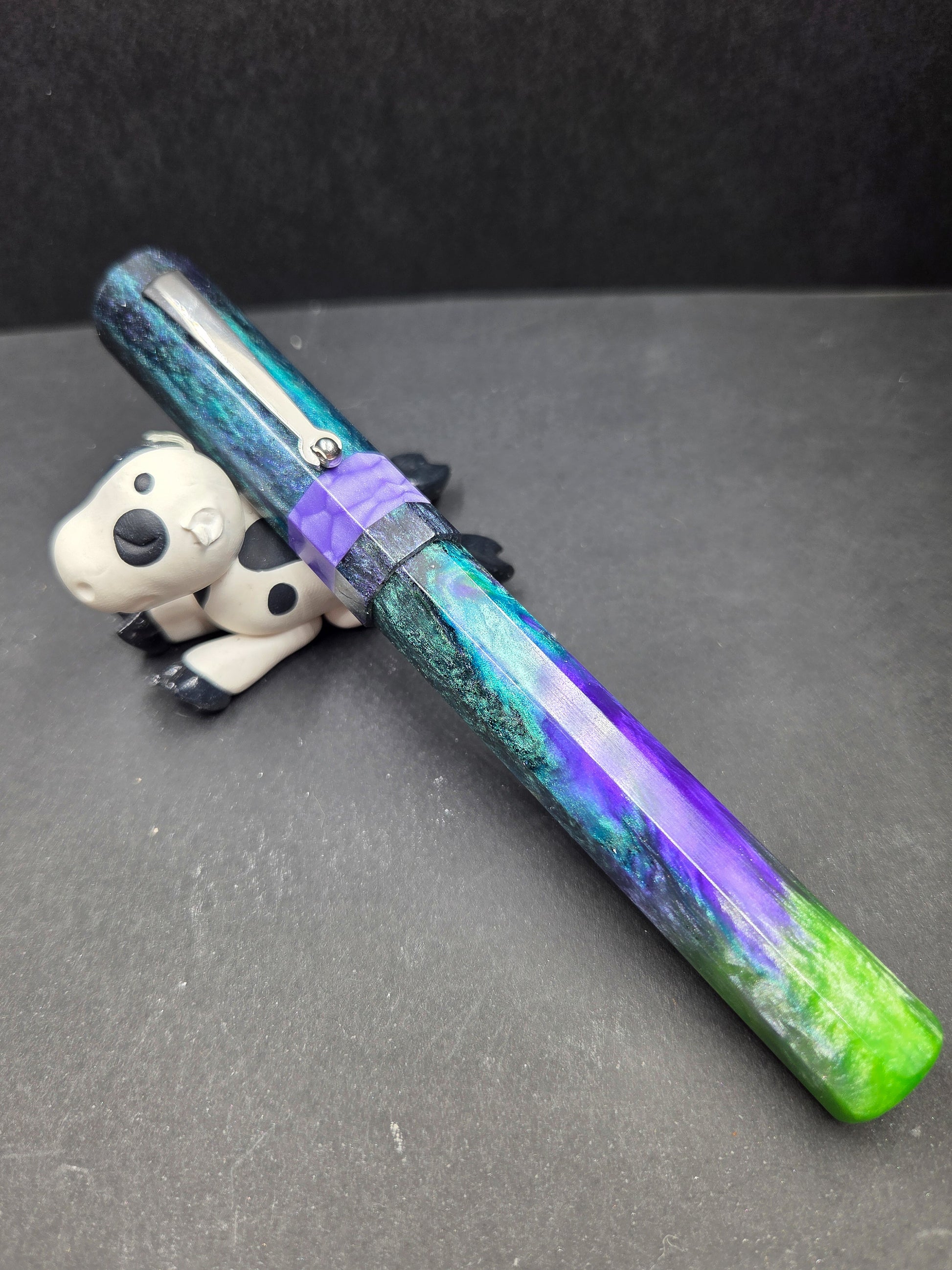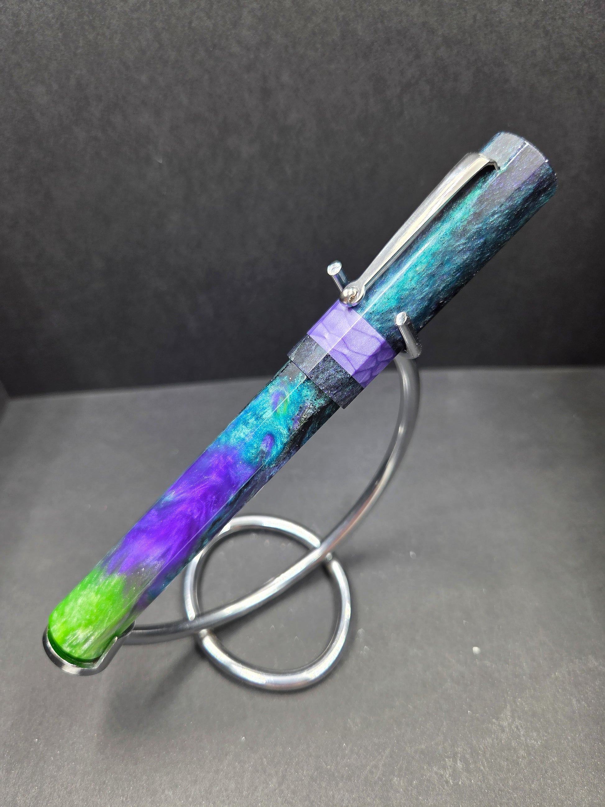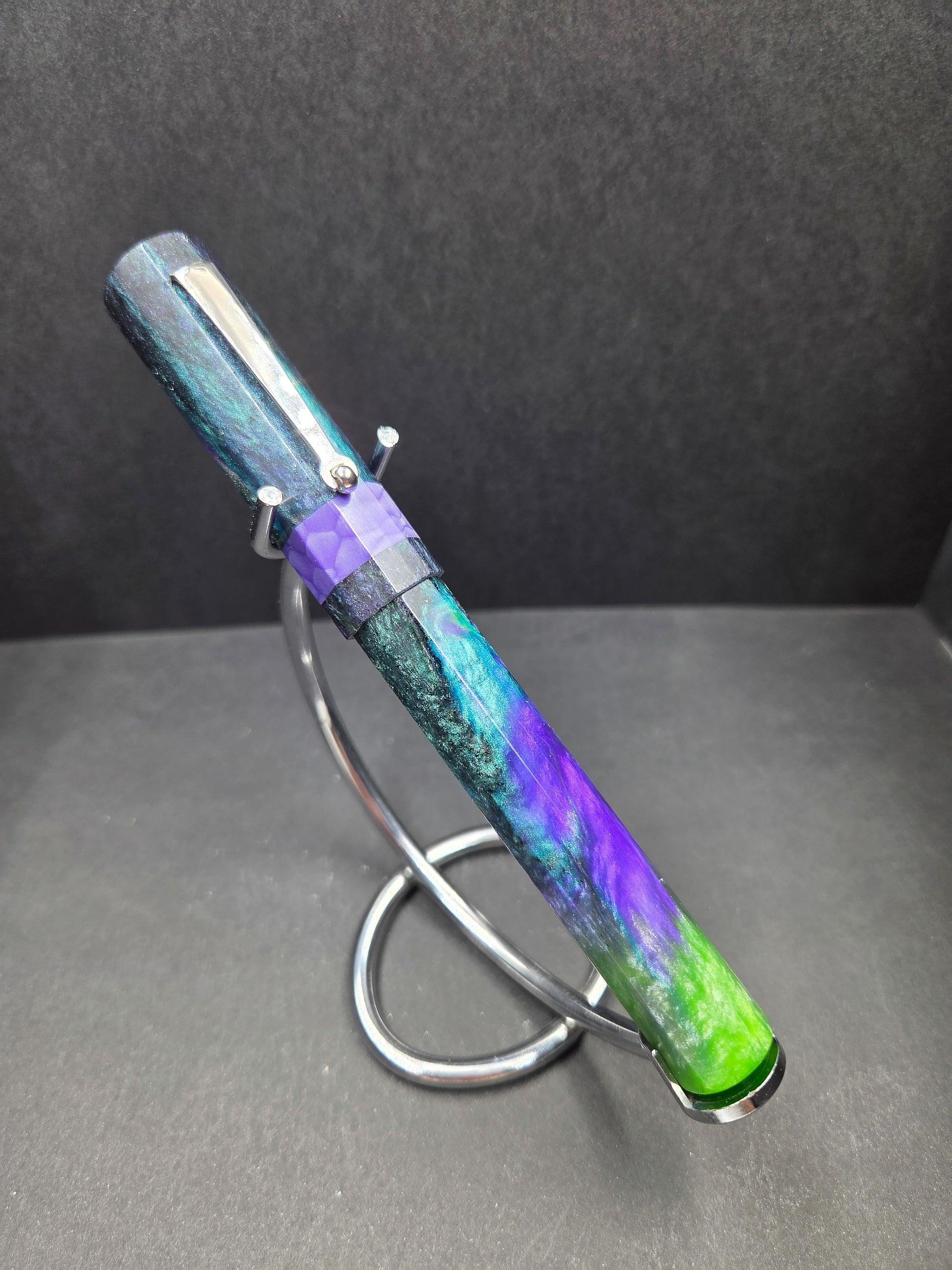 Meet Sleipnir, named after Odin's legendary eight-legged horse from Norse mythology—a fitting tribute to this octagonal wonder. Swirling with our new Serenity resin in calming purples, blues, and greens, it captures the magic of a starry night sky. The mesmerizing blend of hues creates a one-of-a-kind aesthetic that draws admiring glances every time you reach for it. This pen isn't just a mythical reference; it's a comfortable, elegant writing companion that transforms everyday moments into something enchanting. The thoughtfully designed octagonal barrel nestles perfectly in your hand, reducing fatigue during extended writing sessions. Whether you're journaling, signing documents, or sketching ideas, Sleipnir delivers smooth, reliable performance with style. Perfect for those who appreciate a touch of Nordic lore with their stationery, this pen makes an unforgettable gift for mythology enthusiasts, collectors, and anyone seeking a writing instrument that's as beautiful as it is functional.