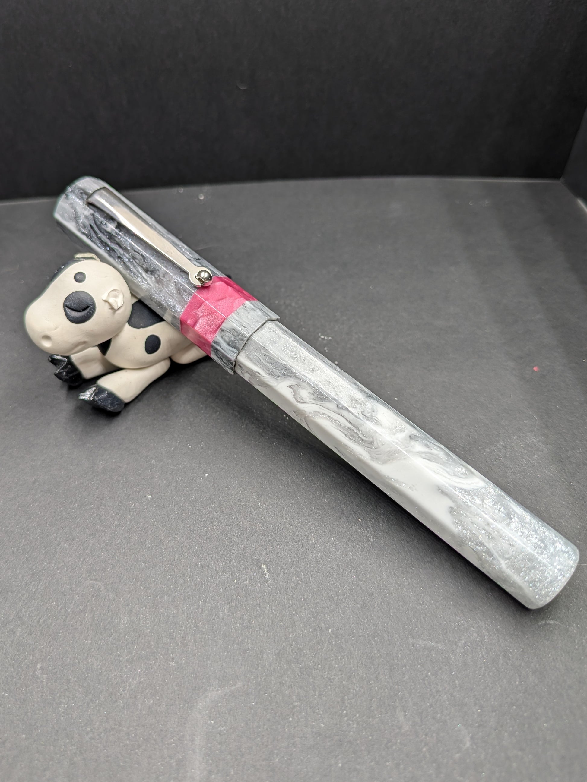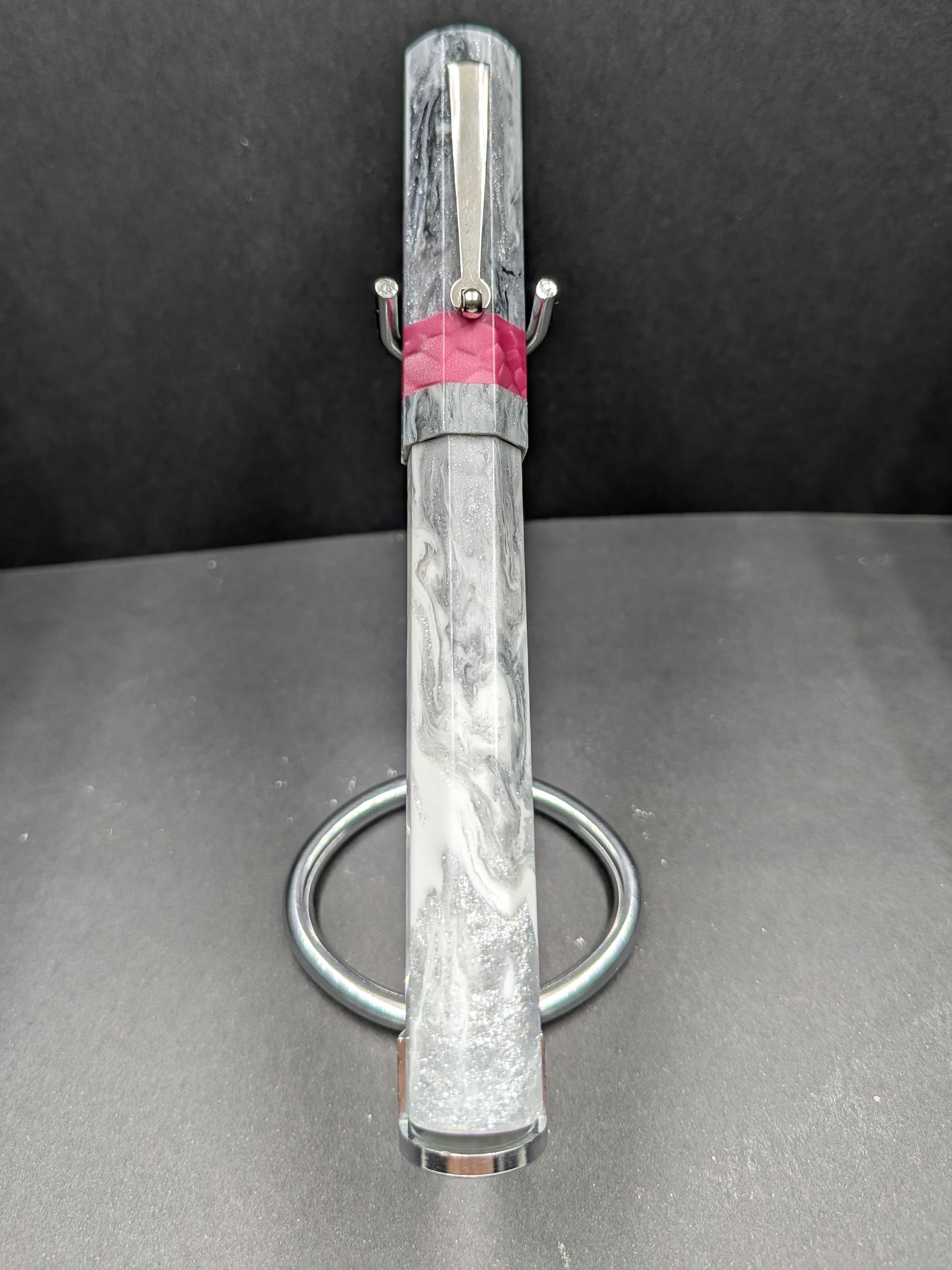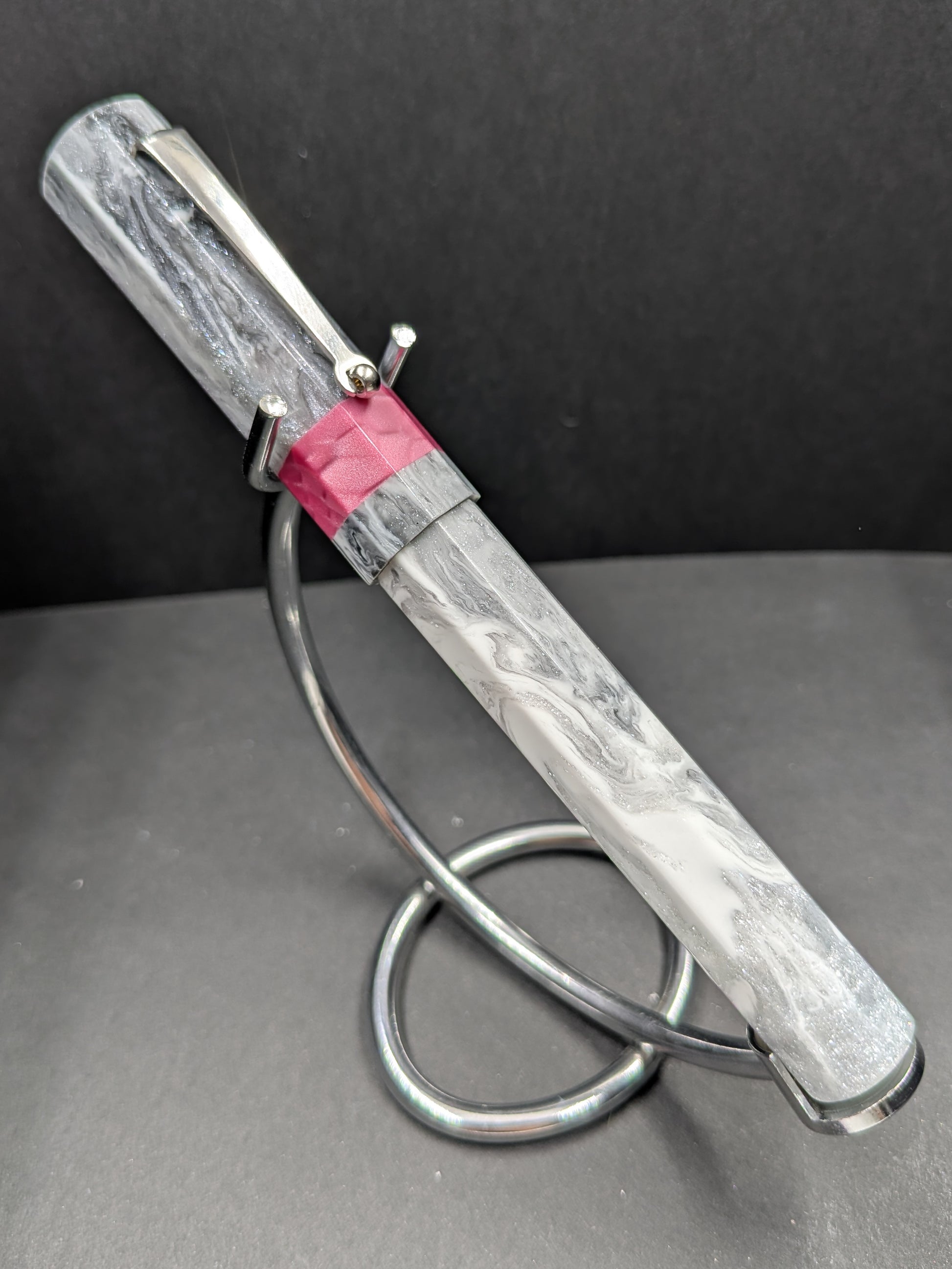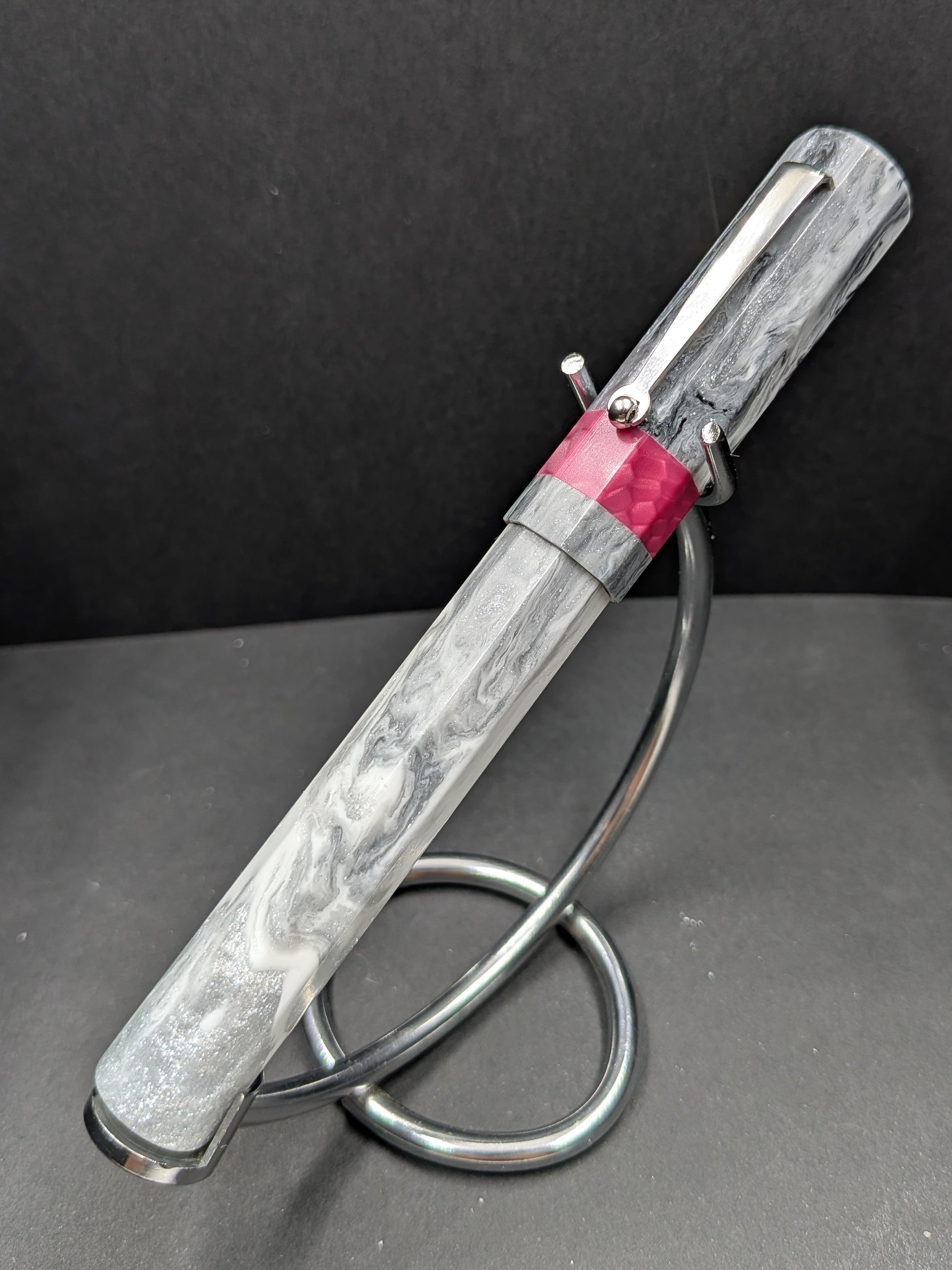 Inspired by the eight-legged steed of Norse mythology, Sleipnir brings legendary flair to your writing arsenal. This striking pen combines pristine white and silver tones with a vibrant pink juma cap band for visual intrigue. Each piece is entirely unique—a one-of-a-kind creation with no two alike. The distinctive eight-sided barrel cradles your hand comfortably, reducing writing fatigue during extended use. Whether you're capturing thoughts in a journal, sketching designs, or signing important papers, Sleipnir delivers a smooth, effortless writing experience. Perfect for mythology enthusiasts, devoted pen collectors, and anyone who believes everyday tools deserve personality. More than just a writing instrument, this pen carries the spirit of adventure and transforms ordinary moments into something extraordinary.