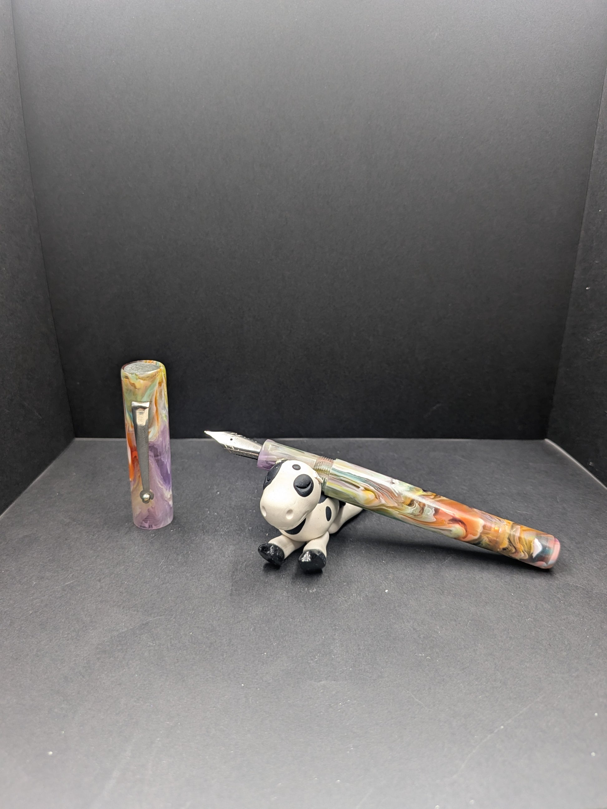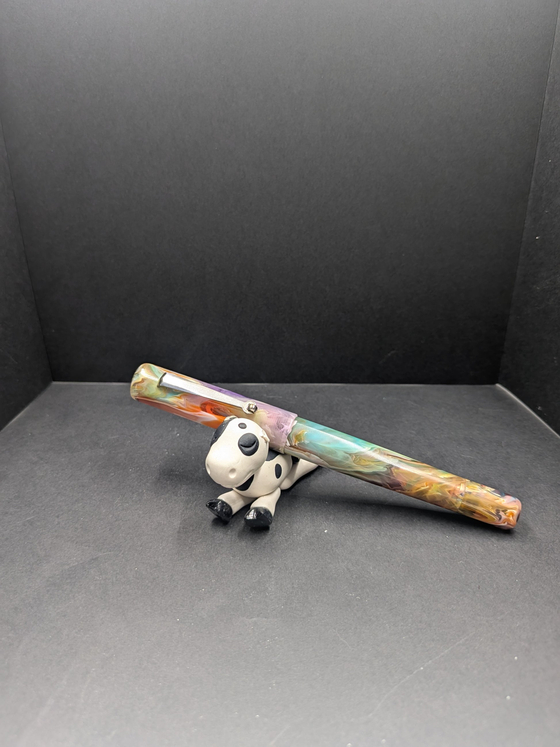 At Hinze, we’re lucky to work with Elyce from SNR, a resin artist beyond compare. That means we rarely turn to others—but Jonathan Brooks is an exception. His materials are popular everywhere, from indie makers to big brands. We keep some of his creations handy for special commissions, crafting just a few each year. Here’s one of those gems: our new piston filler in his fan-favorite Primary Manipulation resin, boasting a roomy ink window and a sleek rhodium-plated roller clip. Seriously, it’s a showstopper of a pen!