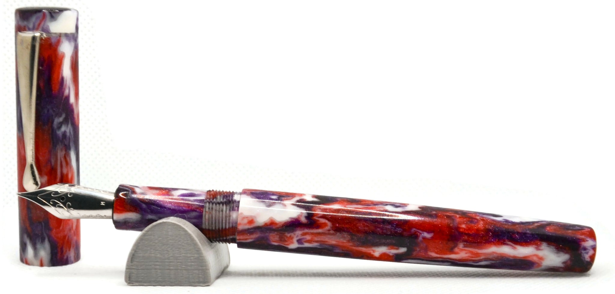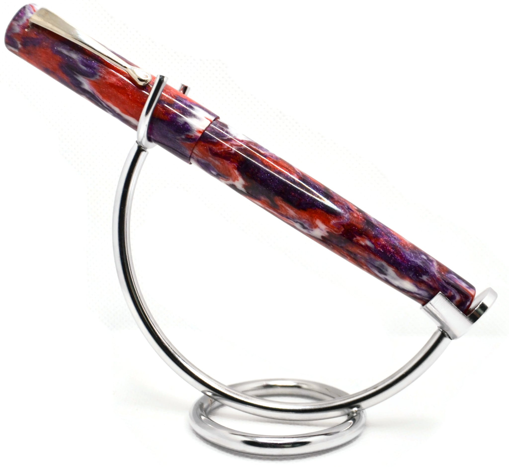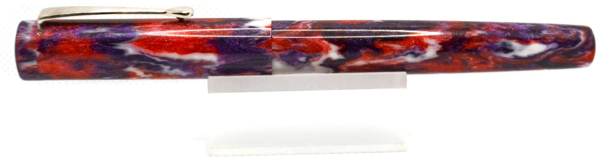 Write from the perspective of a quirky pen enthusiast: "Sprinkle some sparkle into your writing with B24 - our (Diamondcast) fountain pen! Made with real diamond dust in the resin, this pen will add a touch of magic to your everyday notes and doodles. Embrace a pop of pink and purple explosion while jotting down your thoughts. It's like writing with a diamond in disguise. (But don't tell anyone!) 💎✨"