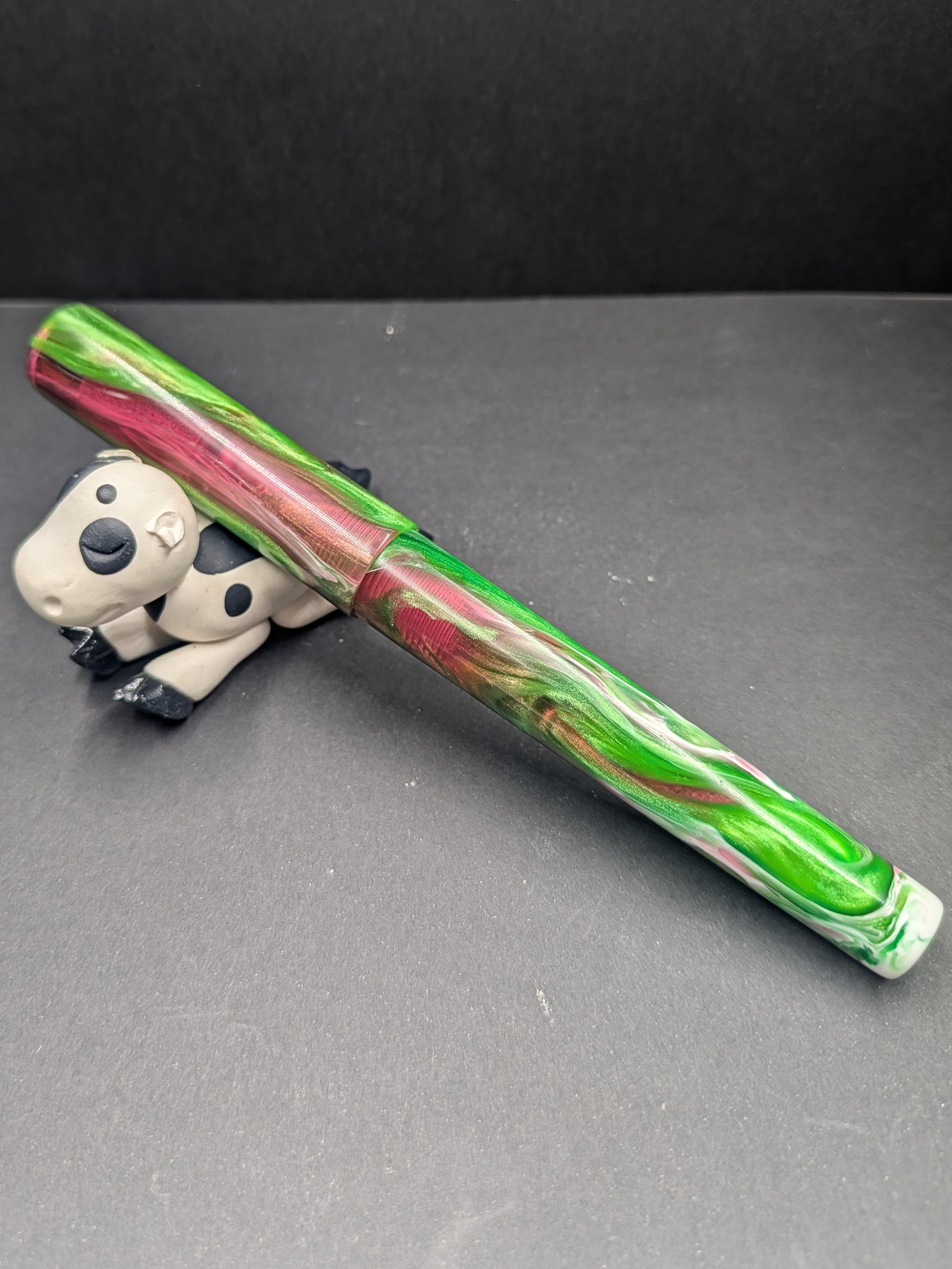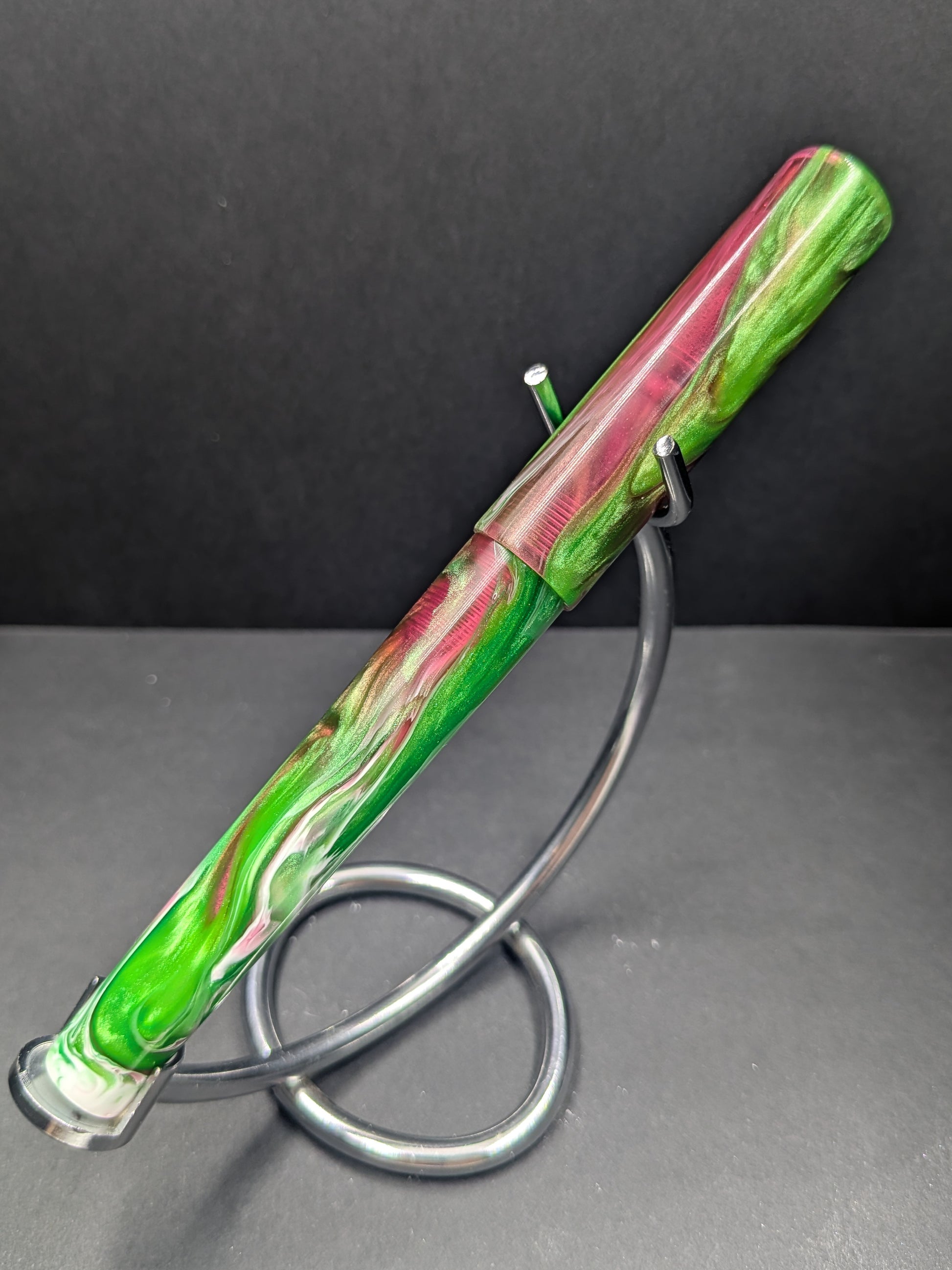 The B24 - (Fountain Telling) - Say My Name pen is a whimsical delight that stands out with its unusual blend of pink, green, white, and black. Each color dances together in lively harmony, creating a fun and unexpected look that sparks conversation and sparks creativity. Whether you’re jotting down notes or signing important documents, this playful pen adds a splash of personality to every stroke. Let your writing reflect your unique style with this eye-catching and imaginative accessory that’s as vibrant as your ideas.