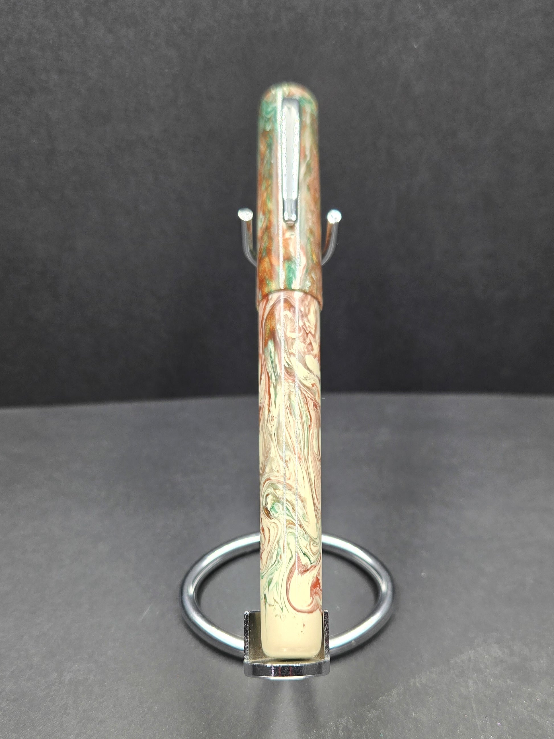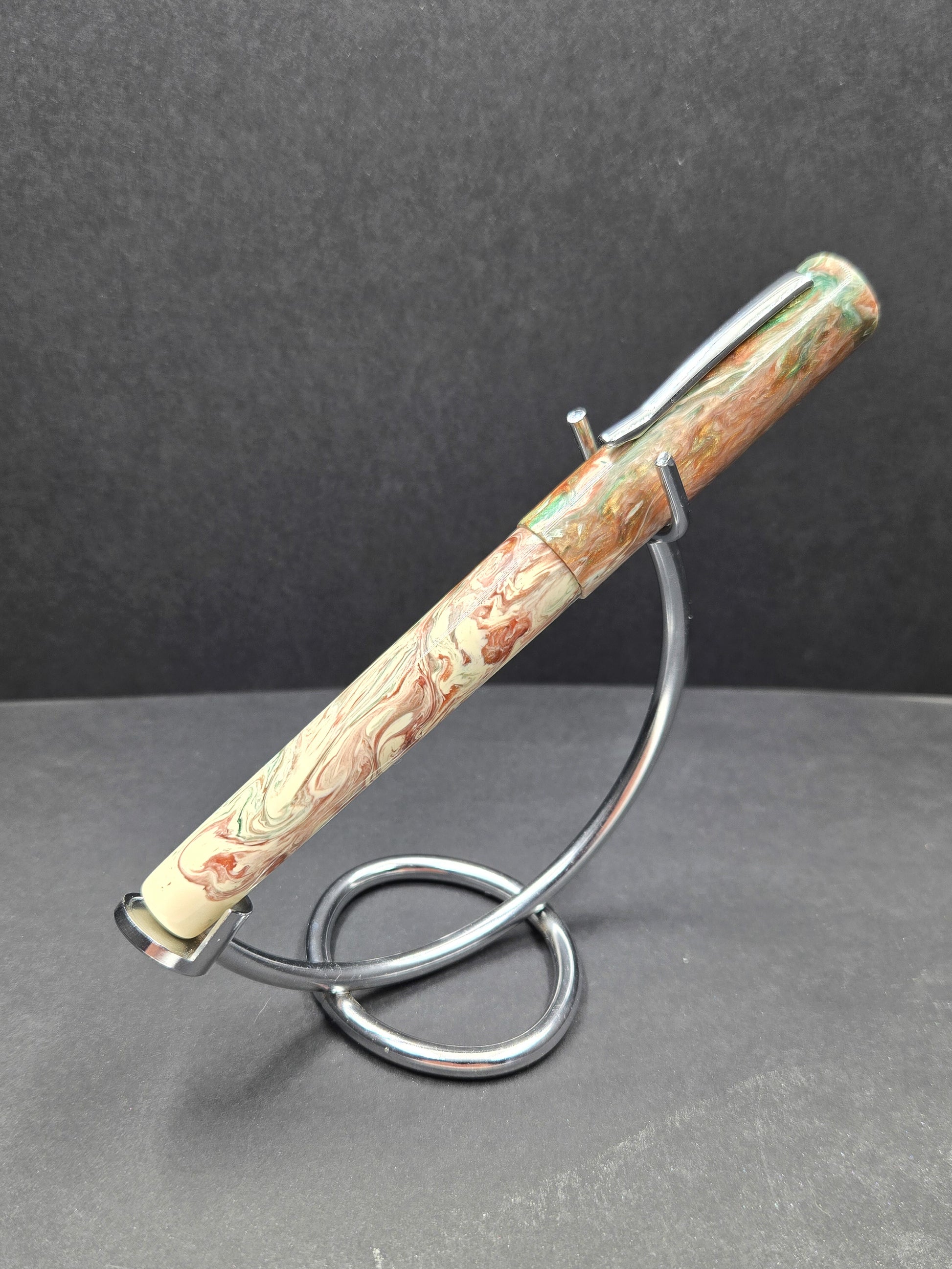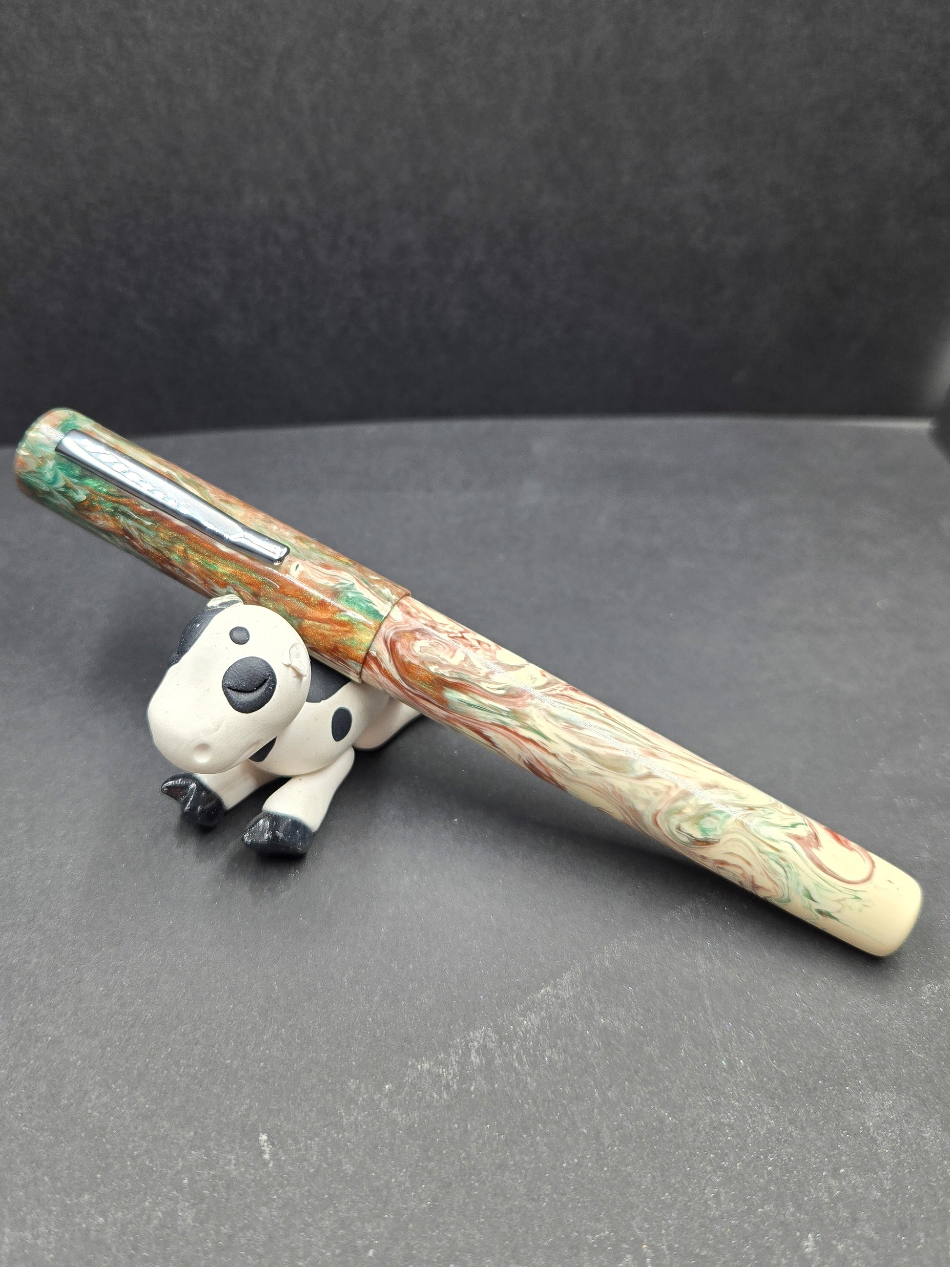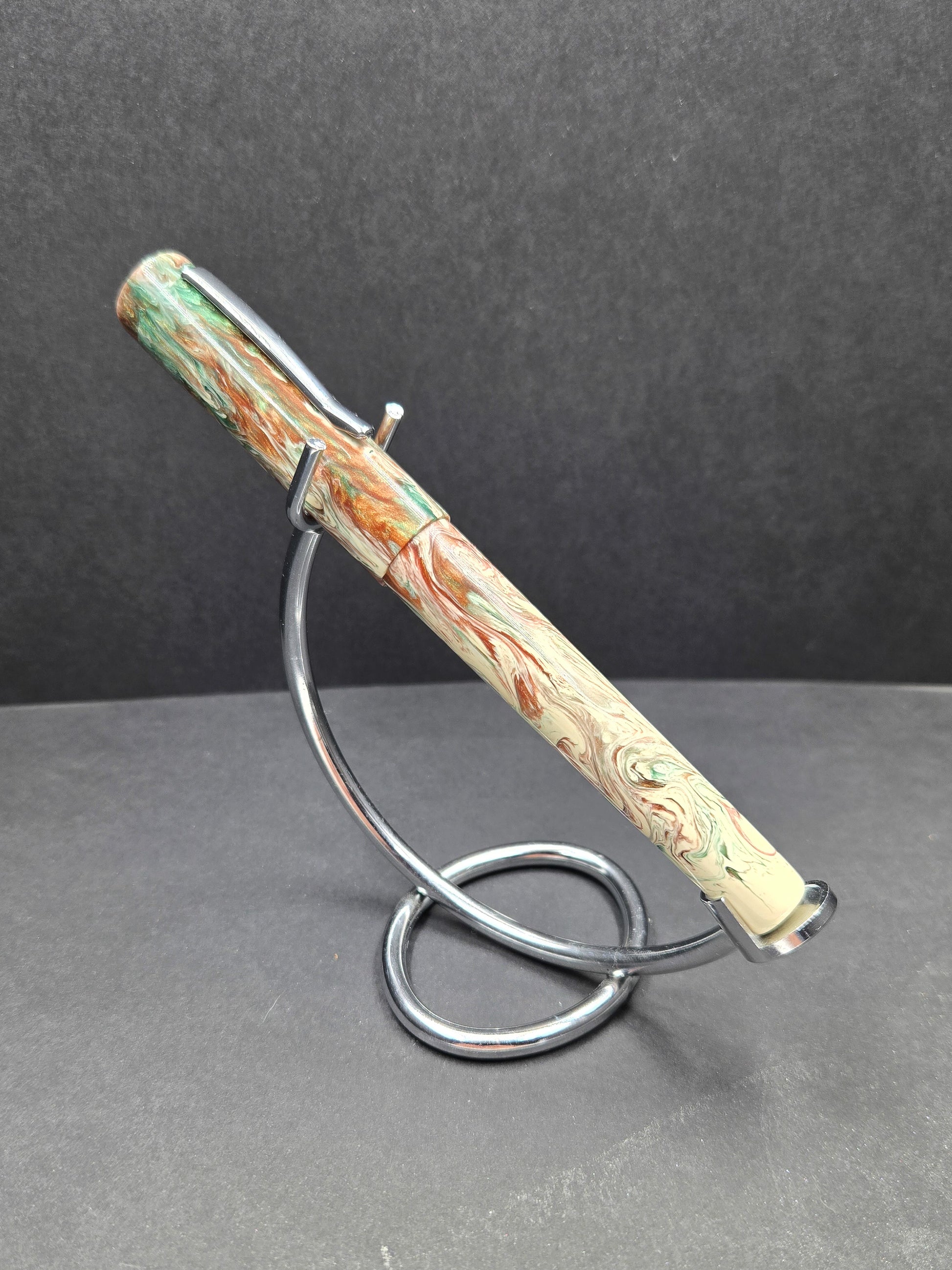 This pen is a vibrant and playful tribute to the classic dirty martini, featuring a custom color blend specially created for Hinze by Kristin. Its striking mix of hues captures the fun and flair of the cocktail, making every writing experience an absolute joy. The dynamic swirls and rich tones bring a touch of sophistication and whimsy, turning your everyday notes into a celebration. Perfect for anyone who loves to add a splash of personality and style to their writing tools, this pen promises to keep your creativity flowing with a wink and a smile.