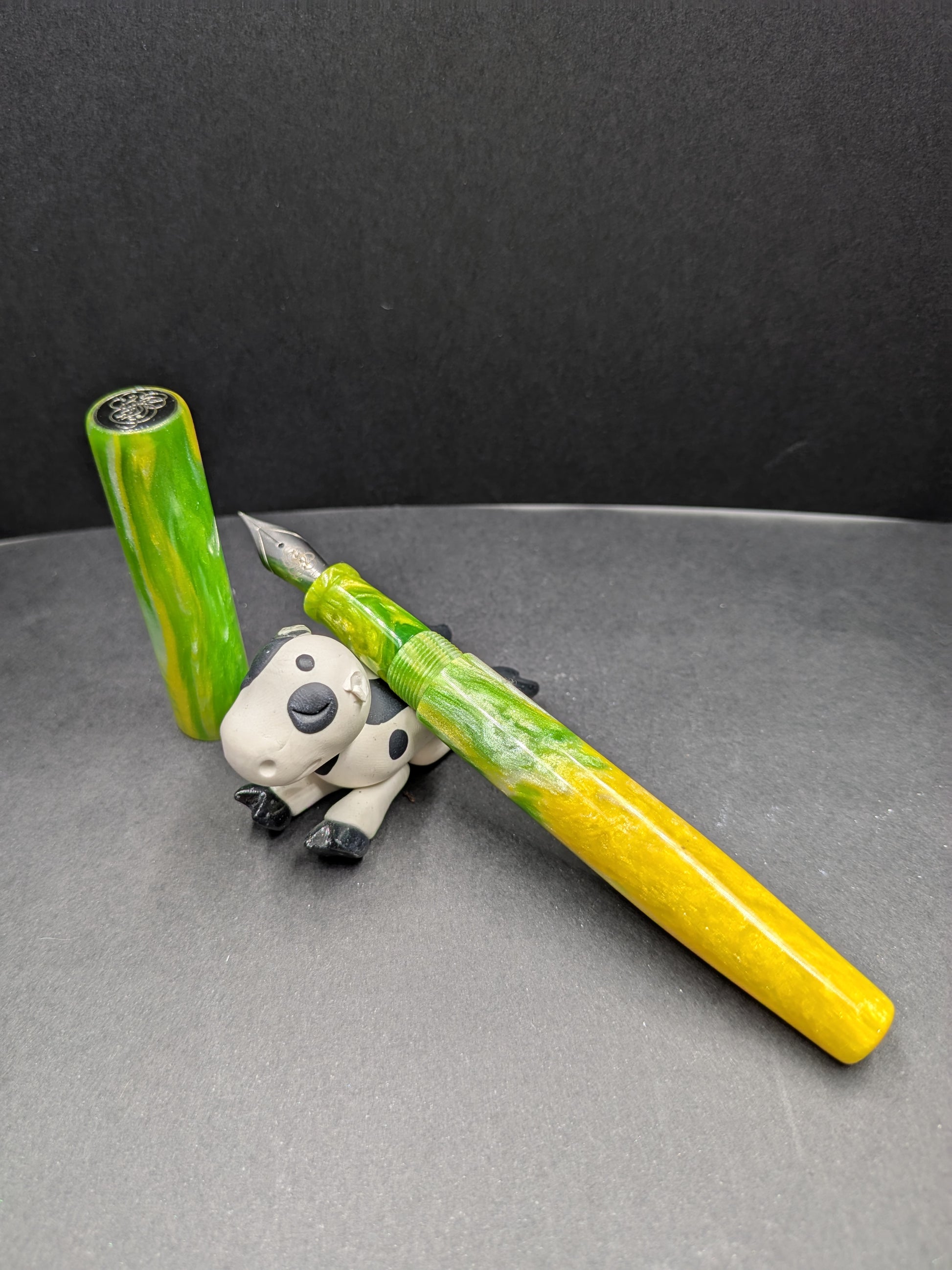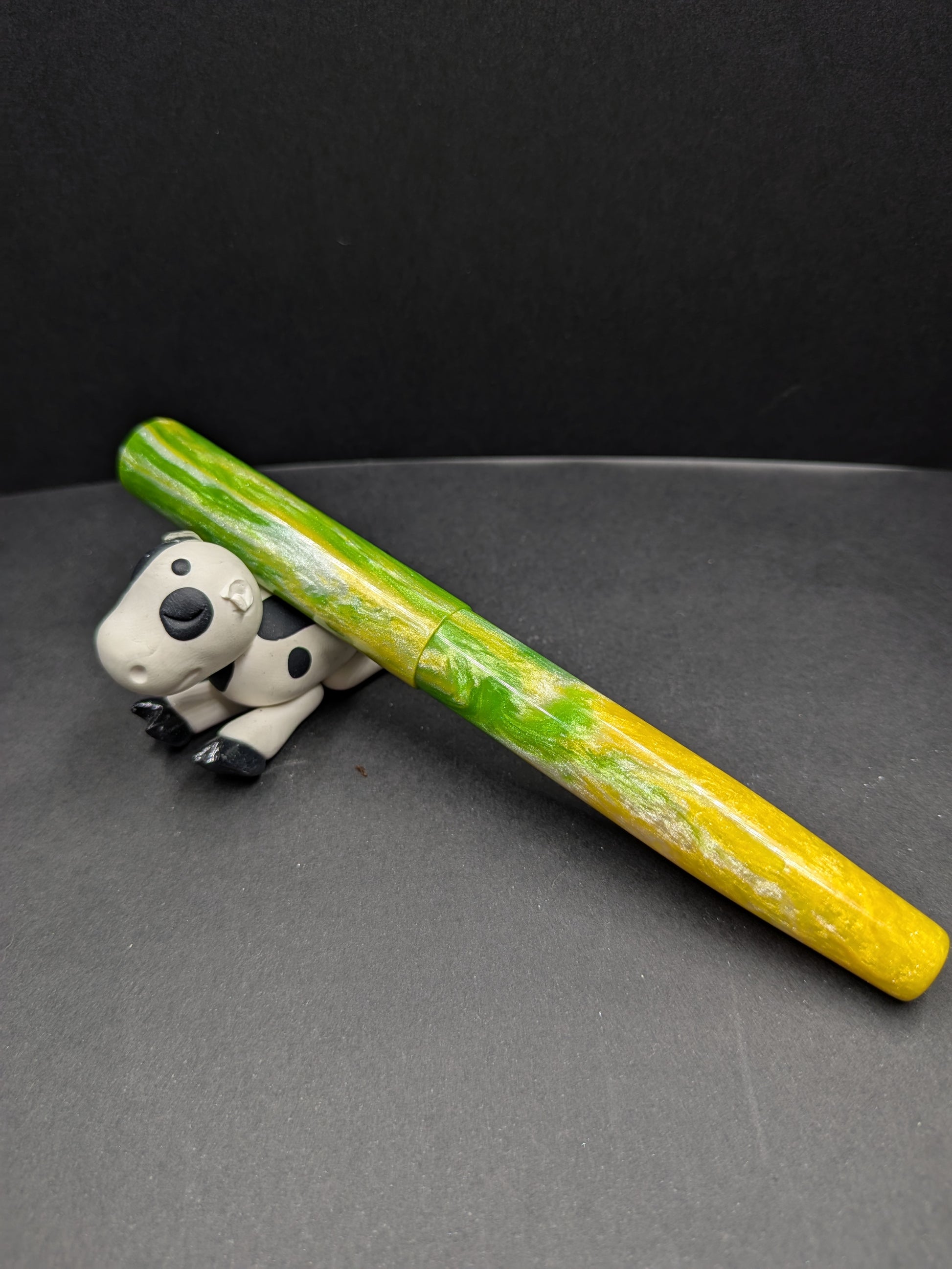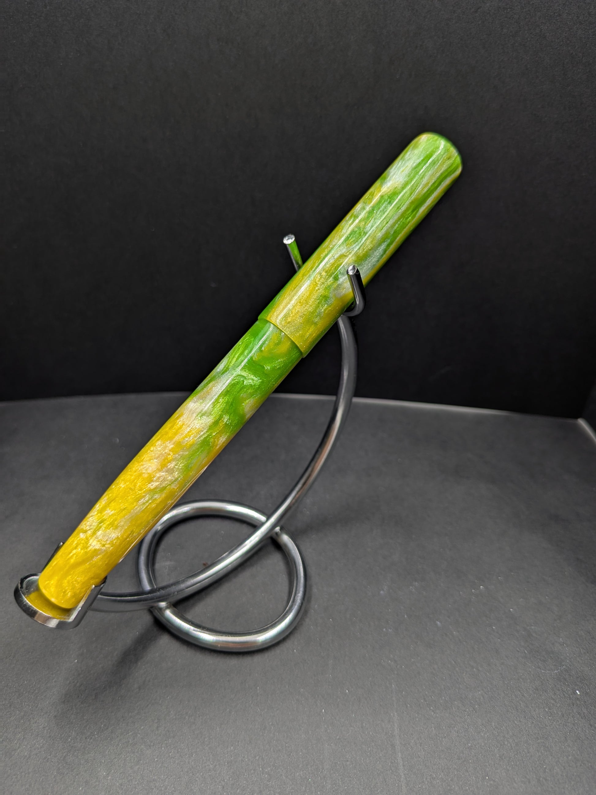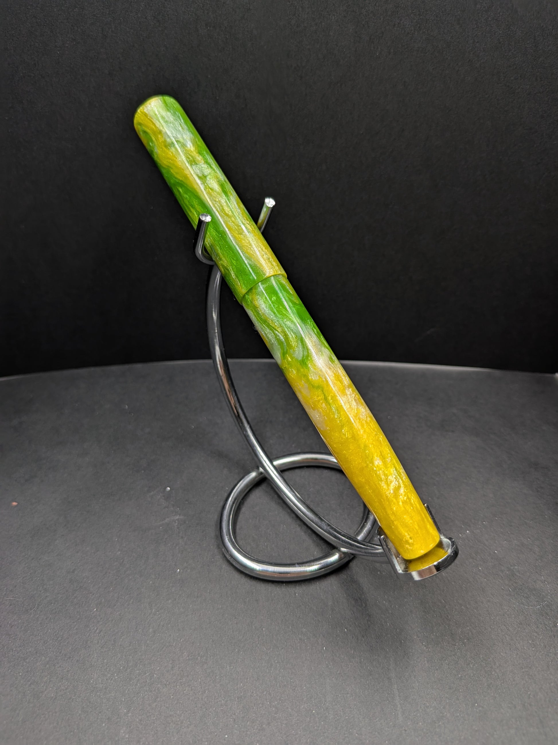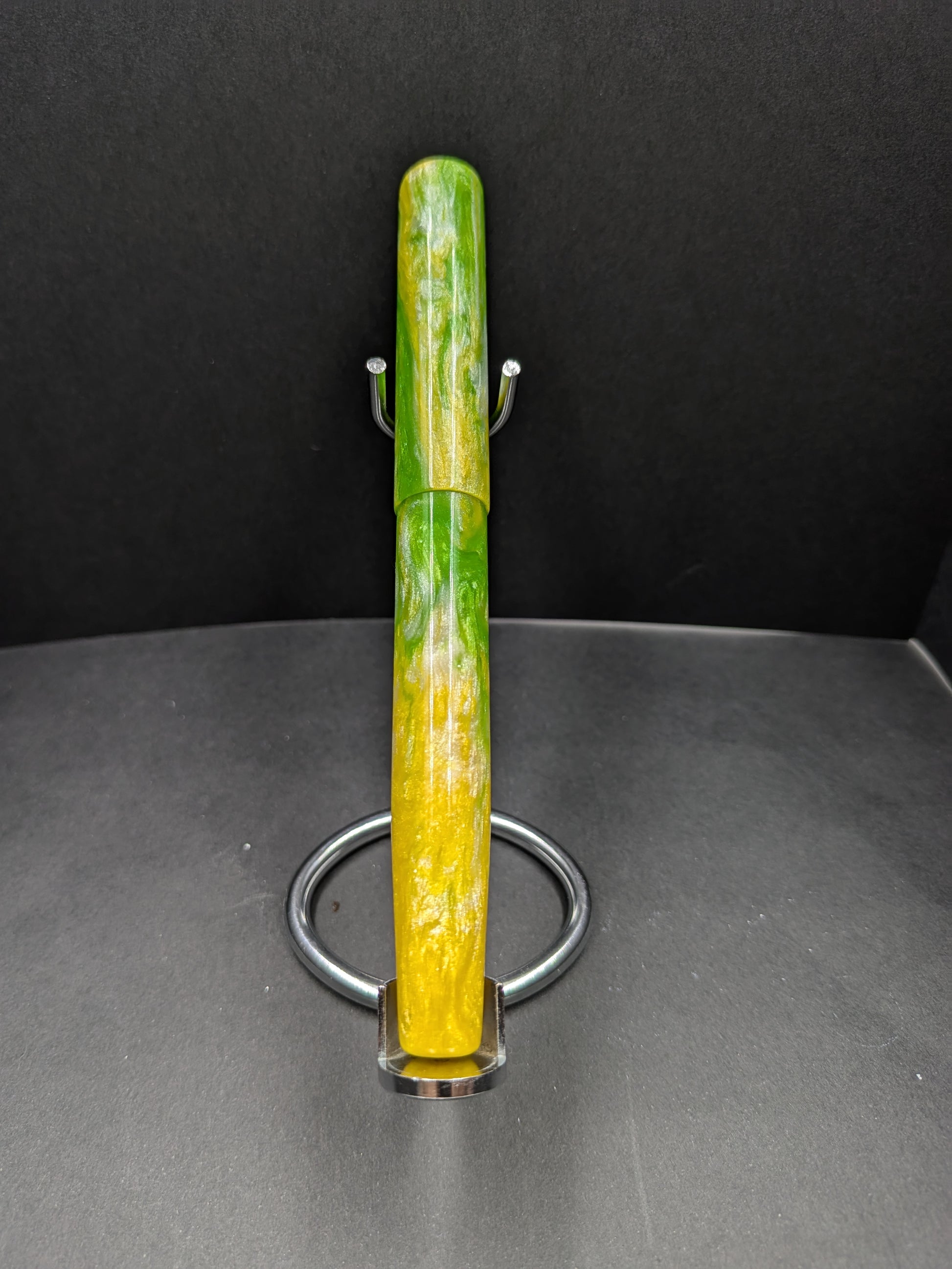 Introducing the second pen in our new series—mermaid madness is making waves! Known for vibrant, bold colors, we're diving even deeper with this one. Crafted in-house by our talented resin artist Elycca Longazelle, guided by her daughter Natalie, this pen combines mellow yellows and greens for a relaxed vibe. Swirls of light green, sunny yellow, and a touch of pearly white create a truly unique look. Soft yet eye-catching, the Mellow Mermaid is sure to be a playful and charming highlight in any collection.