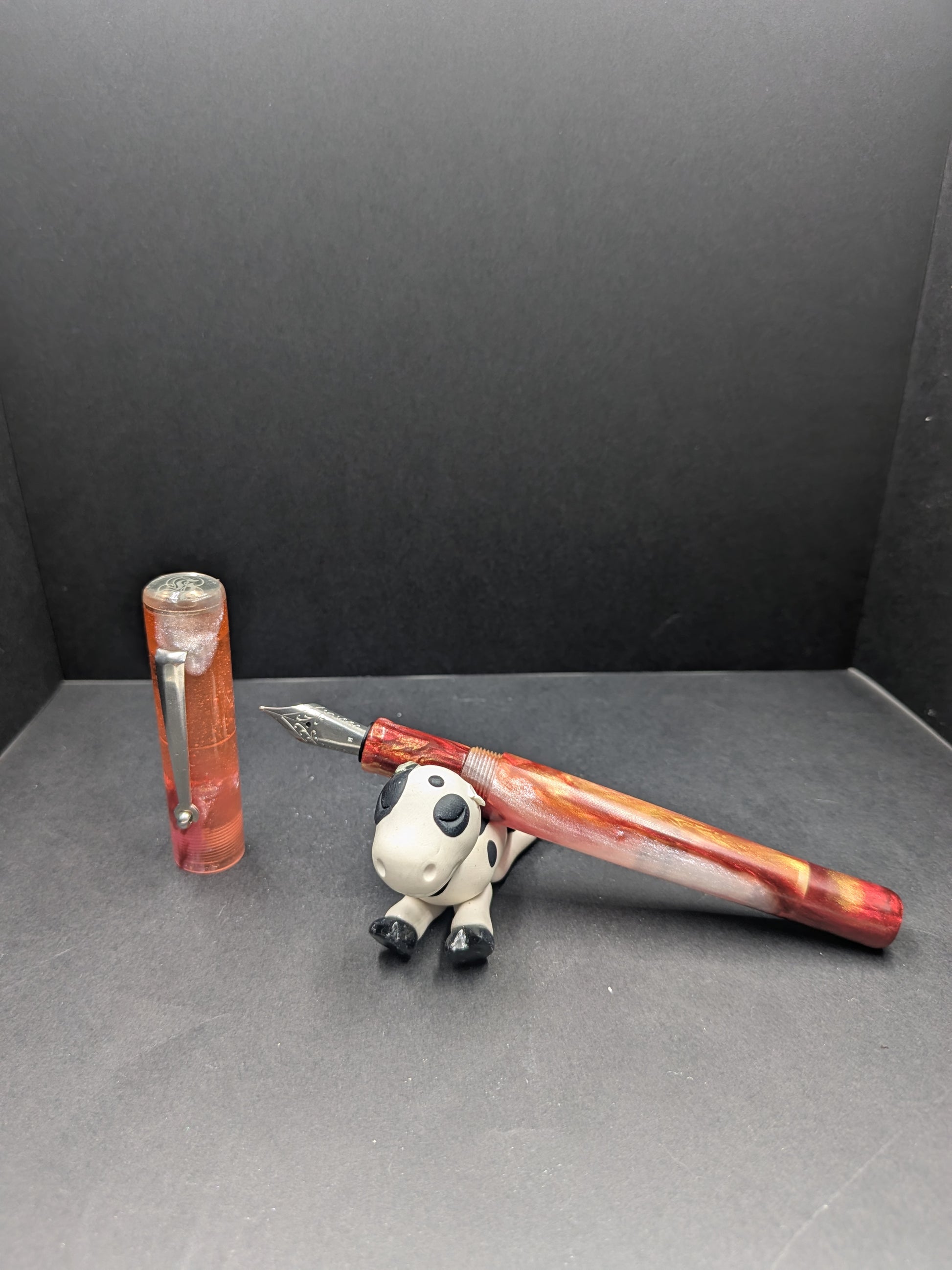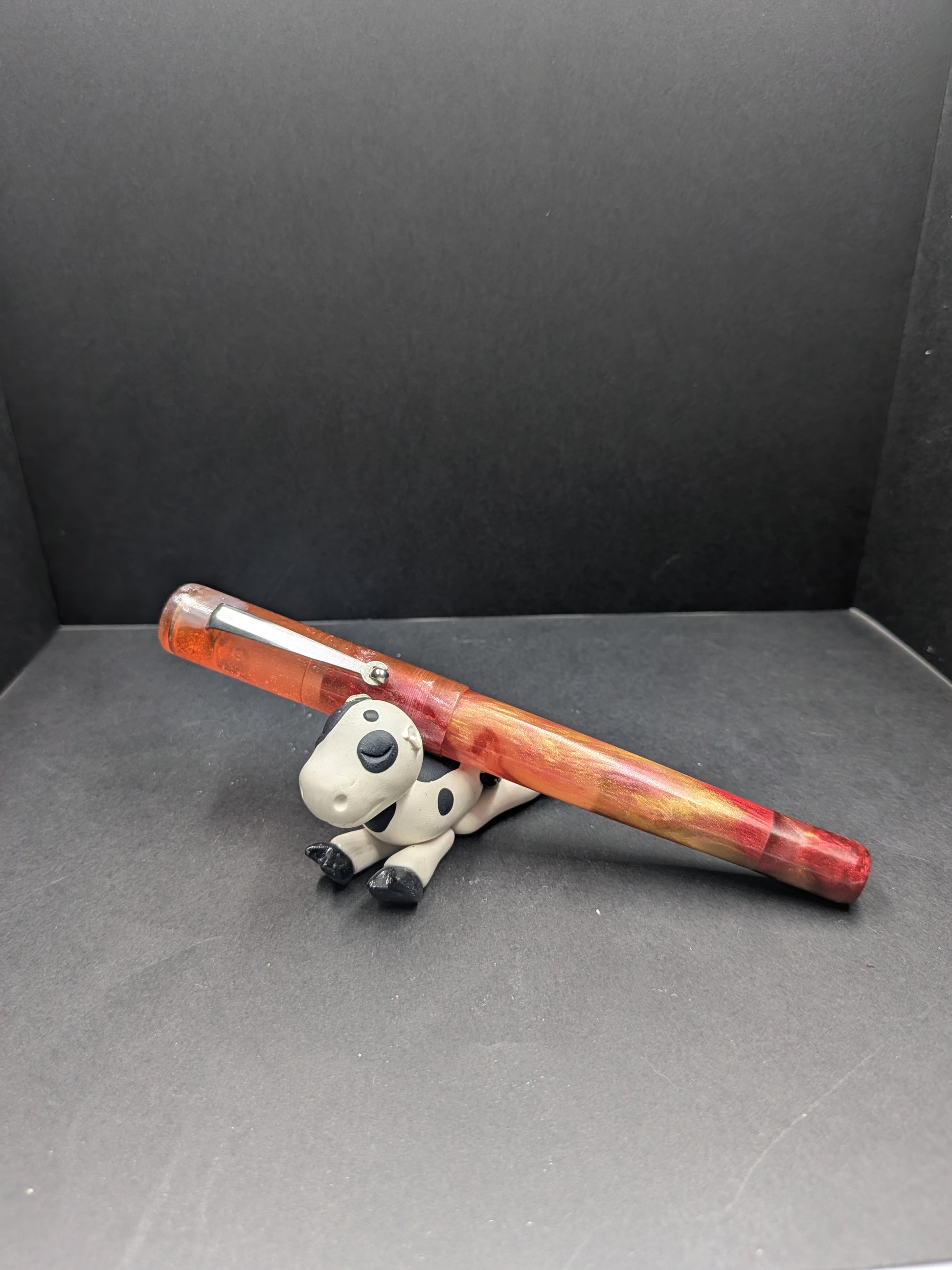 Capture the essence of summer with the B24 Strawberry Lemonaid Kolbenfuller. This translucent piston filler dazzles with its eye-catching design and perfectly balanced feel, making every writing moment a breeze. Finished with a sleek rhodium-plated roller clip, it blends fun and function in a playful package that's sure to brighten your day.