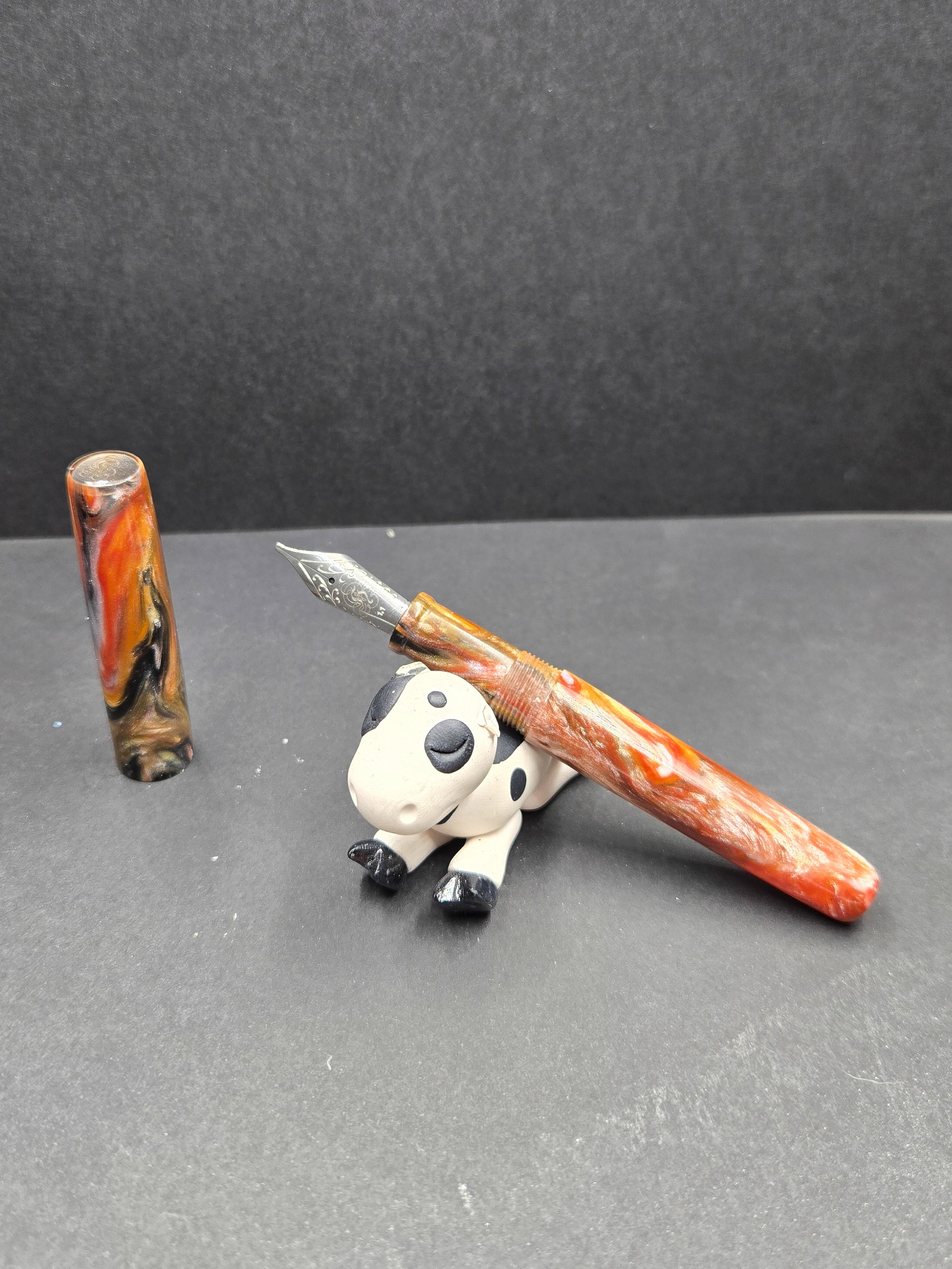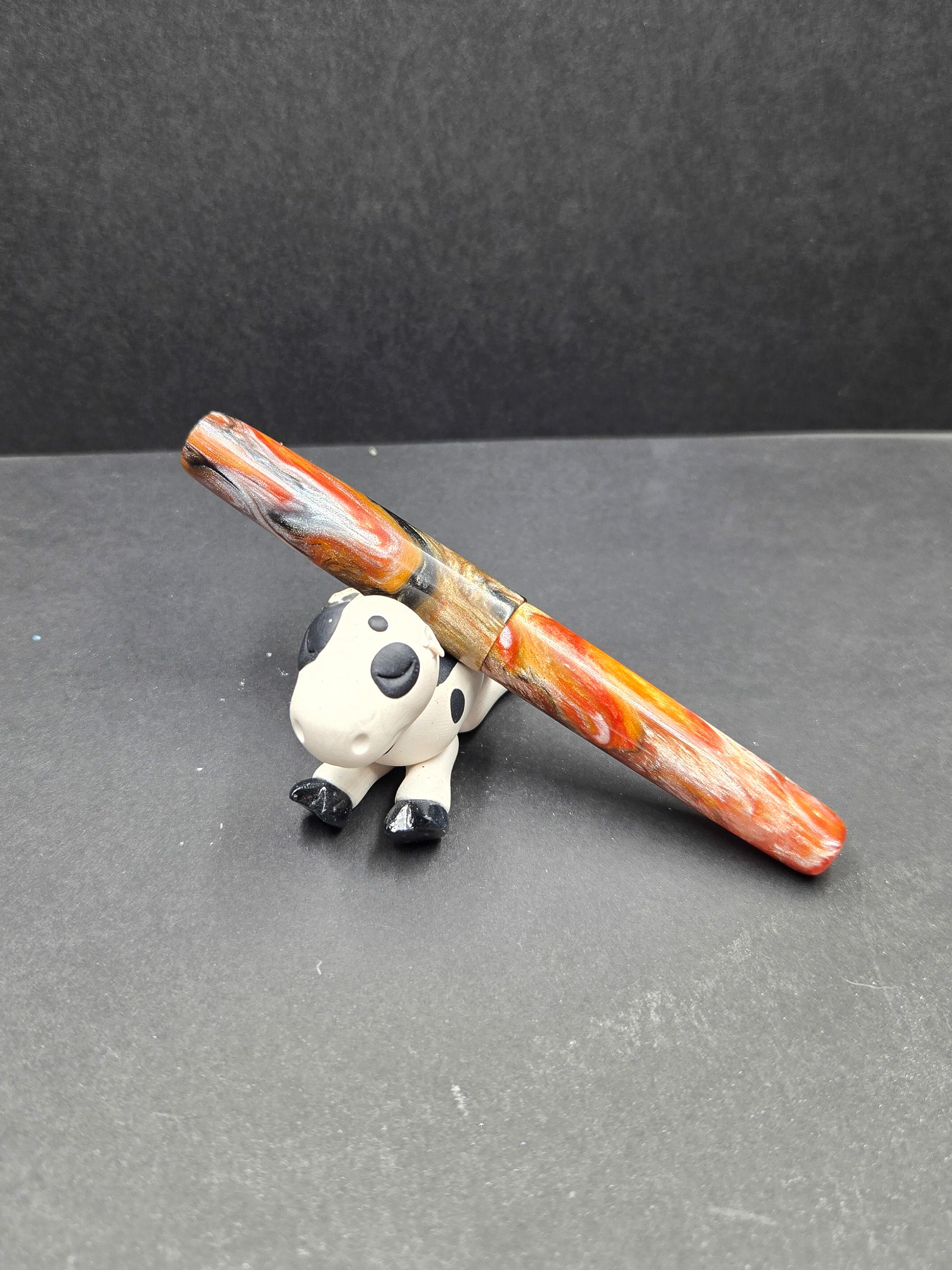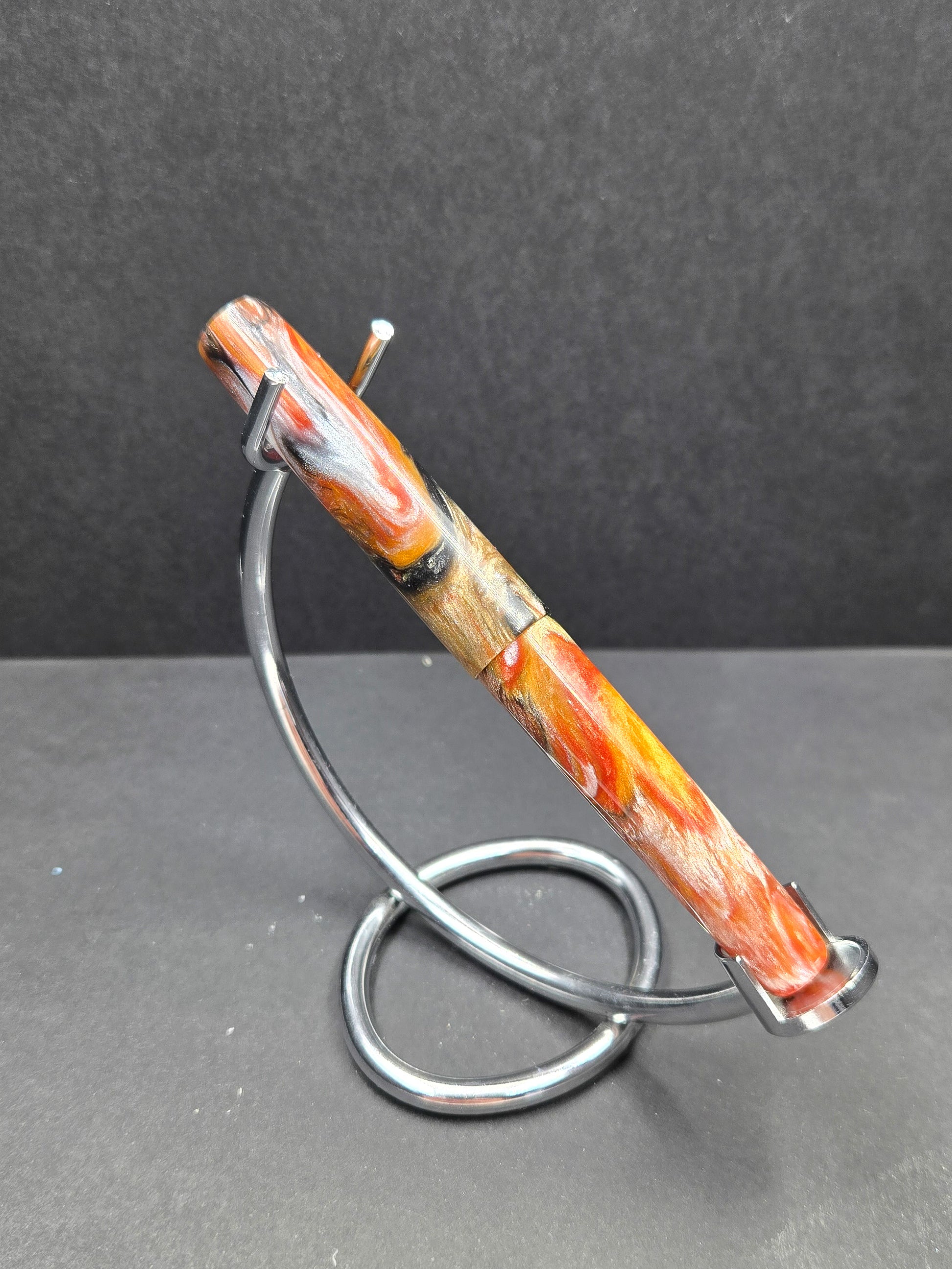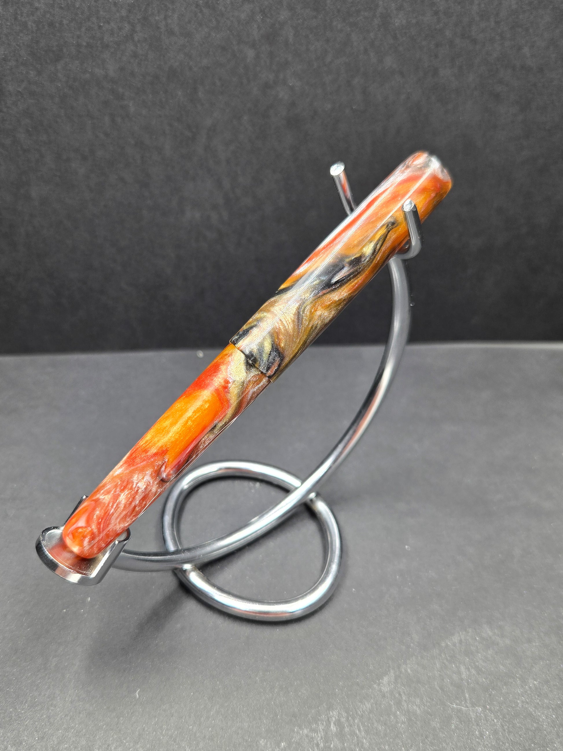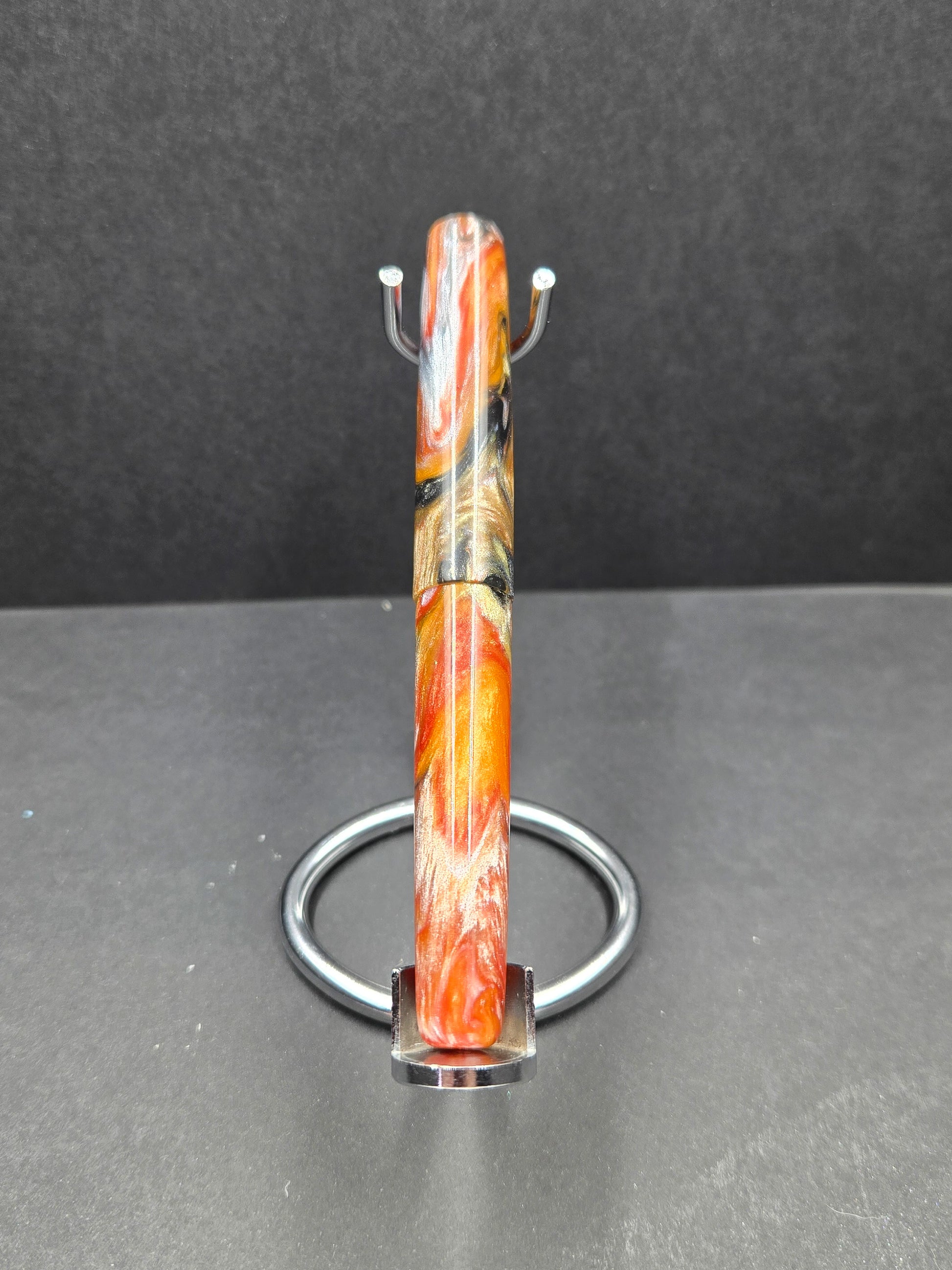 Meet Tiger – a B24 blank that roars with natural beauty and bold character. This striking material features colors swirled and striped like the magnificent coat of a Bengal tiger, creating a dynamic pattern that commands attention. Rich oranges, deep blacks, and warm creams flow together in nature-inspired stripes that give each blank its own distinctive personality. The swirling effect captures that same wild elegance you'd find in nature's most iconic predator, making every pen turned from this material genuinely one-of-a-kind. Tiger is perfect for crafters who want to create something with presence – a pen that doesn't whisper, it speaks. Whether you're turning a gift for someone with bold taste or you want a blank that reflects your own adventurous spirit, Tiger delivers visual impact without sacrificing sophistication. The organic striping pattern means no two blanks are exactly alike, so you're guaranteed a finished pen with genuine character and presence. This is the kind of material that makes people pick up your pen and say, "Wow, where did you find that?"