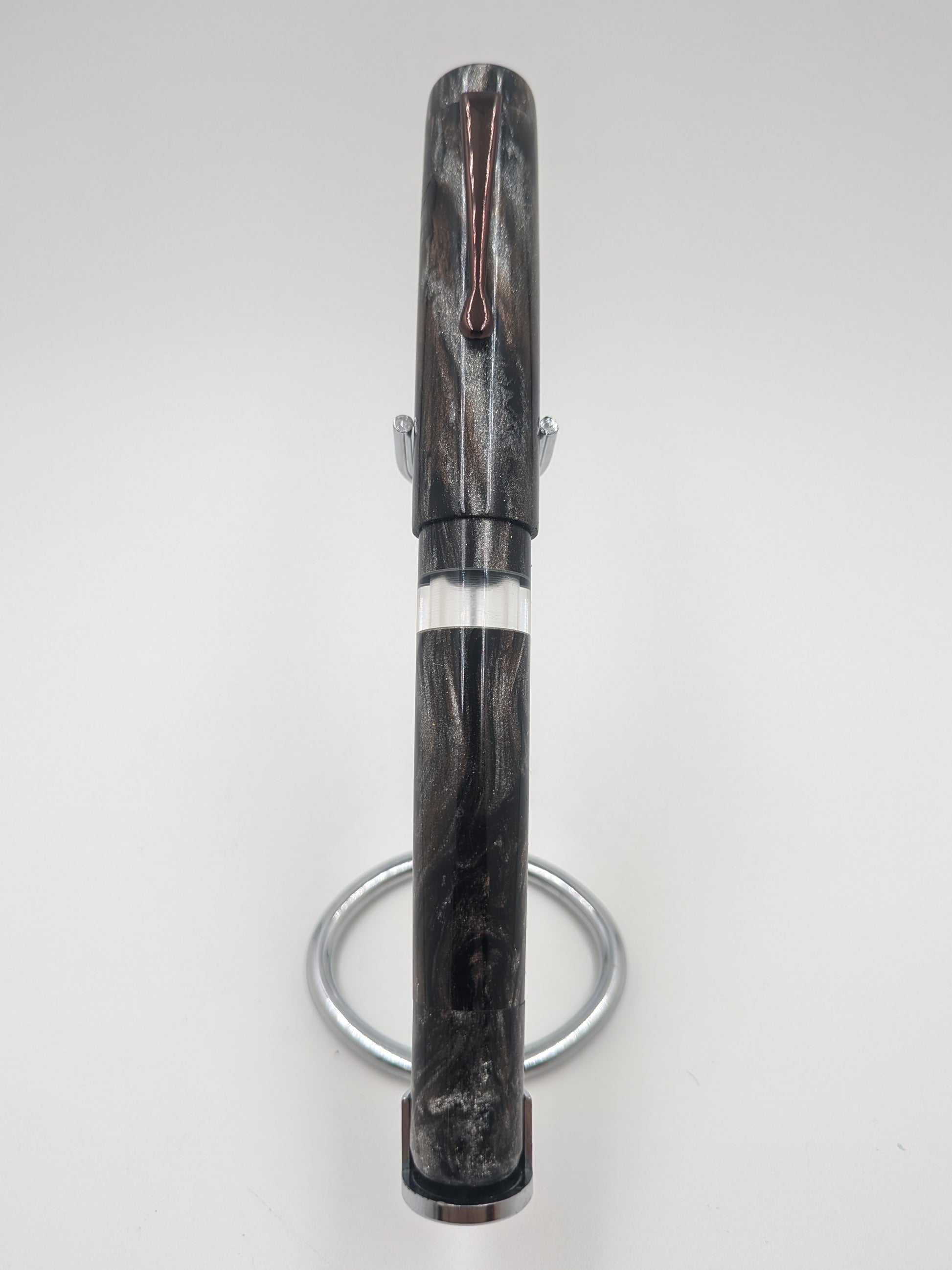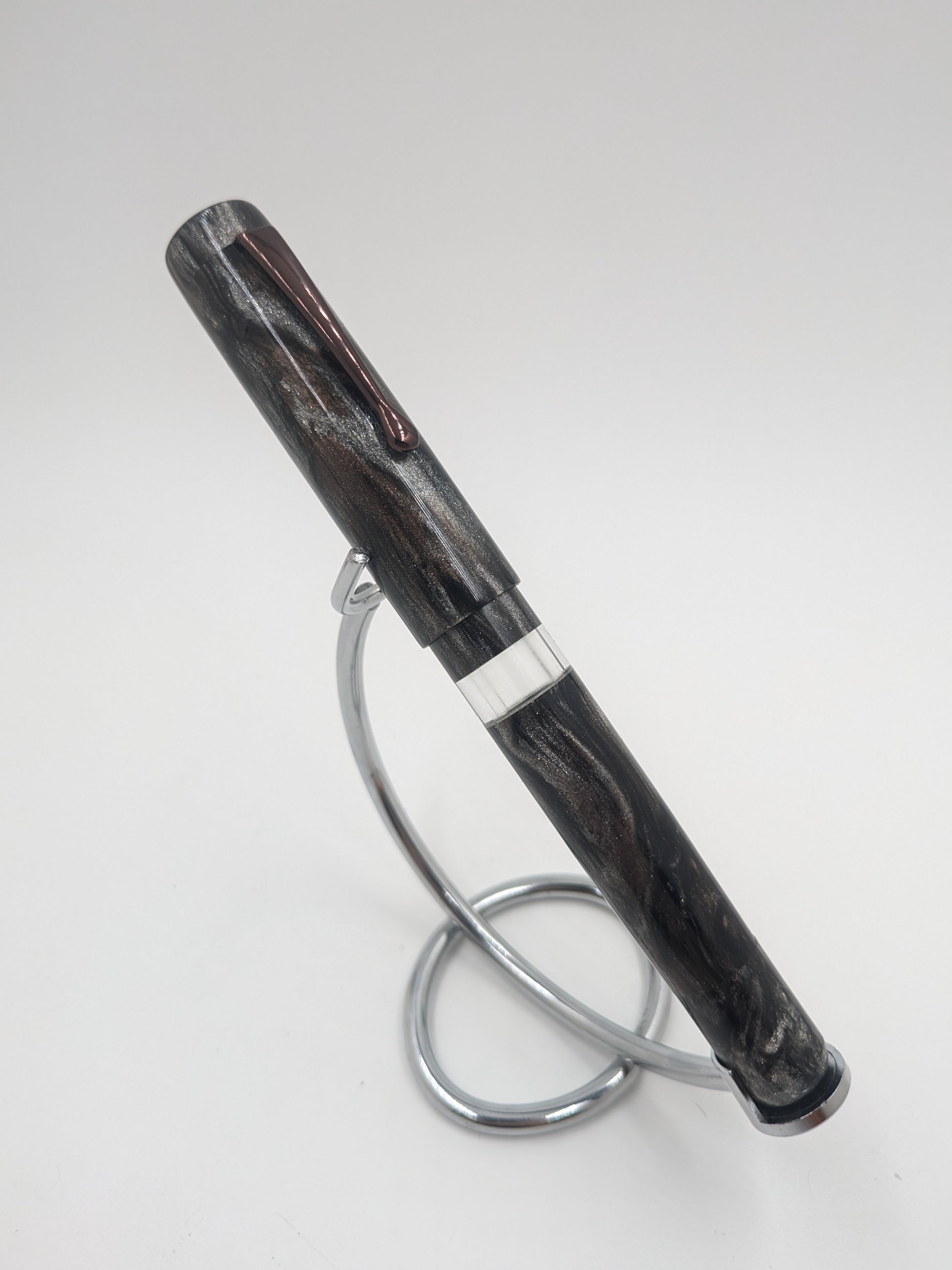 When we created the Bifrost, we wanted a pen to pair with it. Running on the norse theme (mythology being a hobby of mine), I set out in collaboration with our friends at Diamondcast to create a pen big enough and bold enough to pair with our "rainbow bridge" pen. Taking hints from mythology and current popular culture, we created this silver, bronze, and black beauty.