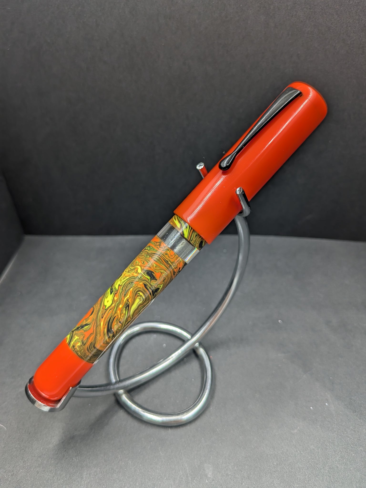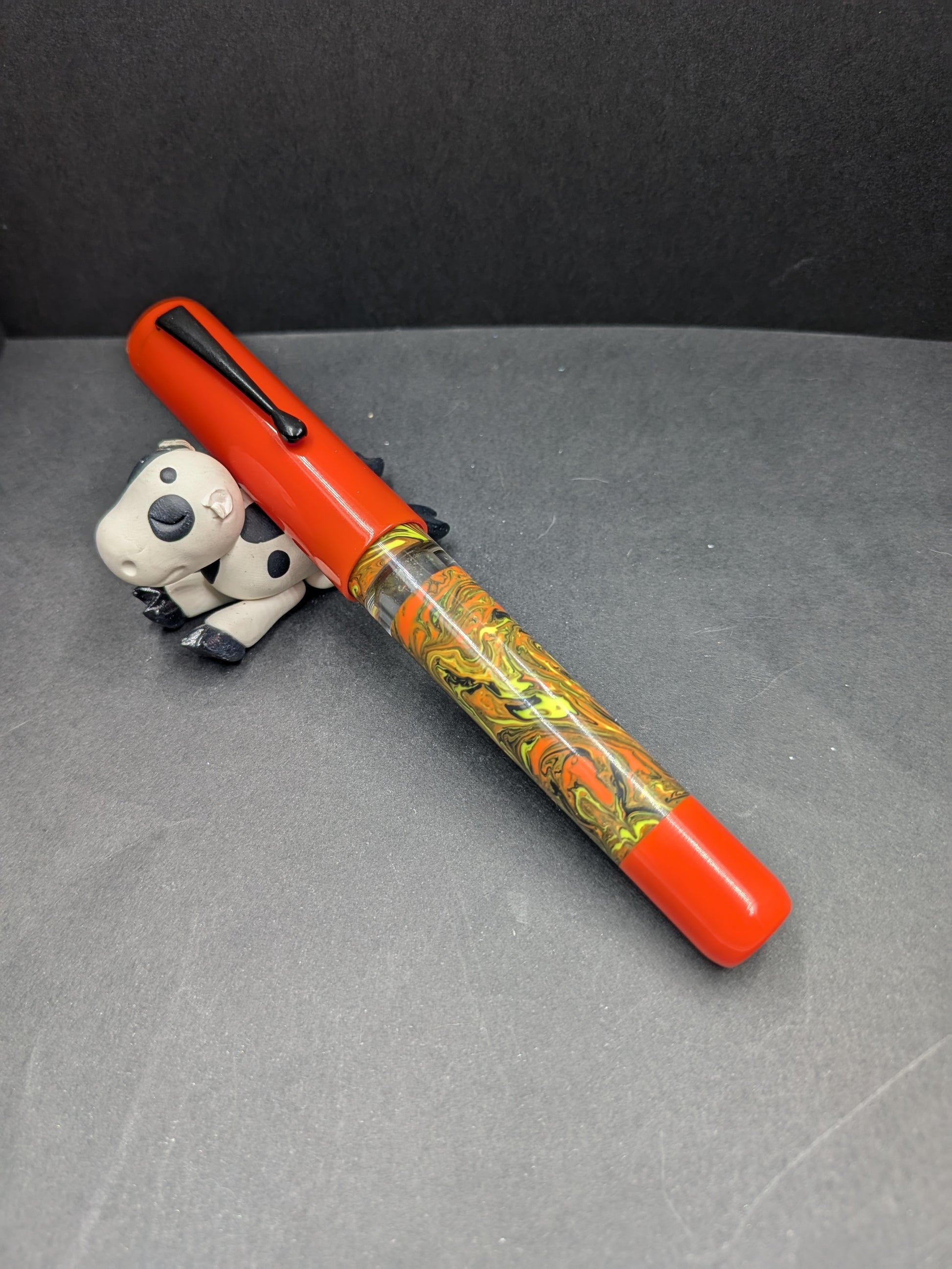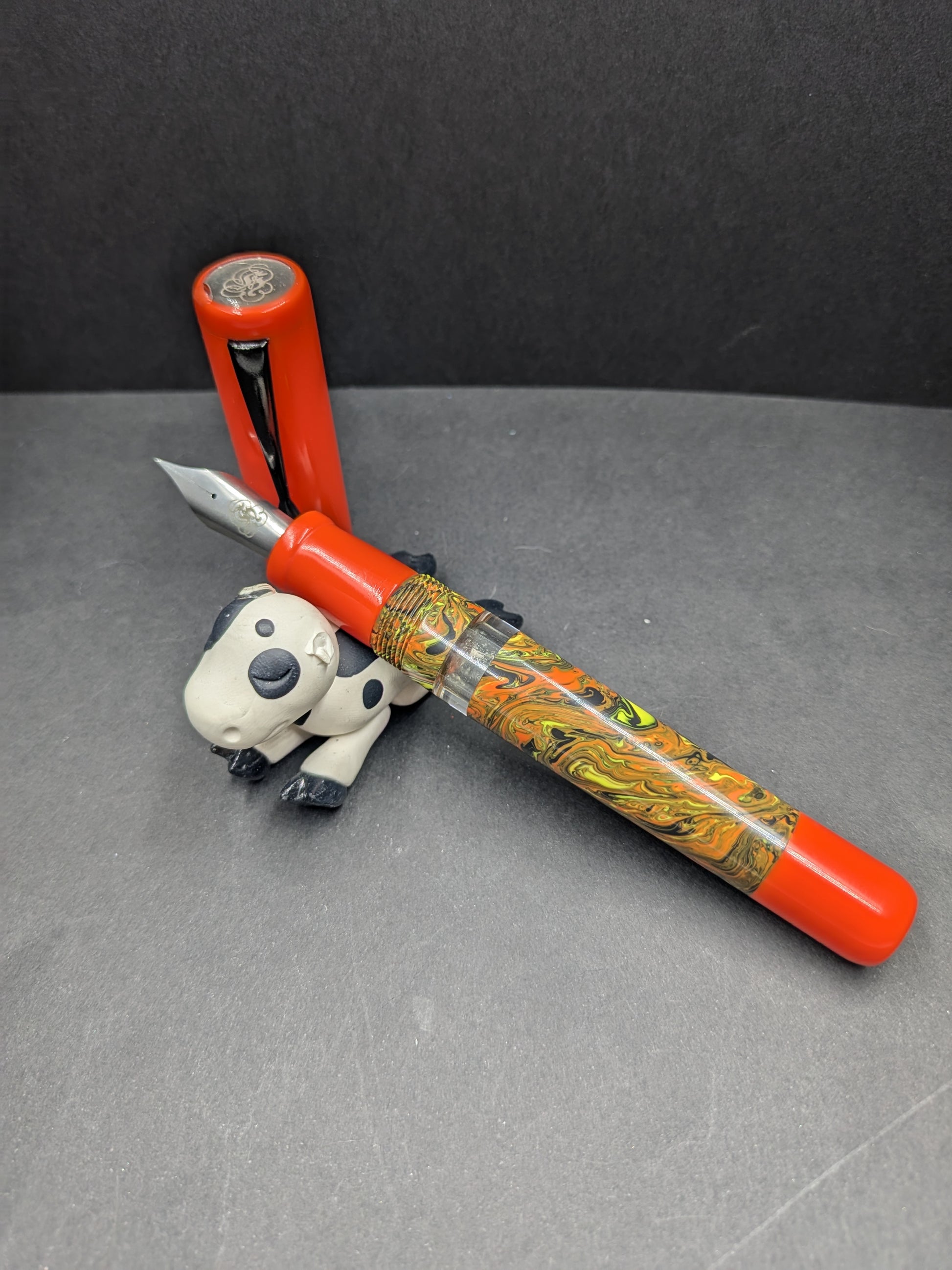 Embrace the warm, glowing colors of the sun at sunrise with the B36 Evancio Sundance from Mutt Blanks. This piston filler pen is perfect for those who adore vibrant orange shades and want to add a splash of sunshine to their writing routine. The Evancio model offers a comfortable grip that fits naturally in your hand, making every writing session a joy. Its sleek, cool design not only looks stunning but also helps you stand out and make a bold statement wherever you go. Whether you're jotting down notes or signing important documents, this playful, sun-inspired pen brings energy and style to your desk and your day.