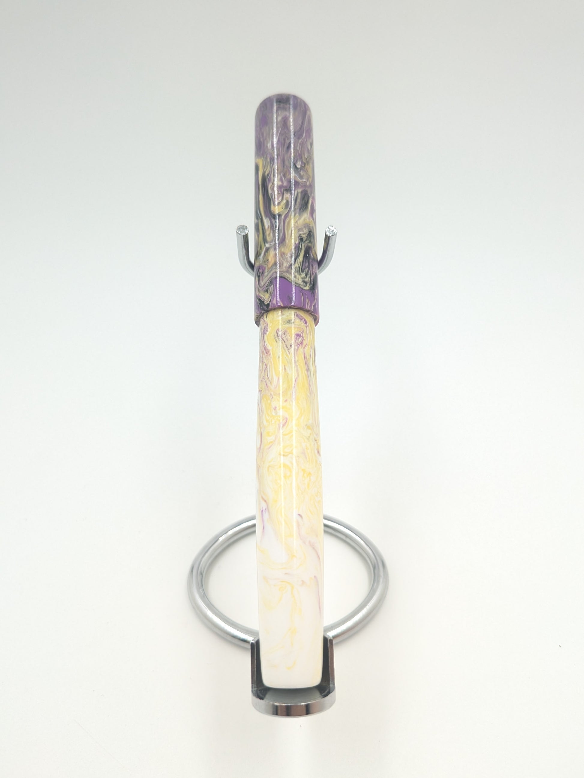 Purple, yellow, and white streak across this pen’s material, creating a lively mix that's as refreshing as a spring garden in full bloom. True to its name, Lavender and Lemon blends serene floral vibes with zesty citrus energy, making every writing experience feel like a playful dance of flavors and colors. Perfect for those who love a splash of brightness and whimsy in their day, this pen adds a cheerful pop to your collection while inspiring creativity with every stroke. Brighten your writing routine with the delightful charm of Lavender and Lemon!