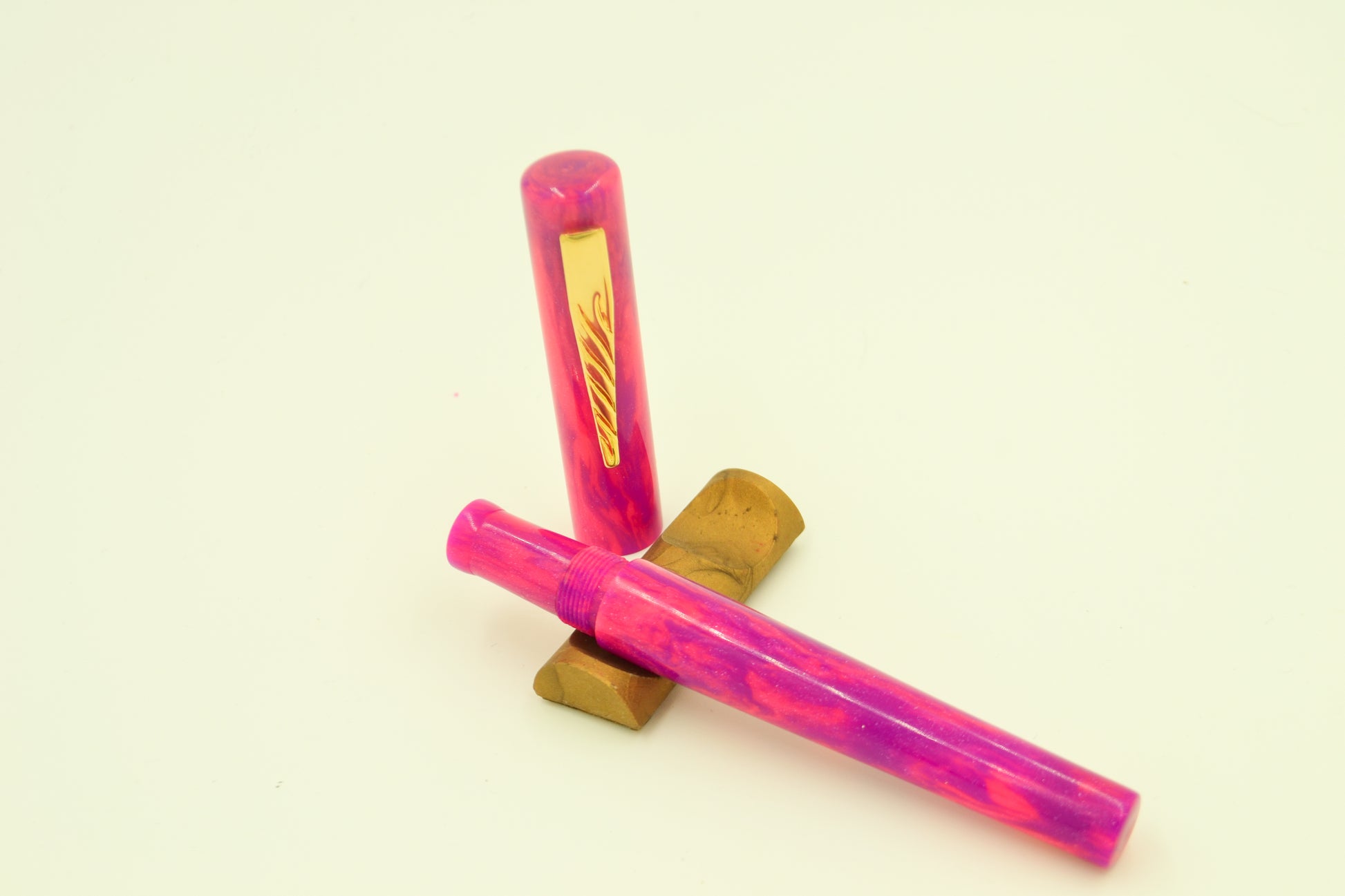 Blast from the past... Like "Totally". From our friends at Diamond Cast, the Pink and Purple swirl was inspired by the movie of the same name. This pen material is absolutely stunning! Pictures do not do it justice.